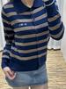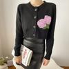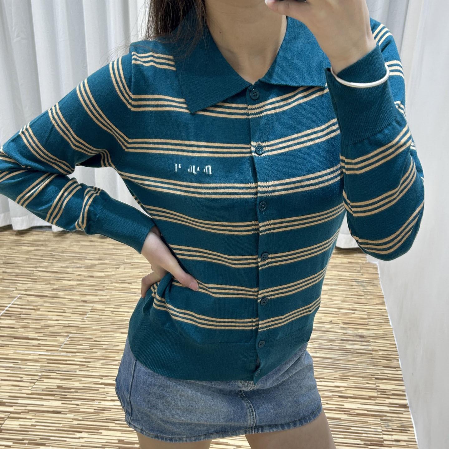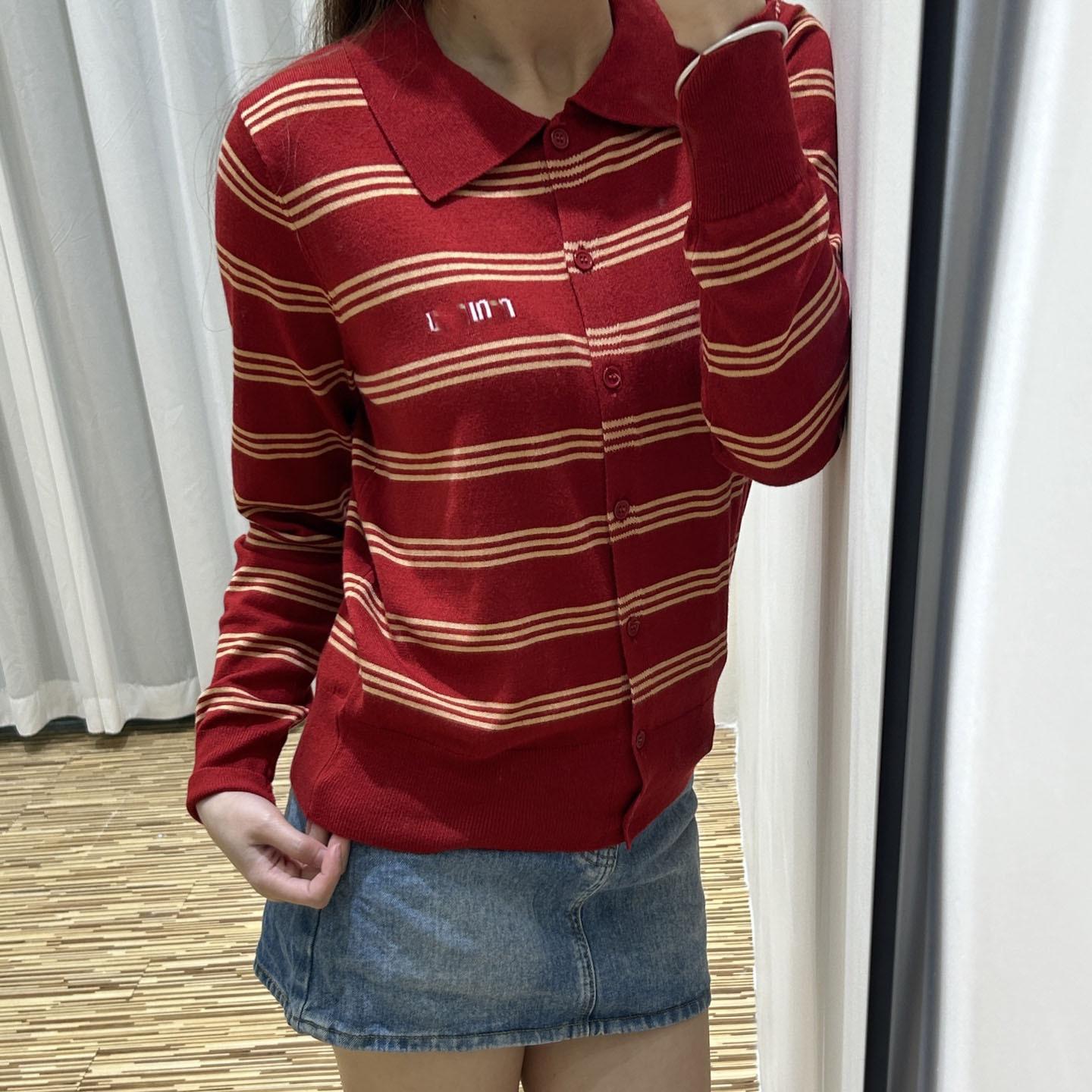 Cárdigan de Punto de Manga Larga con Solapas Jacquard de Letras de Color Contraste M Home de Alta Calidad para Mujer Estilo Francés Estilo Universitario Abrigo Top