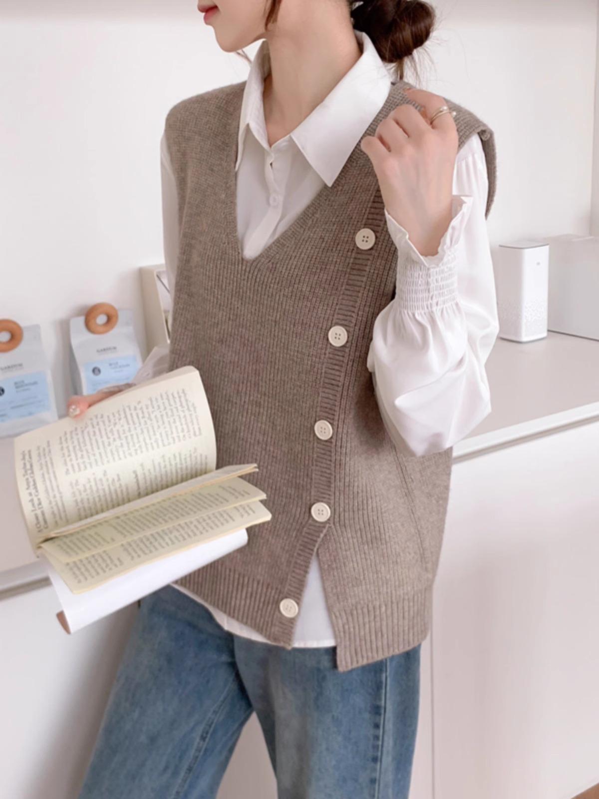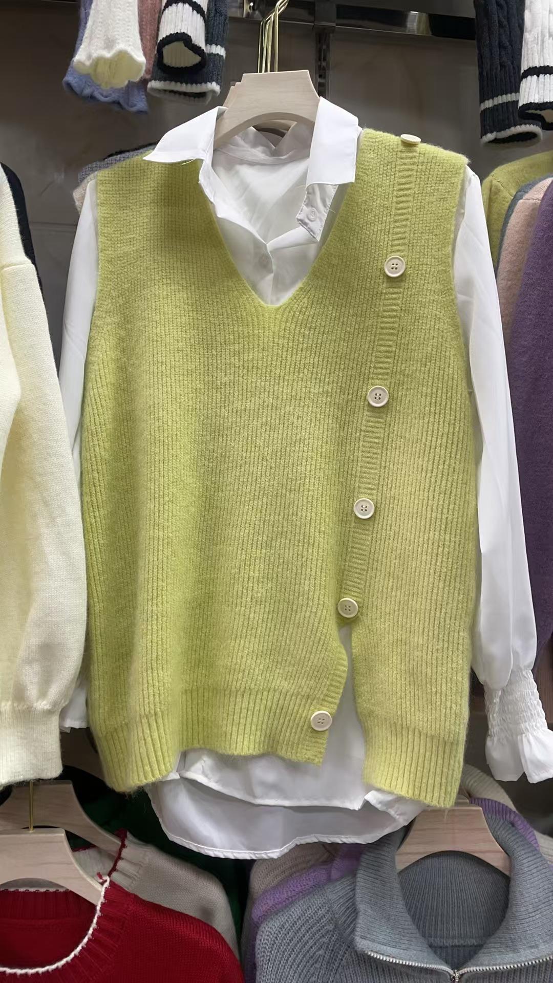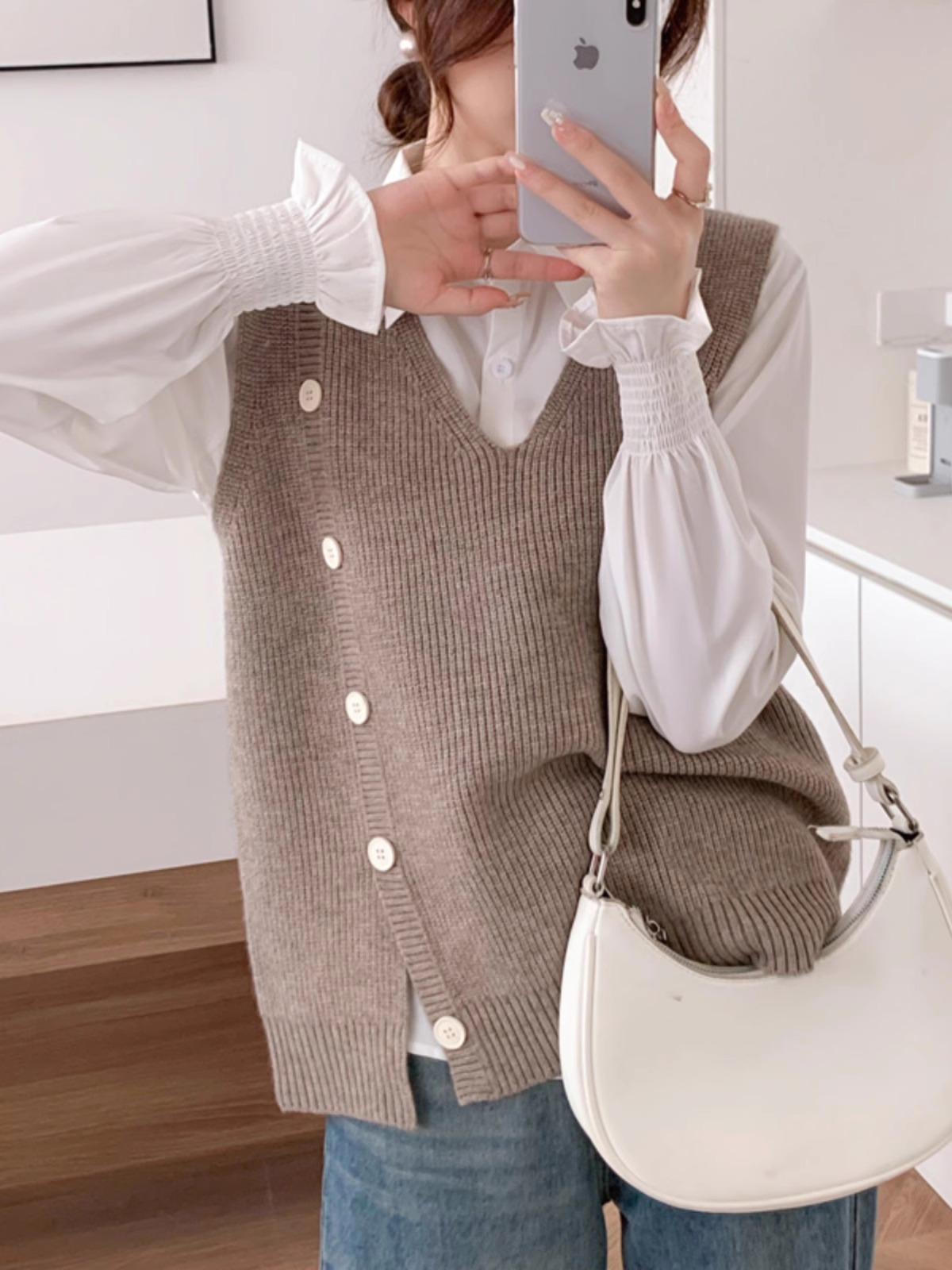 Moda 2024 Principios de Otoño Nuevo Chaleco Tejido con Abertura de Botones para Mujer Estilo Extranjero Holgado Chaleco Suéter