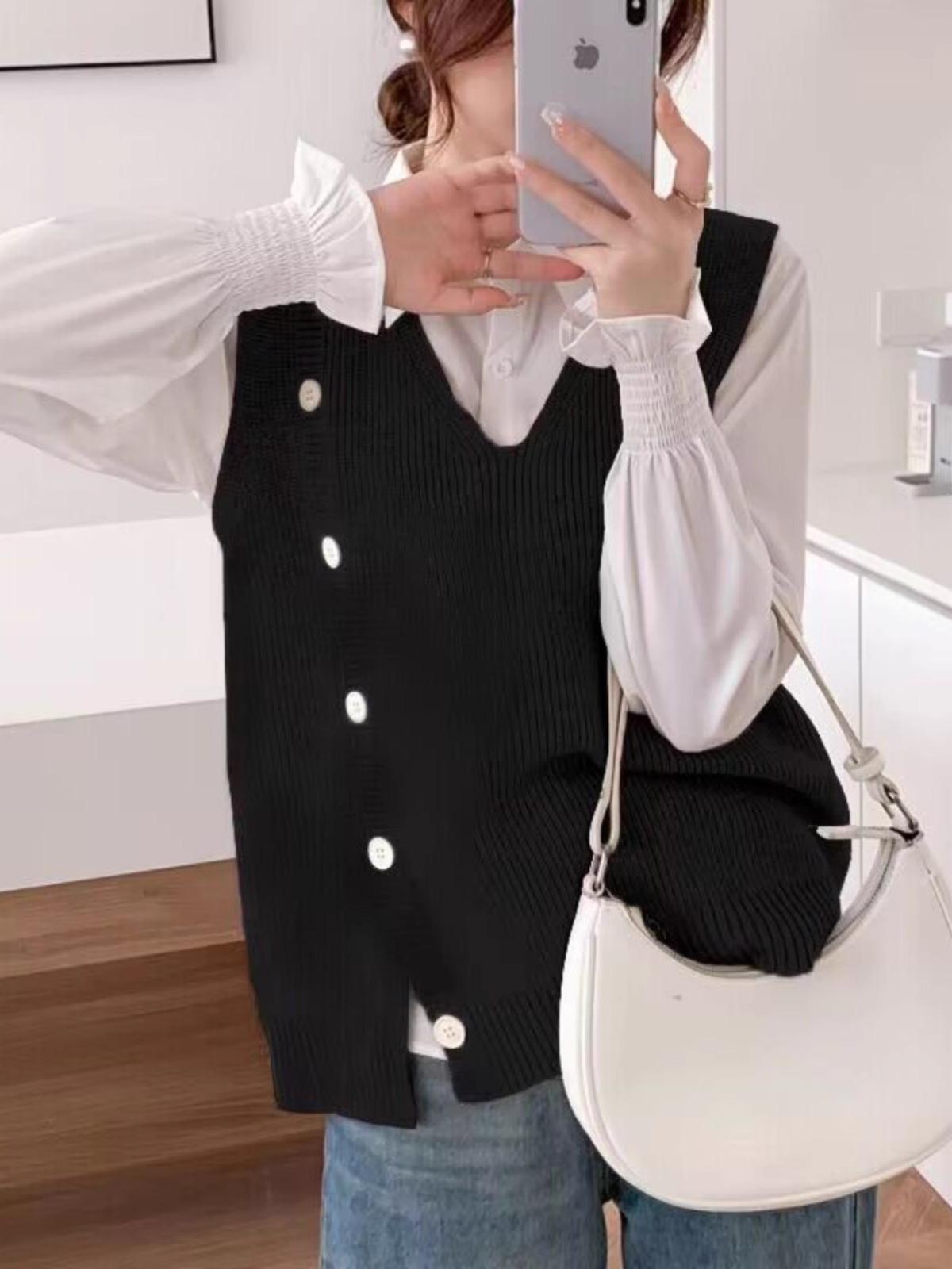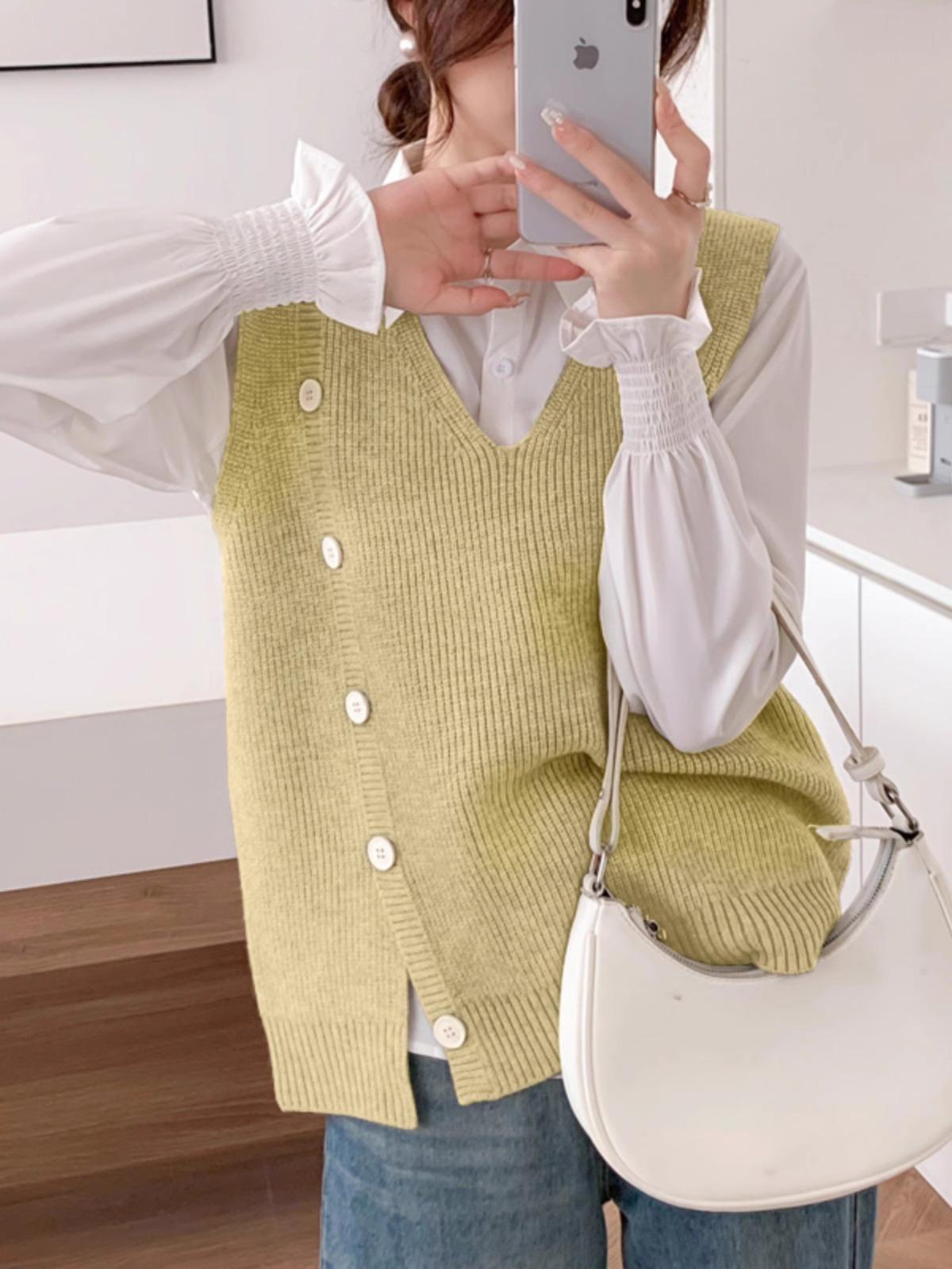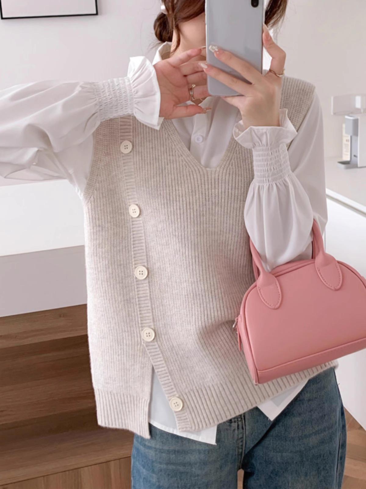 Moda 2024 Principios de Otoño Nuevo Chaleco Tejido con Abertura de Botones para Mujer Estilo Extranjero Holgado Chaleco Suéter