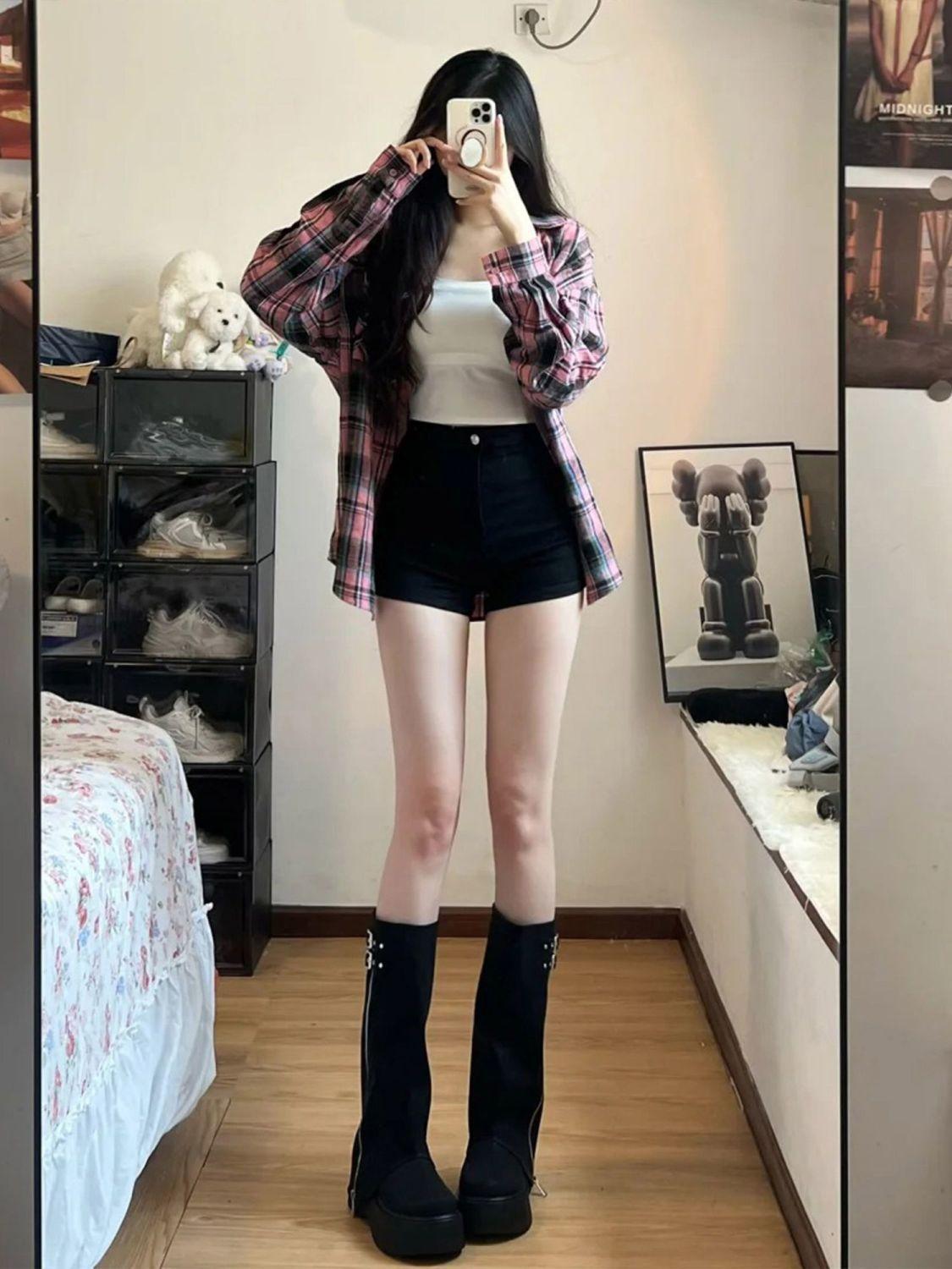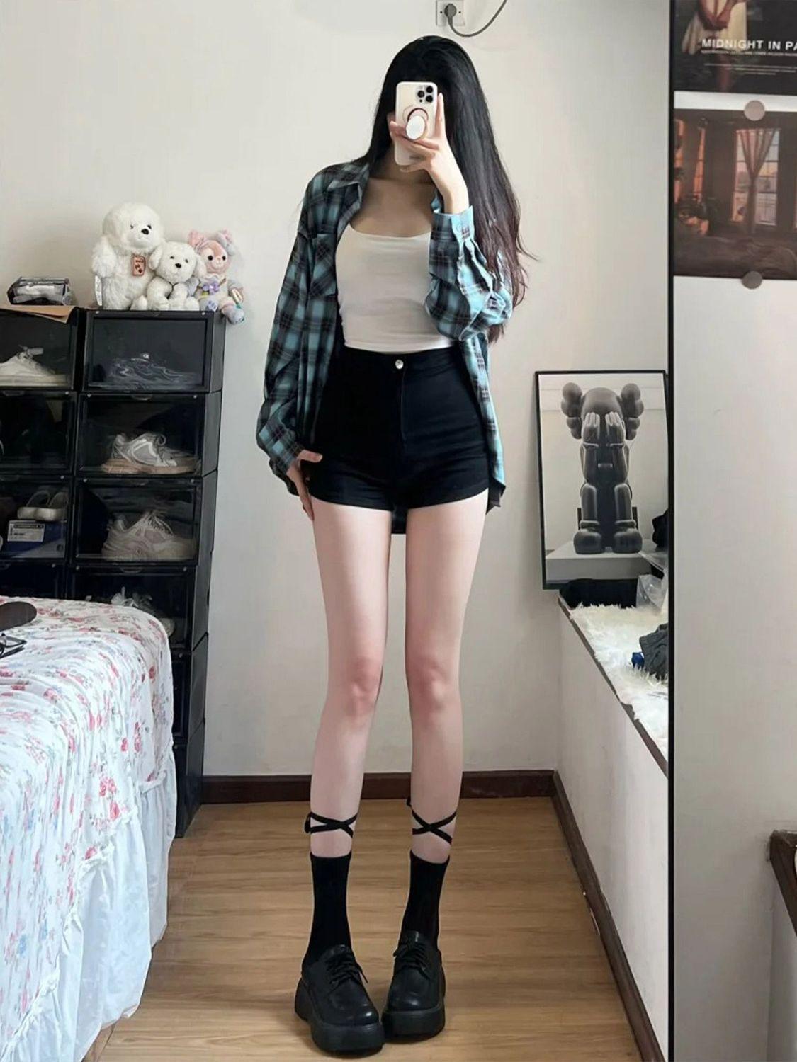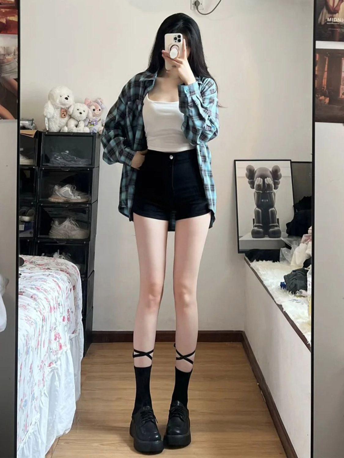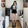 Shorts de mezclilla negros para mujer Verano 2025 Nuevo estilo americano Cintura alta Efecto adelgazante Elásticos Sexy Ajustados Línea A Pantalones cortos
