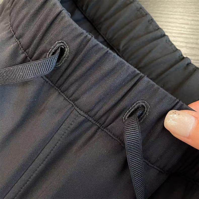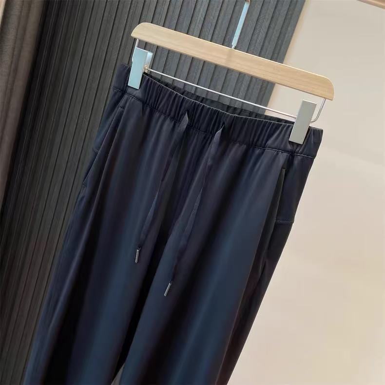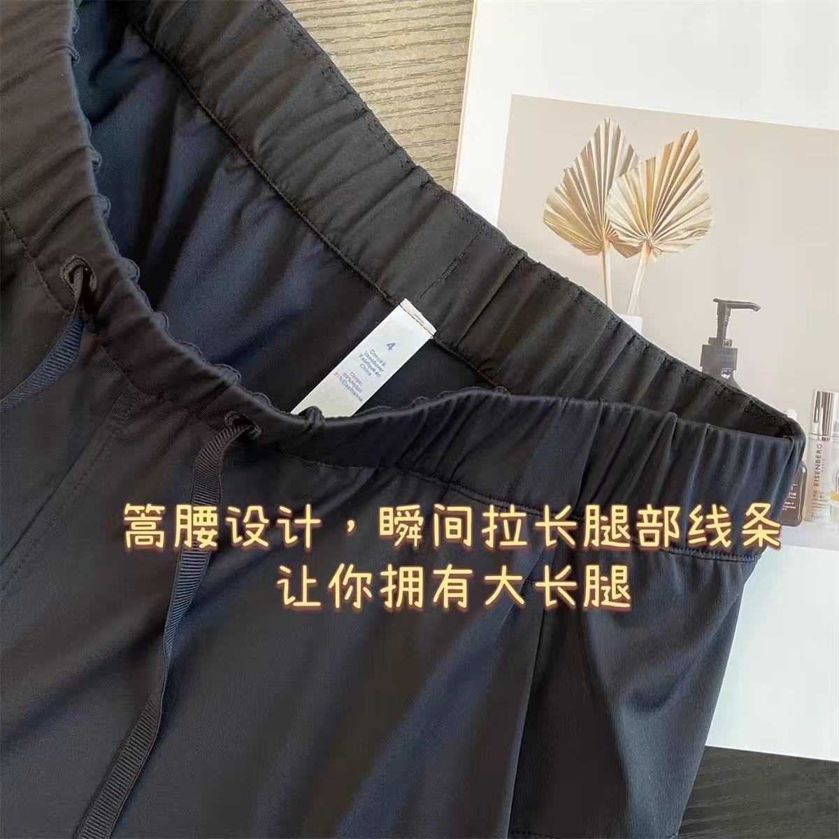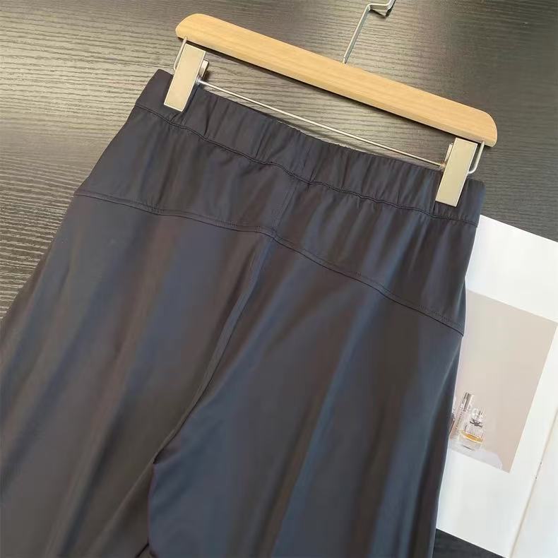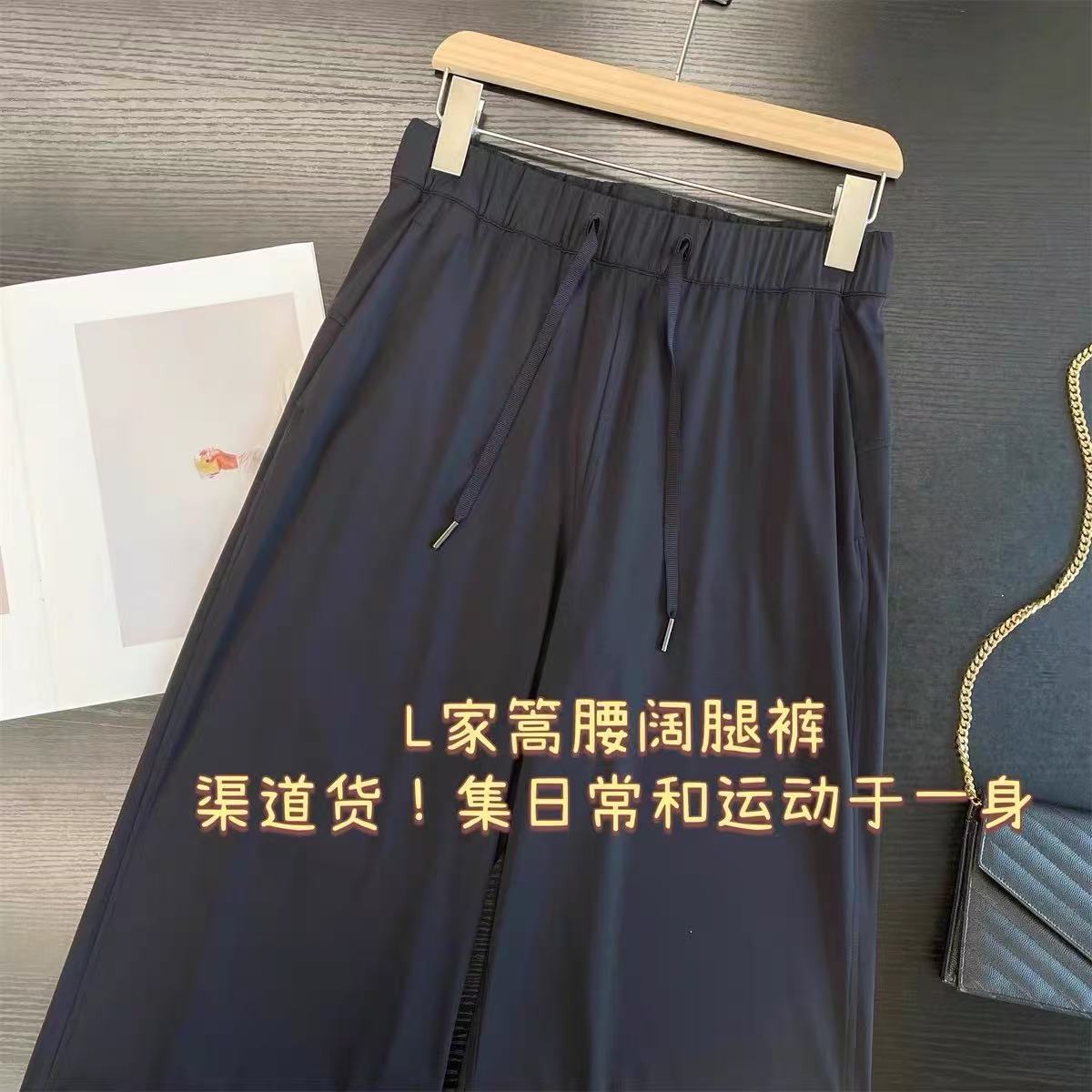 Pantalones de Cintura Alta LU Transpirables Absorbentes de Sudor Elásticos en Cuatro Direcciones Cordón Casual Ocho Puntos Deportes Yoga Pierna Ancha P0515Y