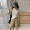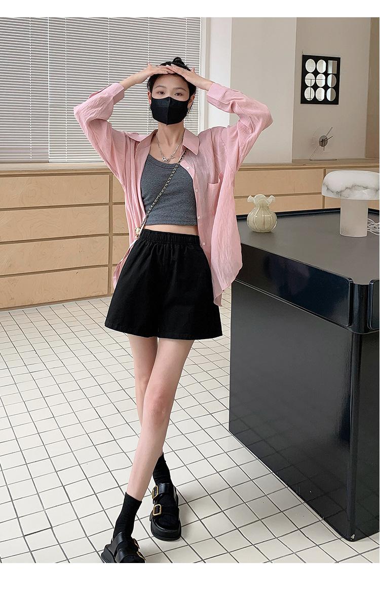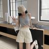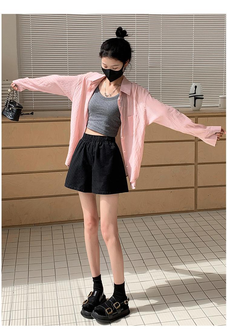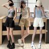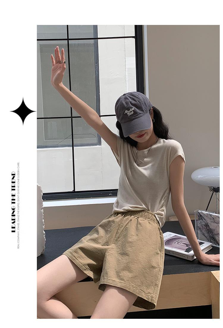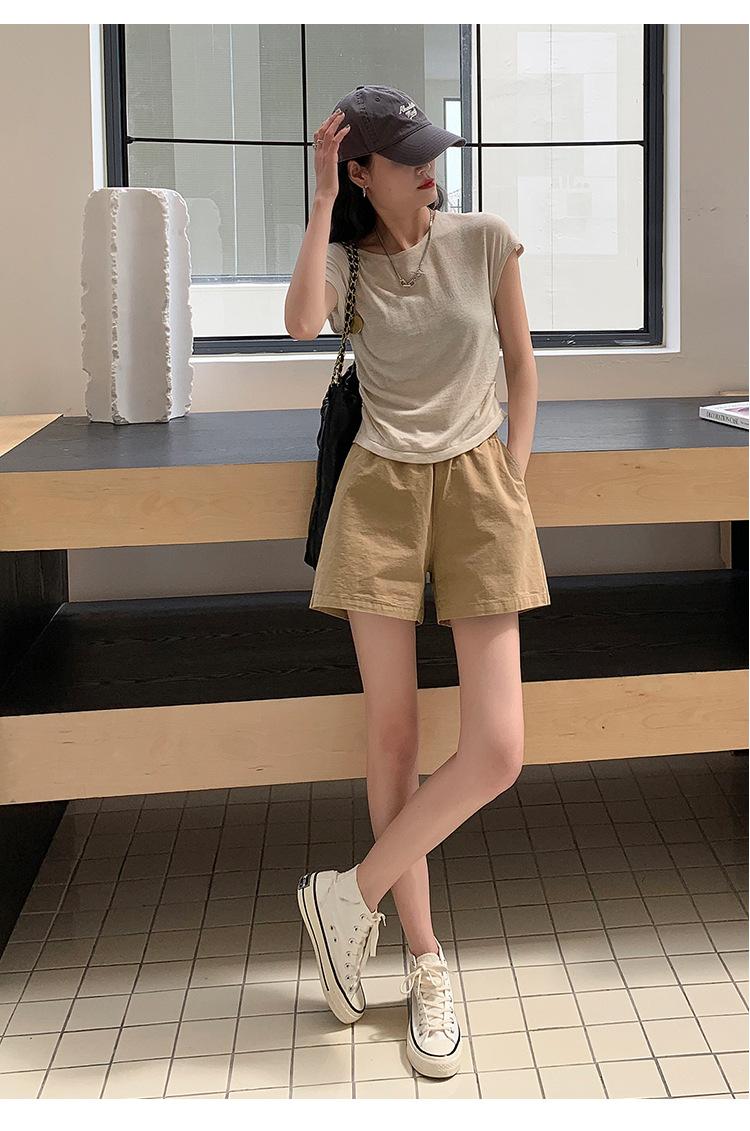 Pantalones anchos y recortados de cintura alta estilo japonés para primavera y verano 2024, finos, de algodón, holgados, combinables, informales, para mujer.