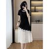 Vestido Nuevo Primavera/Verano 2024 AB Empalmado Temperamento temu Estilo Caliente Europeo y Americano Cuello en V Empalmado Envolvente Vestido Largo Mujeres
