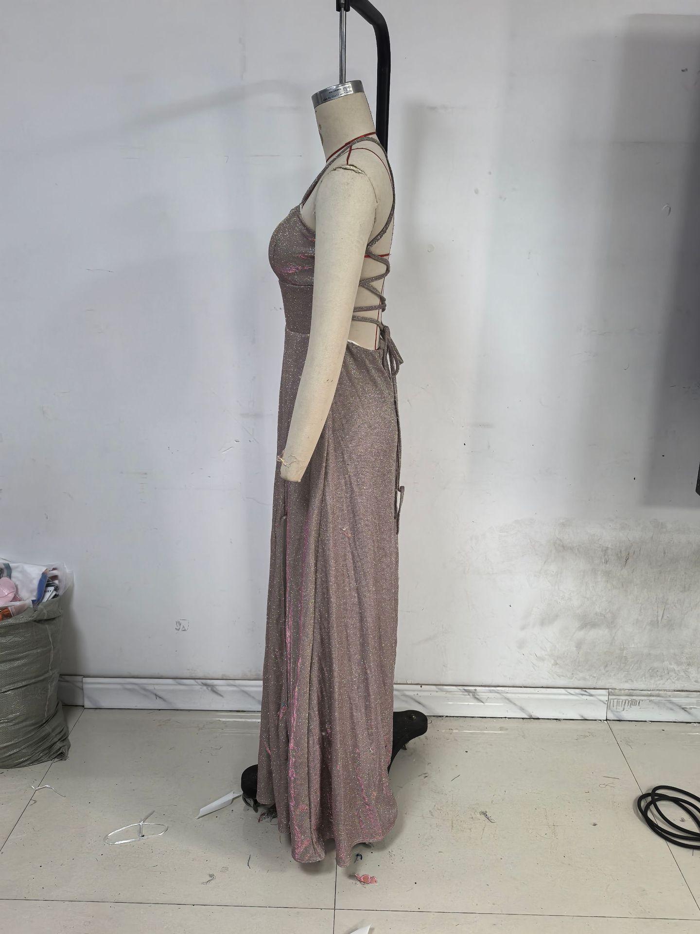 Vestido de Noche de Fiesta Banquete Sexy con Abertura y Brillo para Mujer Europeo y Americano Transfronterizo Nuevo 2025