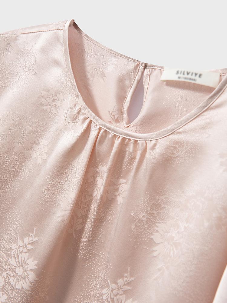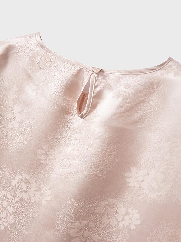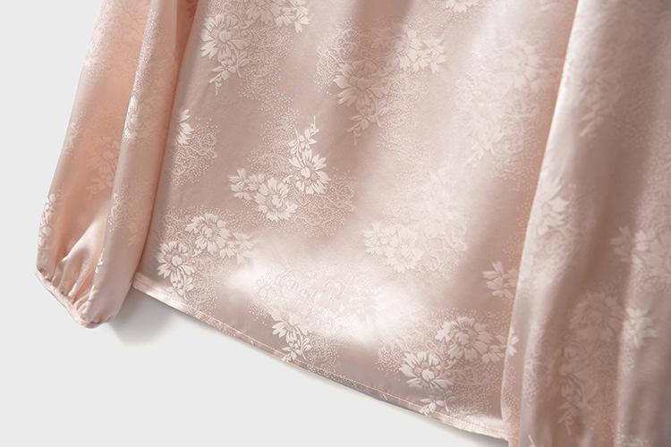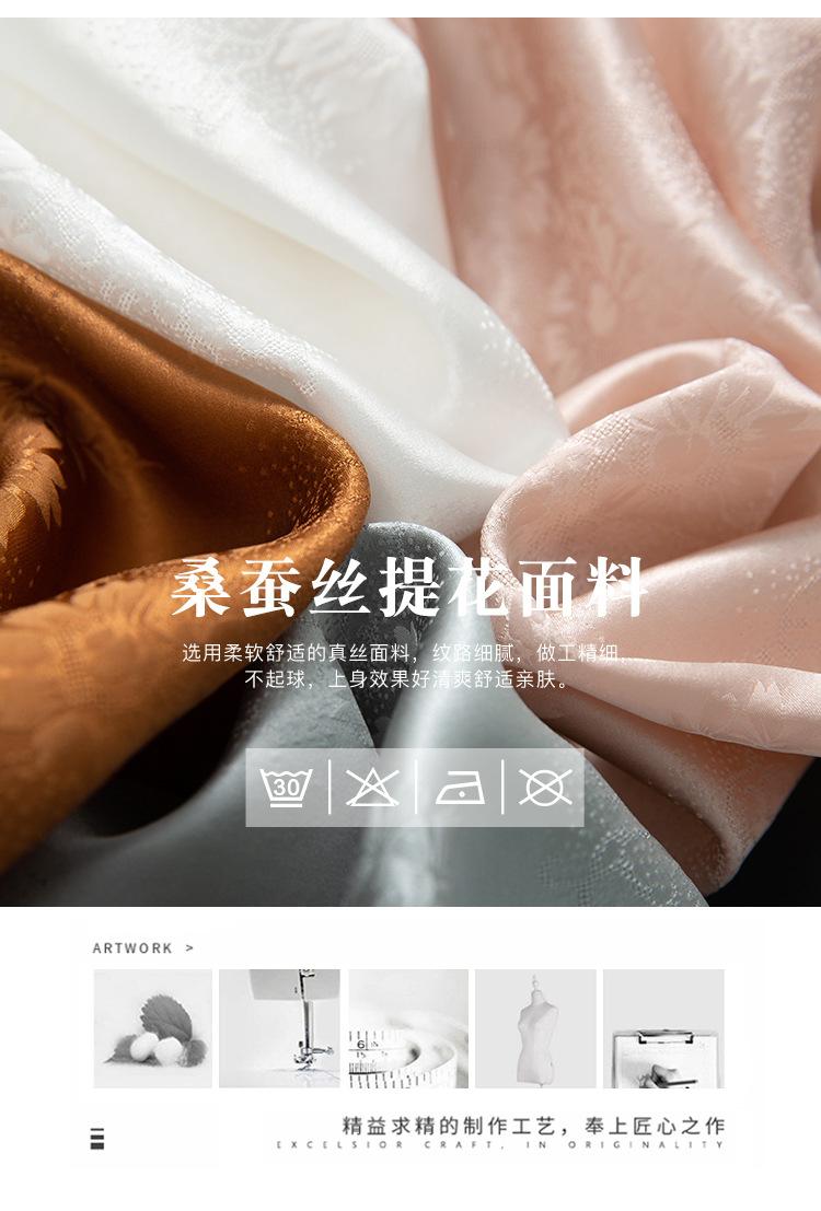 Tejido de seda morera, extremadamente cómodo al tacto, brillo elegante. La parte superior del cuerpo es agradable para la piel y cómoda, y la seda se conoce como "la segunda capa de la piel humana". La combinación de colores está llena de feminidad romántica, combinación de colores simple y elegante. El desperdicio en la fabricación de una prenda de seda es más del doble que el de una prenda común. Solo para hacer que las capas sean más refrescantes, este color es muy adecuado para el tono de piel.
