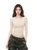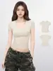 Playera de manga corta ajustada con cuello en V estilo americano para mujer Verano 2025 Ajuste en hombros Ajustada Corta Top básico interior