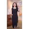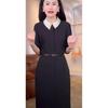 Falda Negra de Manga Corta para Mujer en Verano, Petite, Estilo Aristocrático Francés, Vestido Profesional Único y Hermoso con Cintura Pellizcada