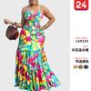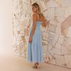 Vestido Largo Exclusivo Transfronterizo 2025 Europeo y Americano sin Mangas con Empalme de Tirantes con Espalda Larga Descubierta y Encaje con Cordones