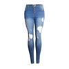 Europeo Aliexpress Estilo Europeo y Americano para Mujer Elástico Ajustado Cintura Media-Alta Bordado Roto Jeans para Mujer