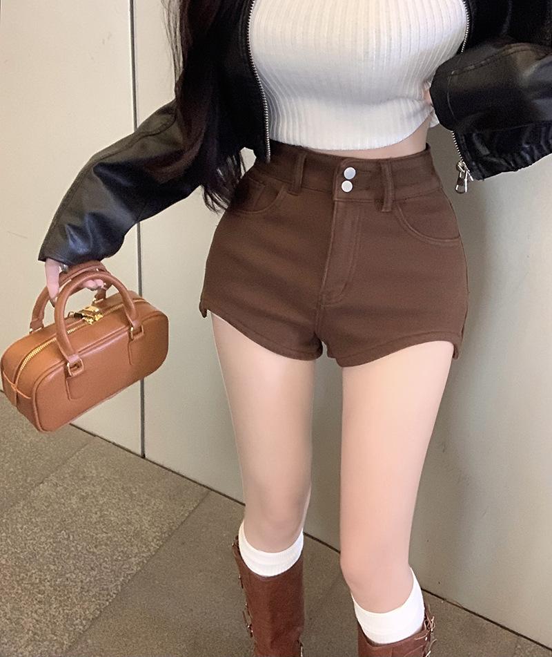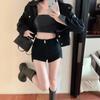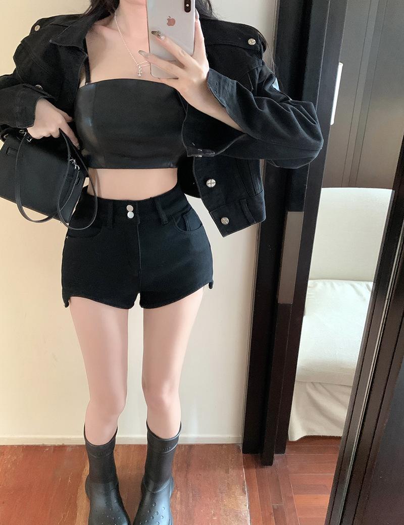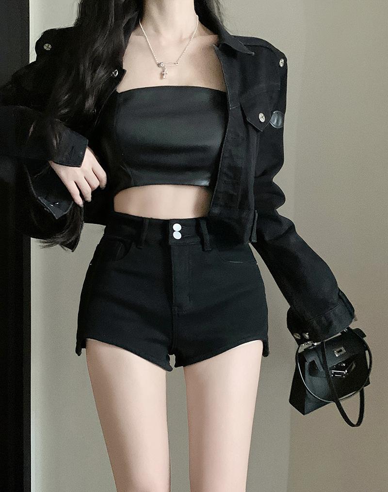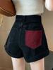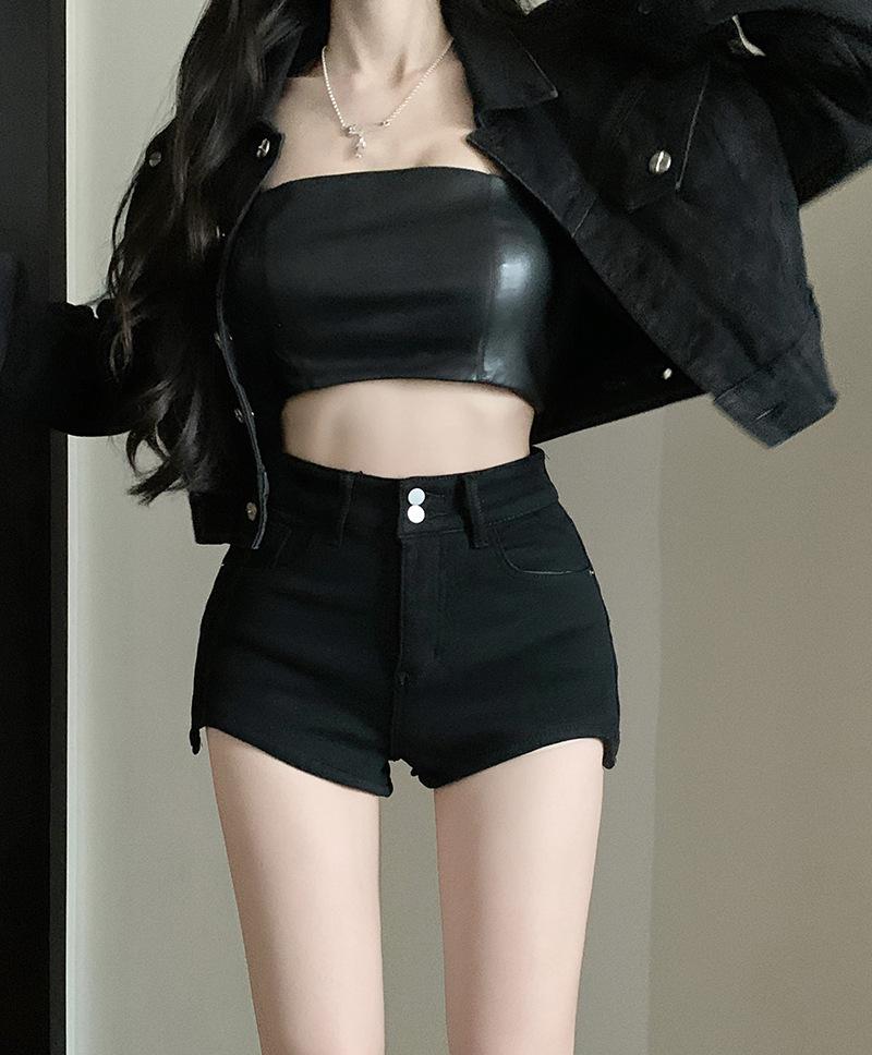 Shorts de mezclilla negros para mujer, verano, delgados, para hermana gordita mm, cintura alta, elásticos, ajustados, en forma de A, pantalones cortos hot pants, pantalones para forma de pera