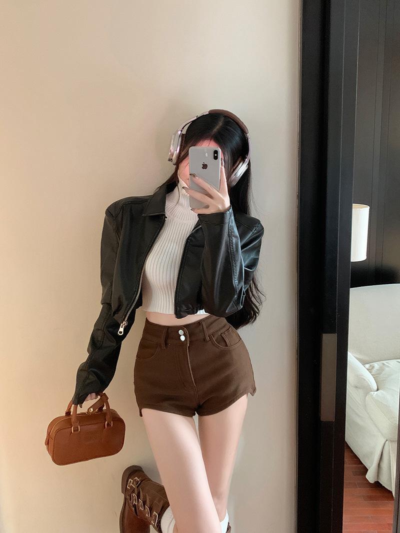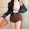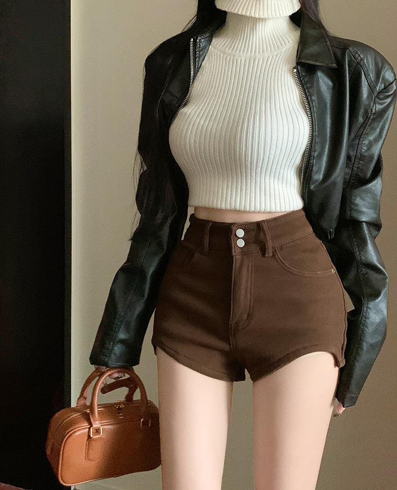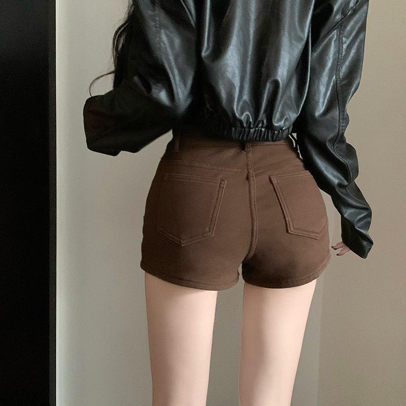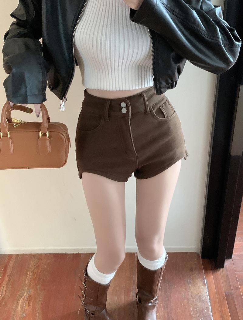 Shorts de mezclilla negros para mujer, verano, delgados, para hermana gordita mm, cintura alta, elásticos, ajustados, en forma de A, pantalones cortos hot pants, pantalones para forma de pera
