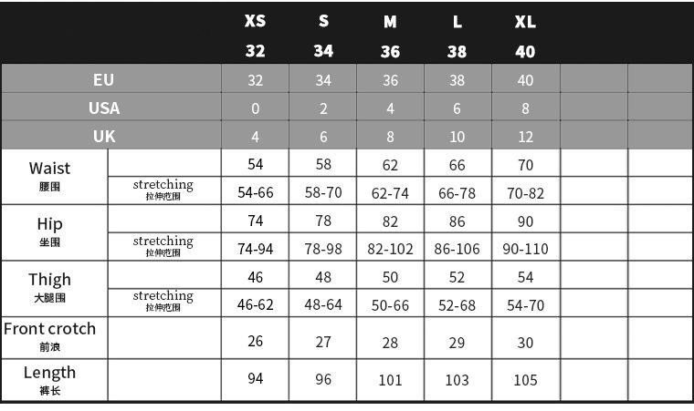 Xs=european code 32, domestic xs, foreign xxs, us code 0, S=european code 34, domestic s, foreign xs, us code ...