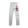 Moda Europea y Americana para Mujer Bordado 3D Ajustado Jeans Skinny para Mujer Jeans Bordados Rodilla Deshilachada Pantalones Lápiz Moda de Mujer
