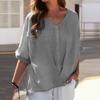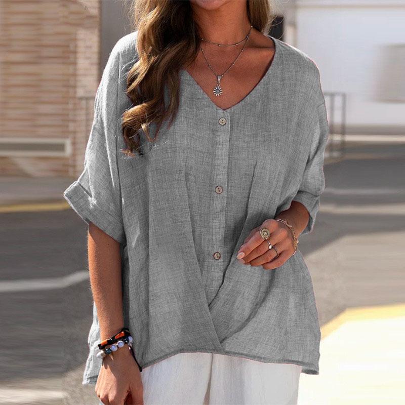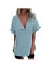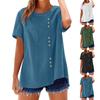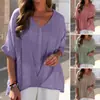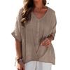2025 Transfronterizo Europeo y Americano Algodón y Lino Cuello en V Jersey Manga Corta Suelto Camisa de Mujer Top Casual