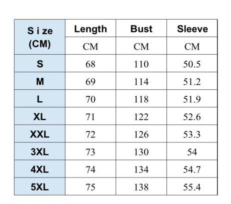 S, M, L, XL, XXL, 3XL, 4XL, 5XL