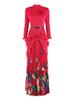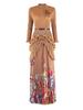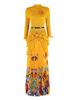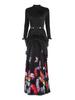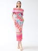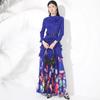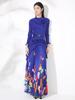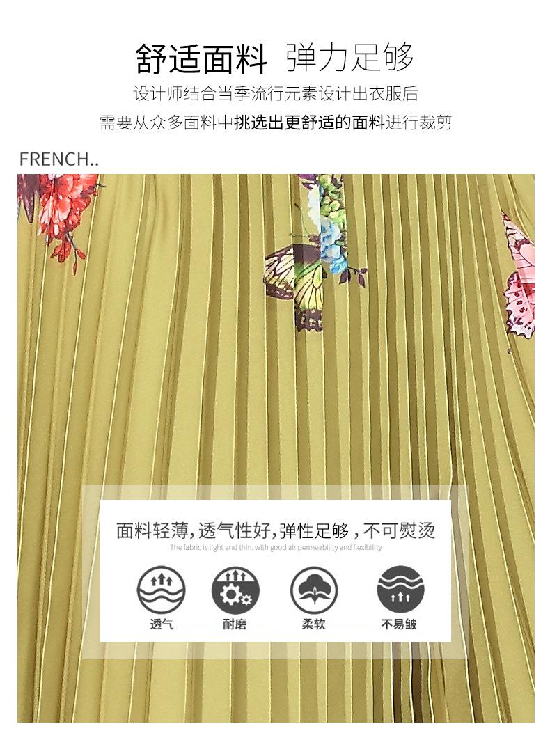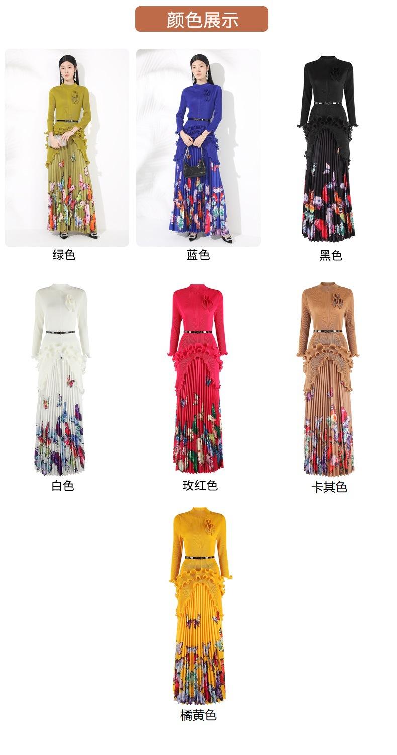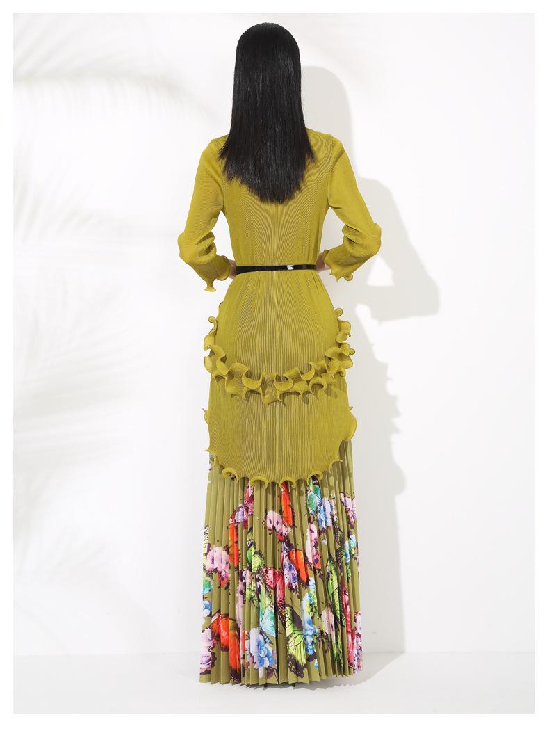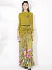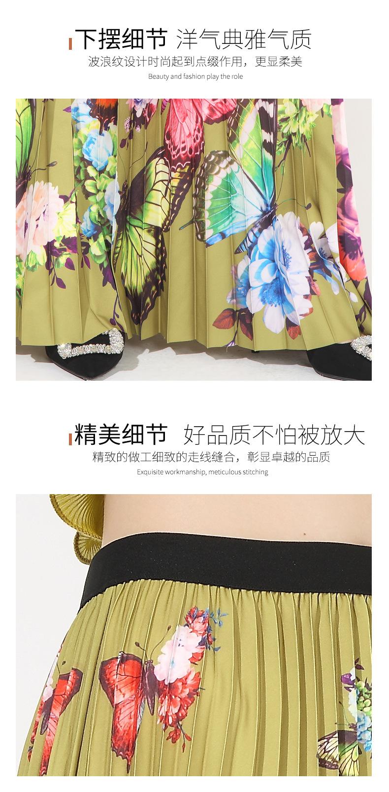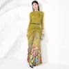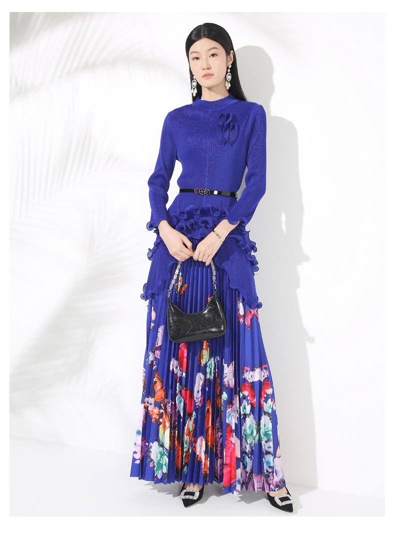 Top Irregular de Punto Plisado de Alta Calidad con Cuello Redondo Traje para Mujer Estampado de Mariposas Falda Larga Conjunto de Dos Piezas