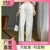 Pantalones Culottes Arrugados de Acetato Milán de Cintura Alta con Aspecto Adelgazante 2024 Verano Nuevo Estilo Casual Sueltos Versátiles de Pierna Ancha con Caída