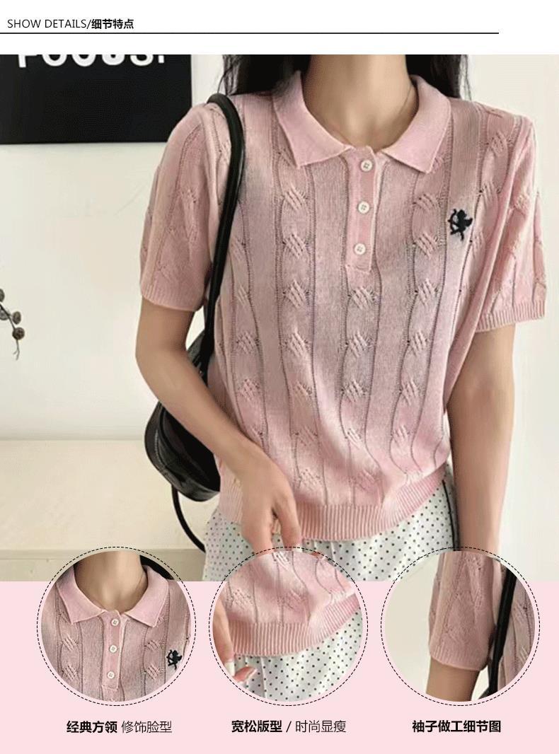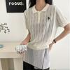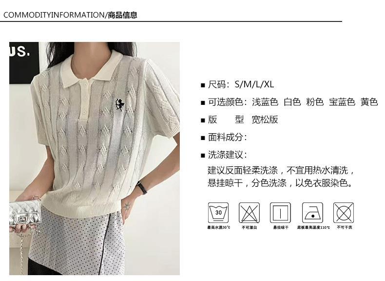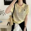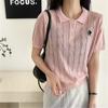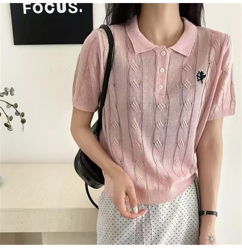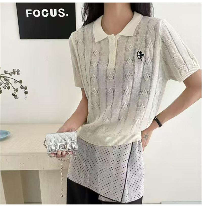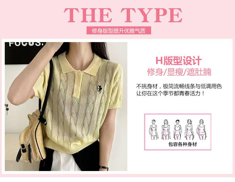 Camiseta de Manga Corta de Punto Fino de Verano para Mujer con Cuello Polo Azul de Seda Helada para Mujer 2025 Nuevo Estilo Caliente Top Corto