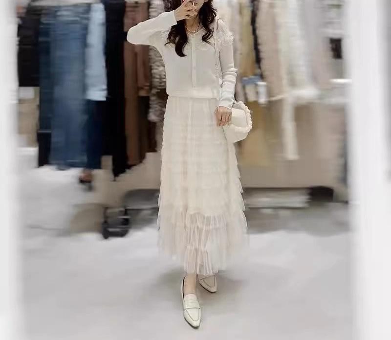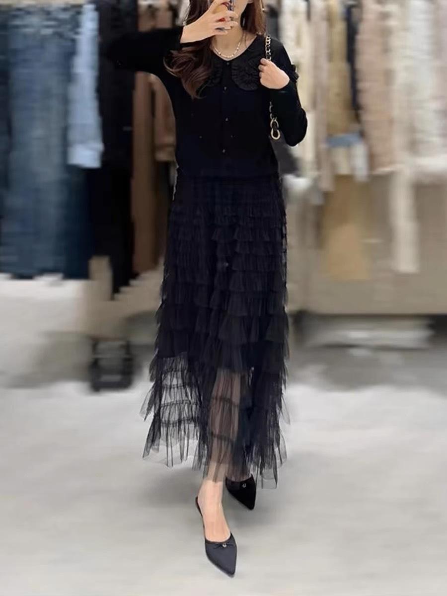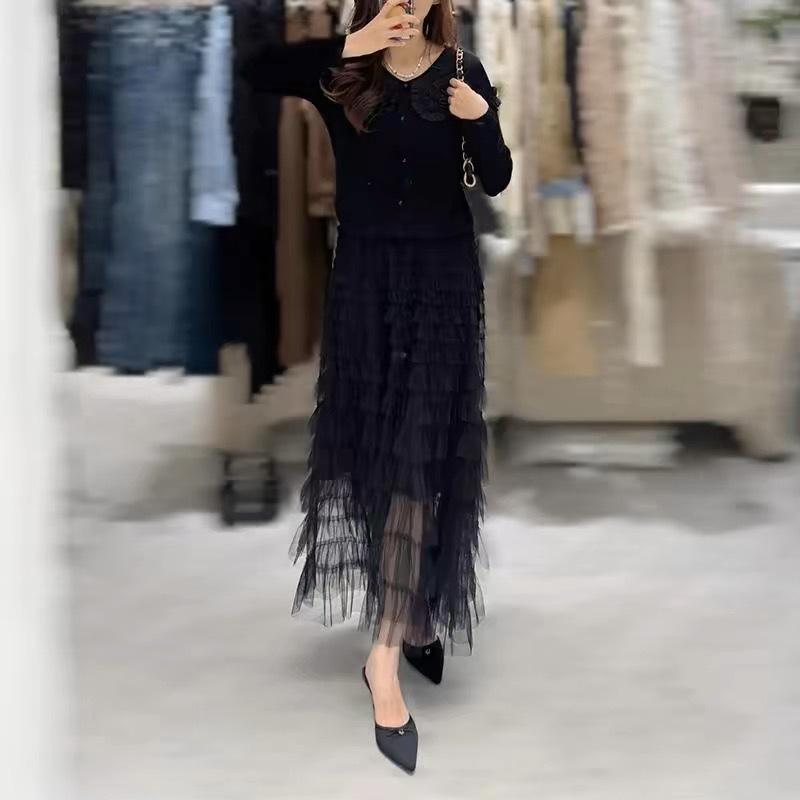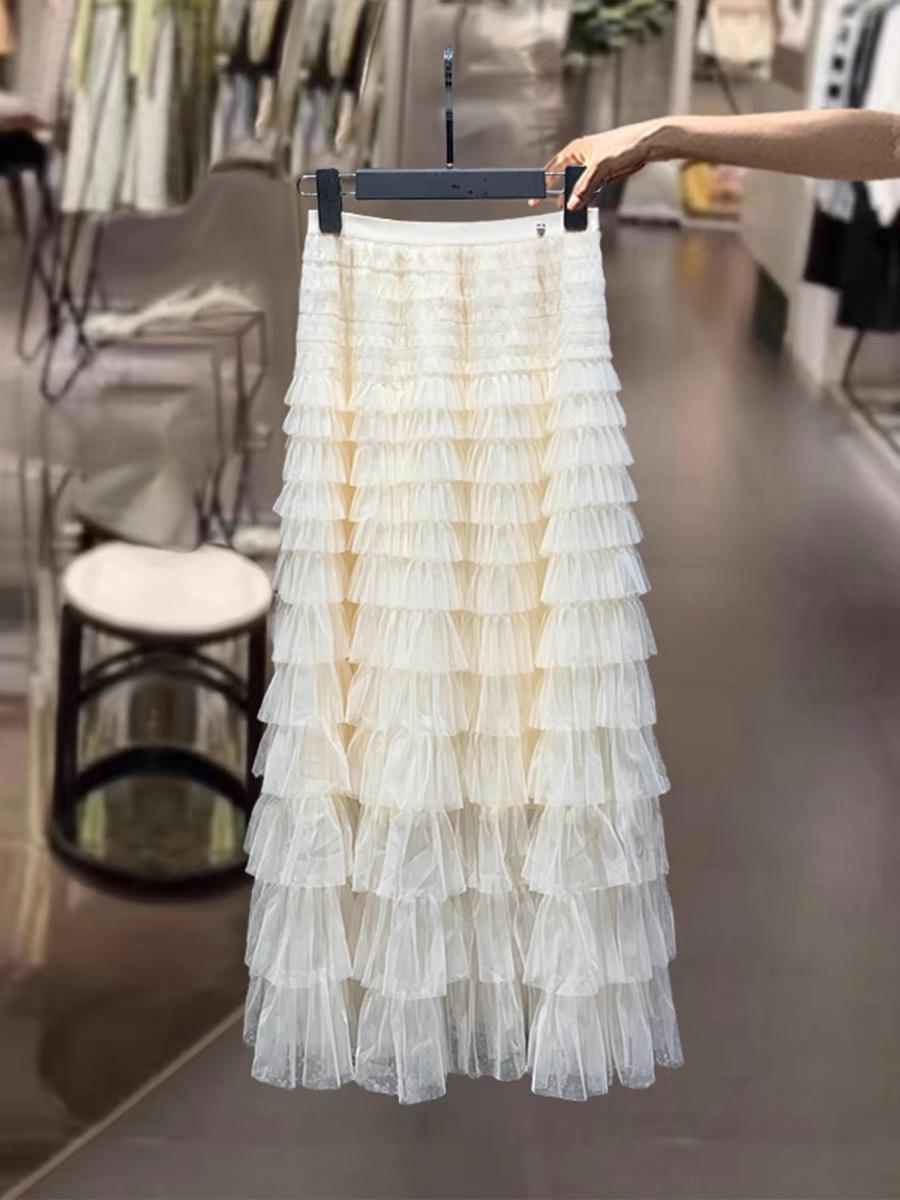Falda de Pastel de Malla para Mujer Primavera y Verano 2025 Nuevo Estilo en A Súper Hada Dulce Elegante Falda Larga