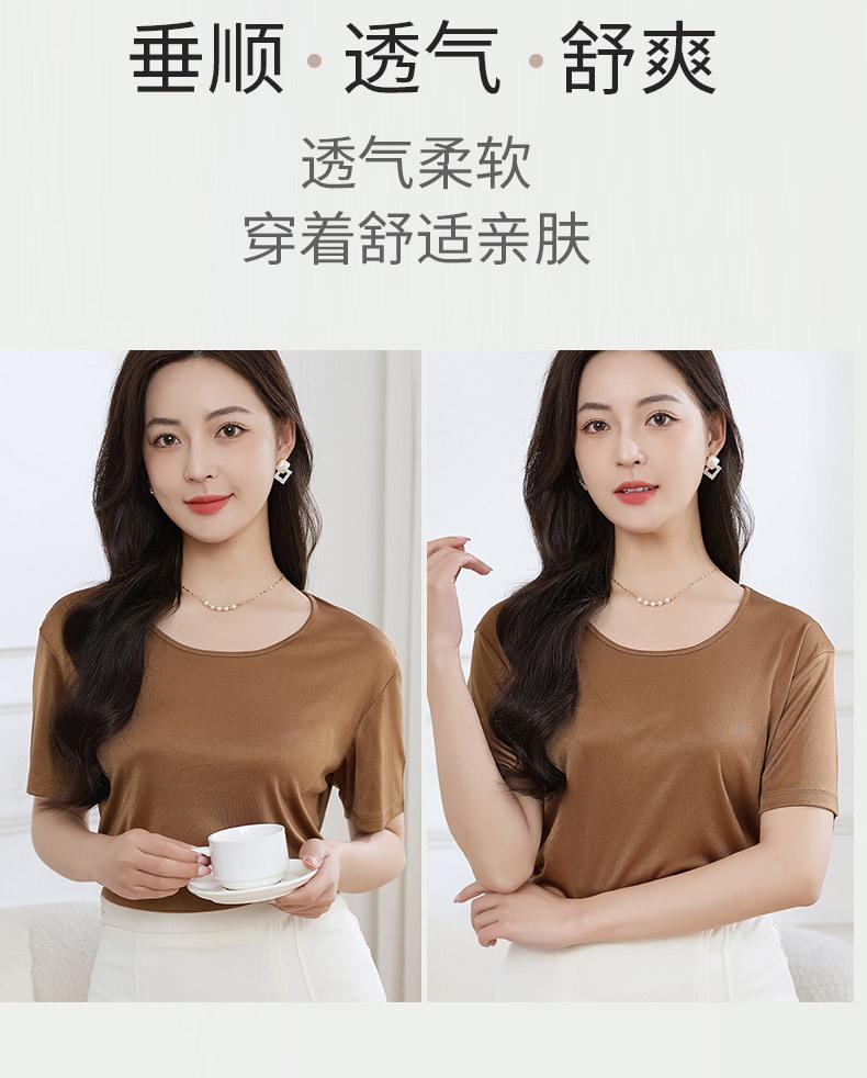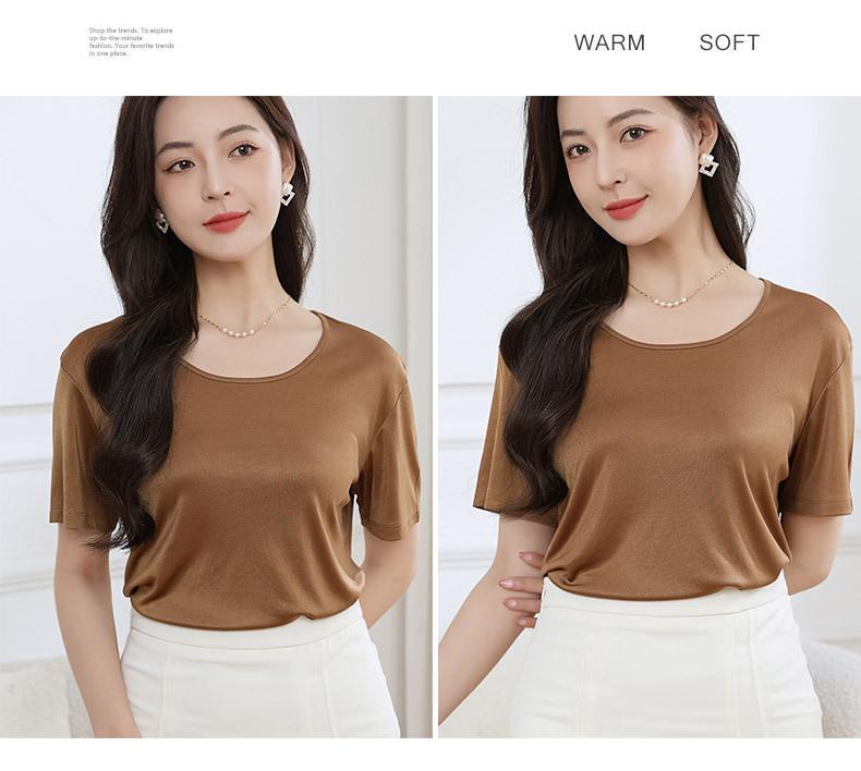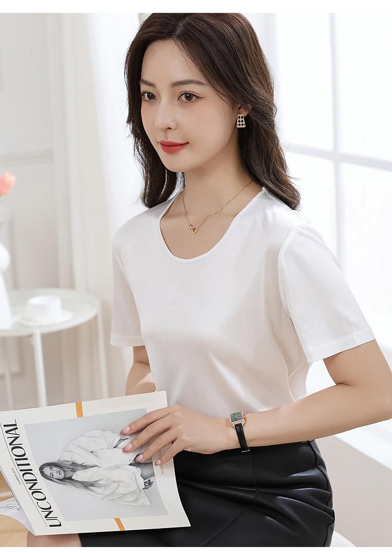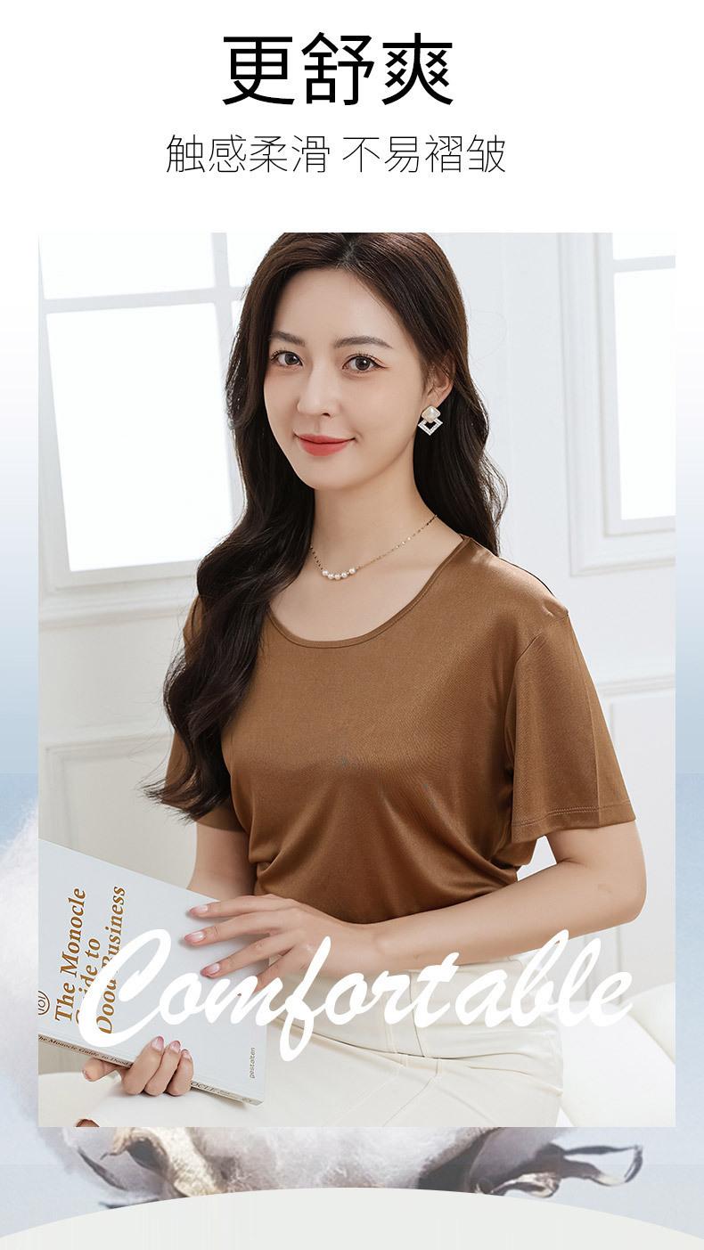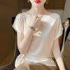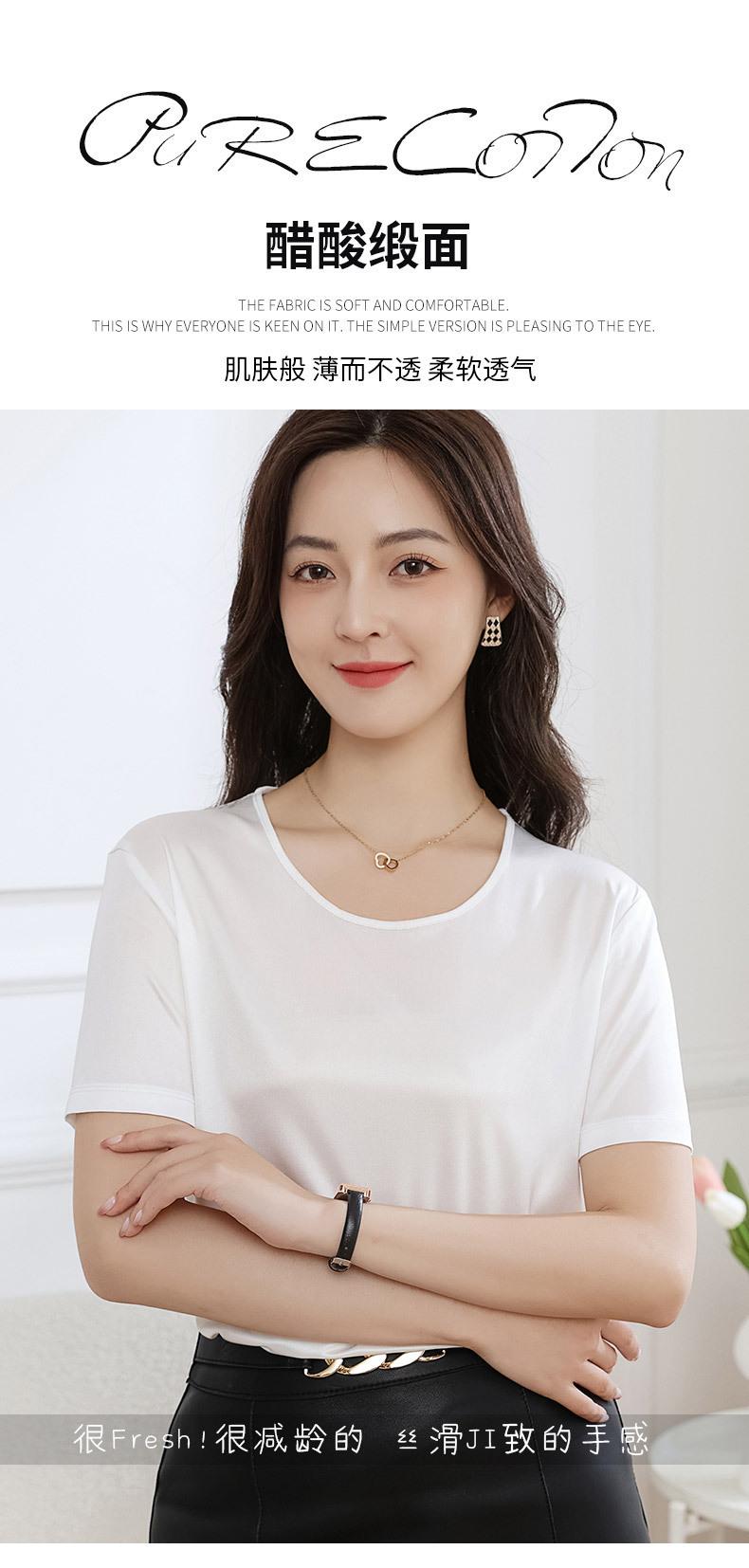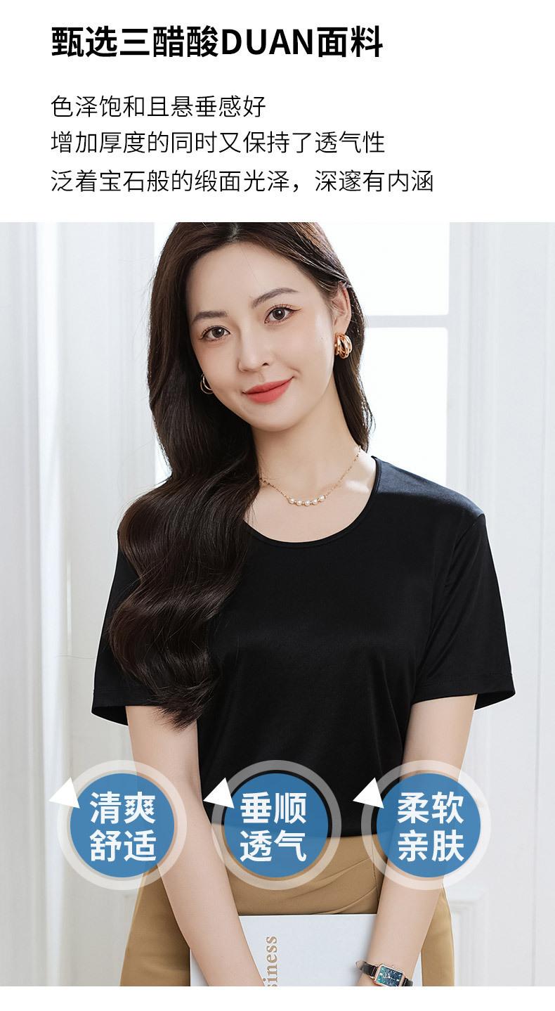 2025 Nuevo Jersey de Cuello U Manga Corta Satén de Triacetato Camiseta Verano Elegante Manga Corta Base Interior Color Sólido Top