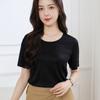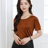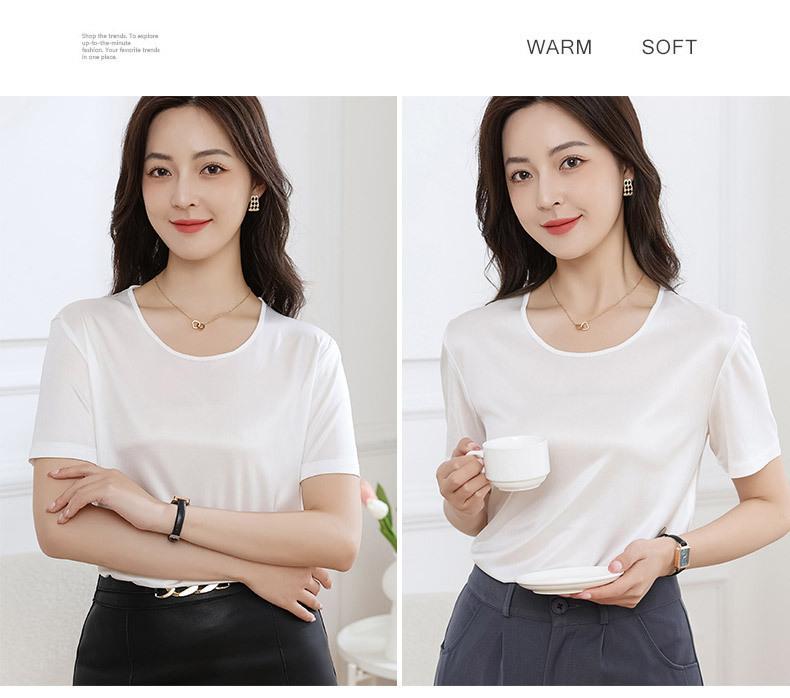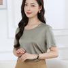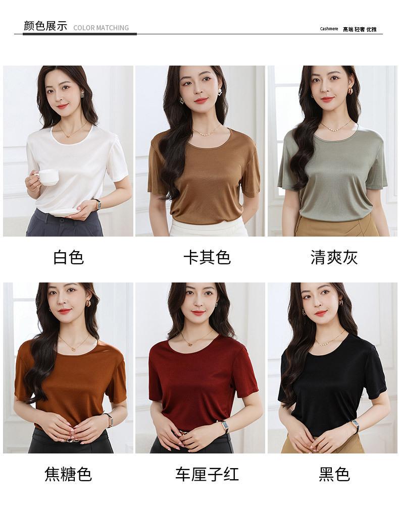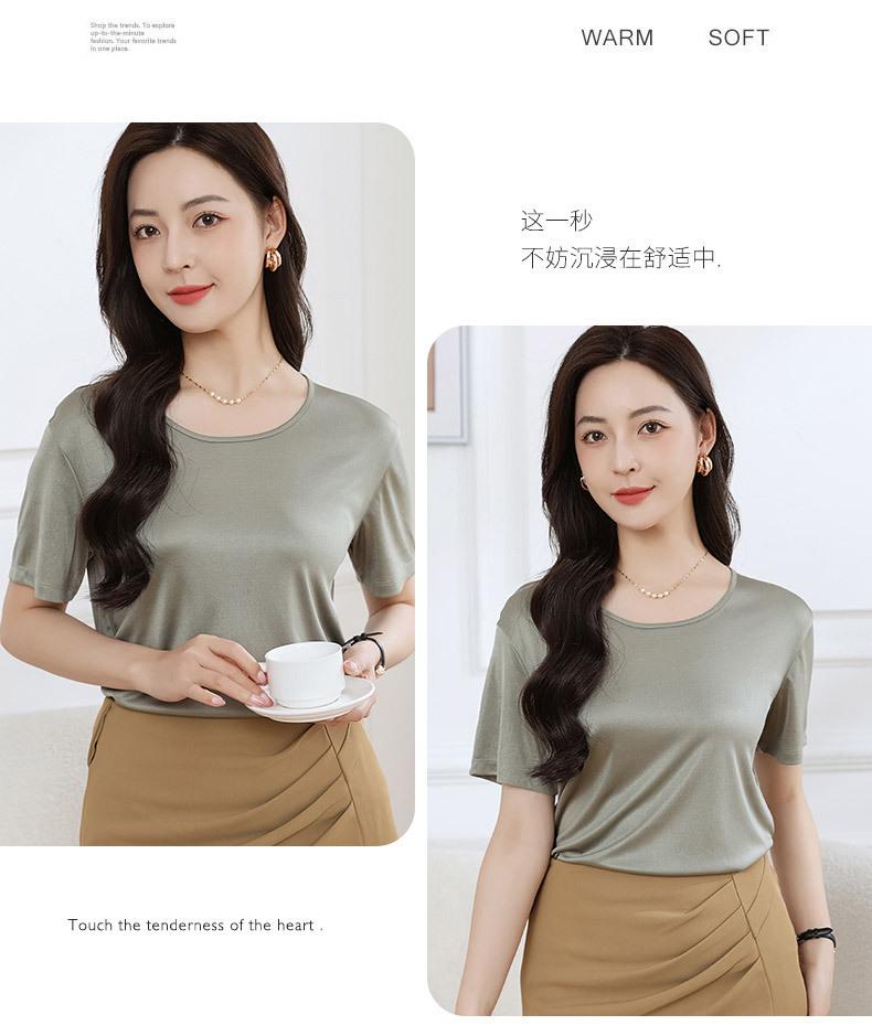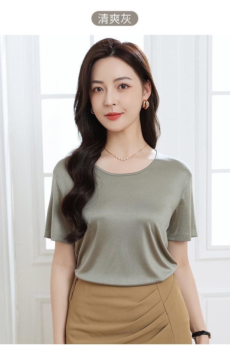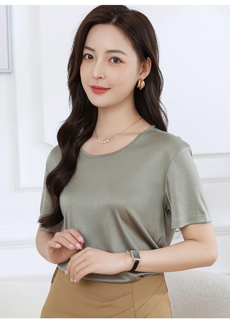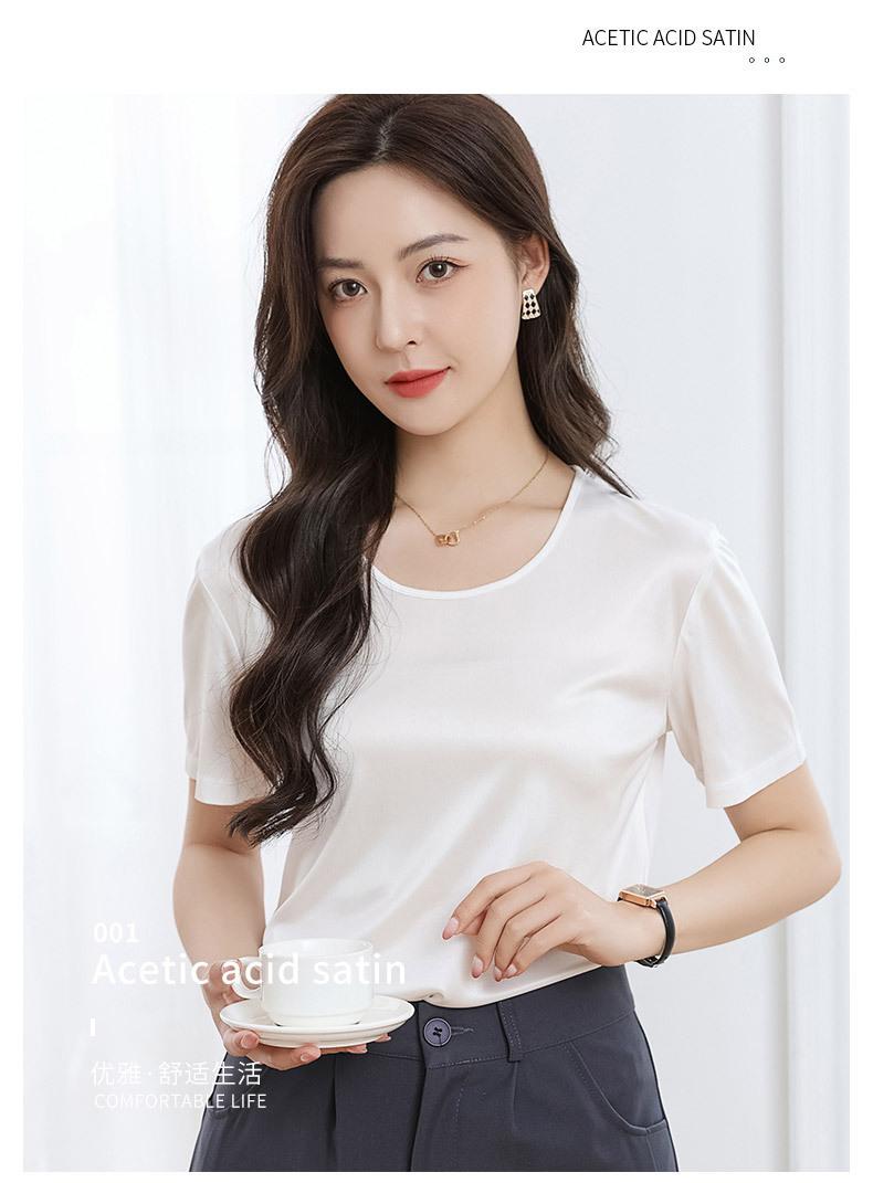 2025 Nuevo Jersey de Cuello U Manga Corta Satén de Triacetato Camiseta Verano Elegante Manga Corta Base Interior Color Sólido Top