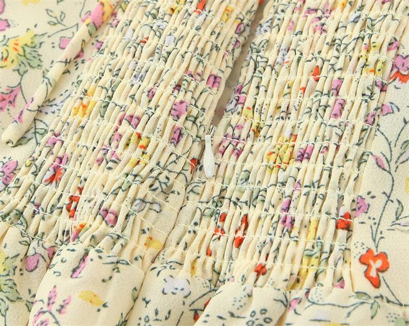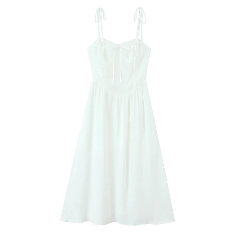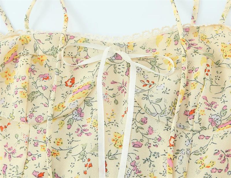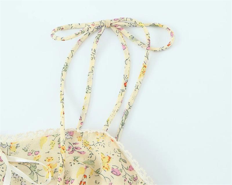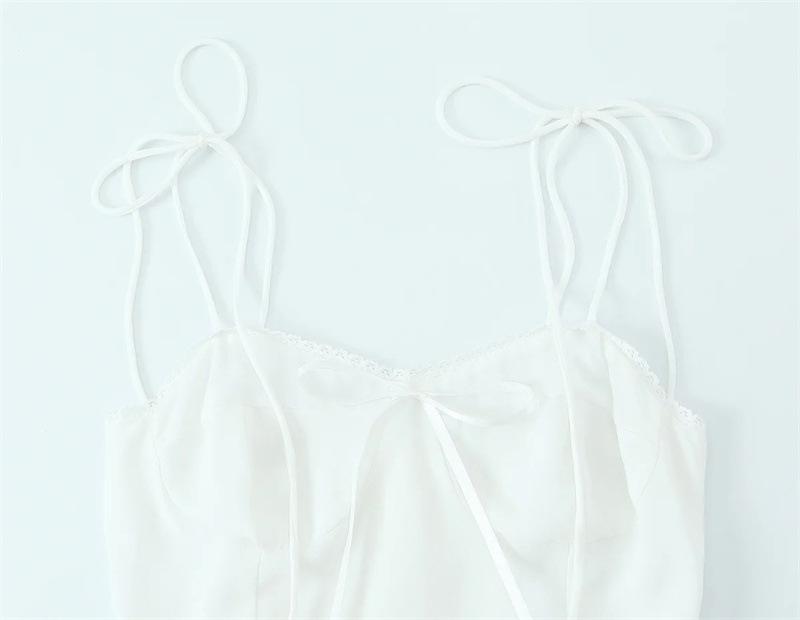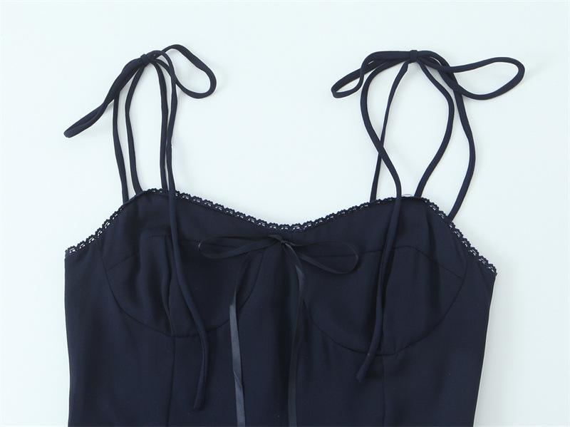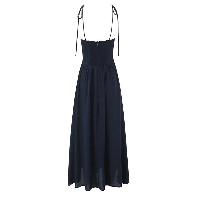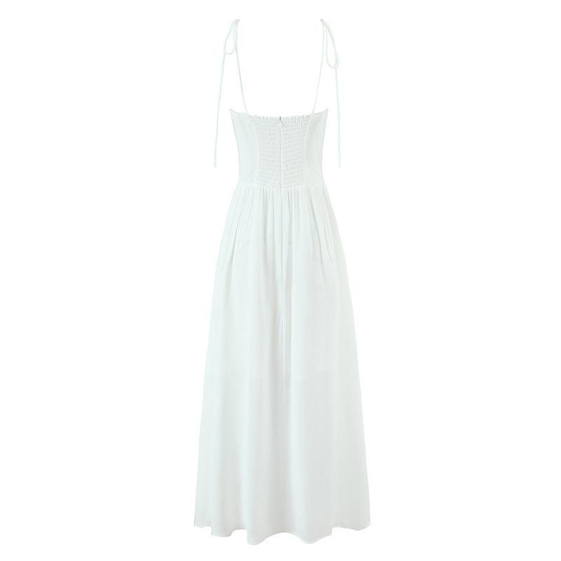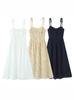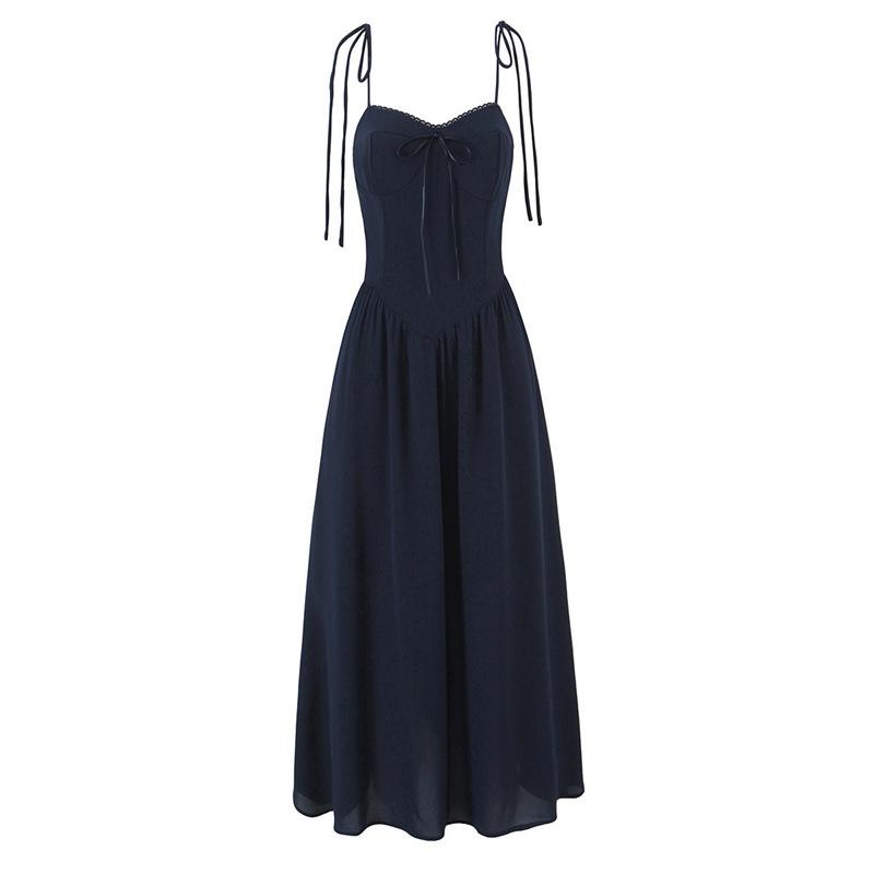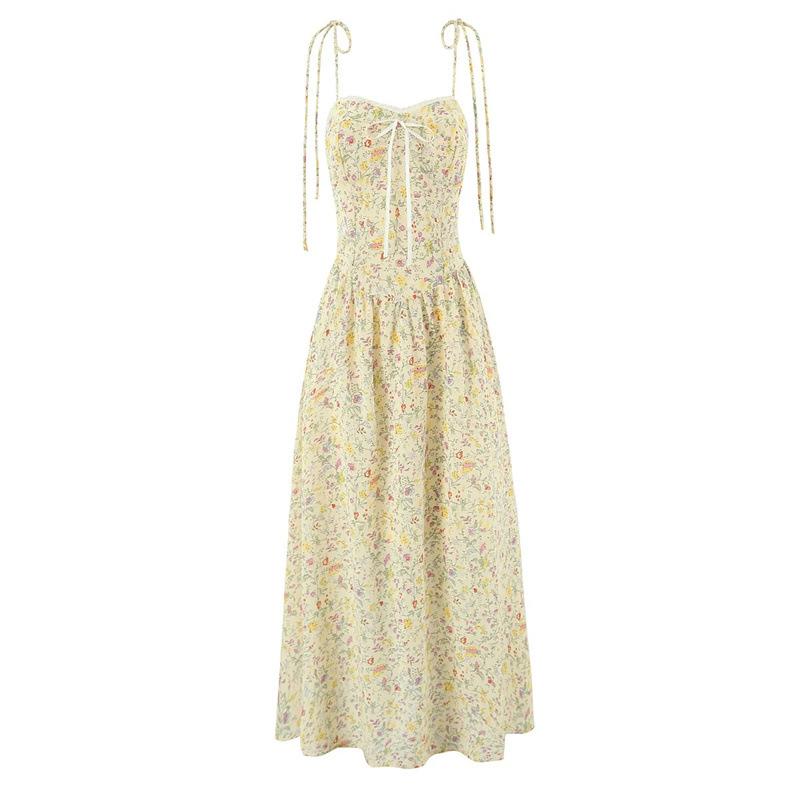 Verano Francés Retro Versátil Cuello Encaje Empalmado Cordones Mariposa Sexy Vestido de Tirantes Vacaciones Vestido Largo