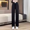 Pantalones de Pierna Ancha con Dobladillo Enrollado de Seda Helada para Mujer, Verano Delgados de Cintura Alta Sueltos Rectos Casuales Versión Estrecha Drapeados Petite Pantalones Recortados