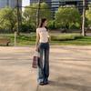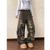 Diseño Sense Jeans de Mujer con Correa de Letras de Oso Bordado, Industria Pesada Plisado Encaje Reductor de Edad Ajustado Pantalones de Moda