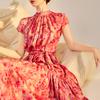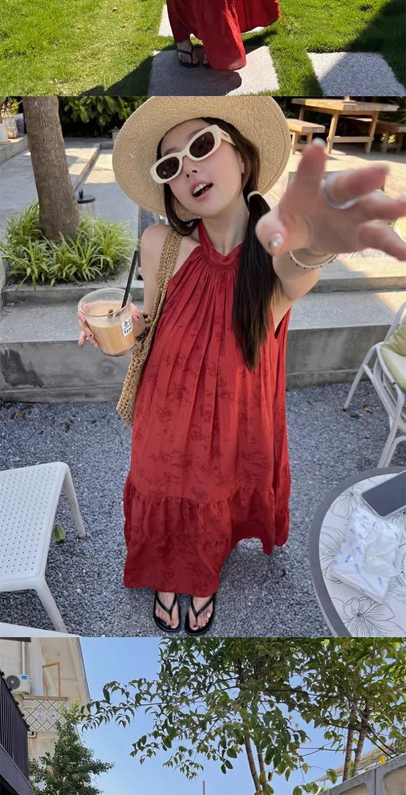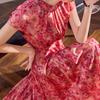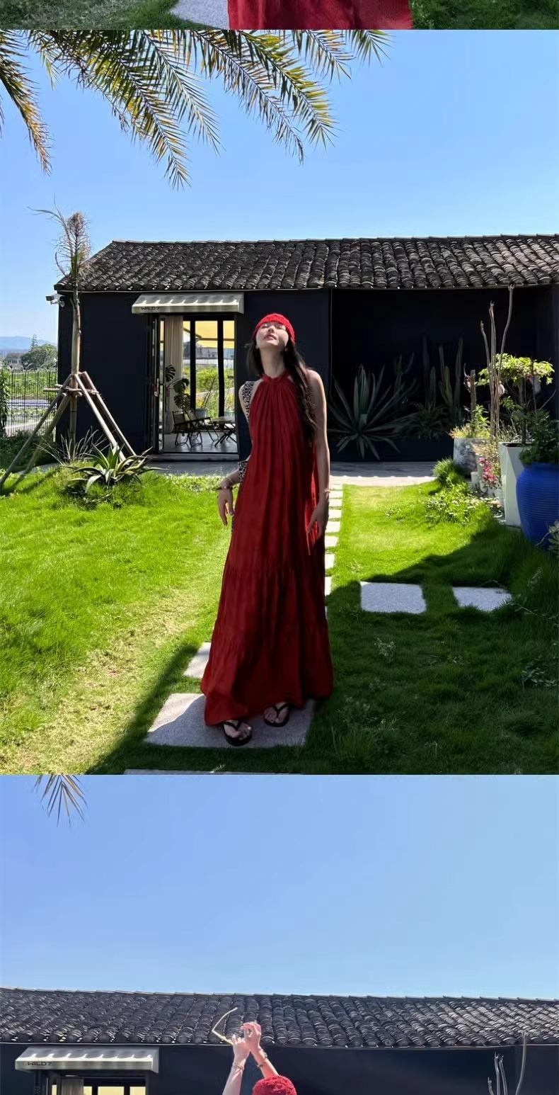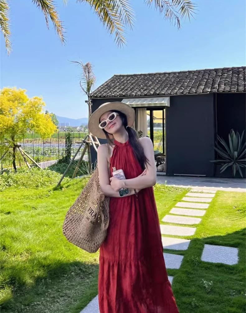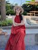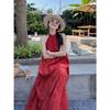 Vestido rojo de jacquard de estilo nacional retro de estilo chino nuevo para mujer, verano, vacaciones junto al mar, elegante falda larga