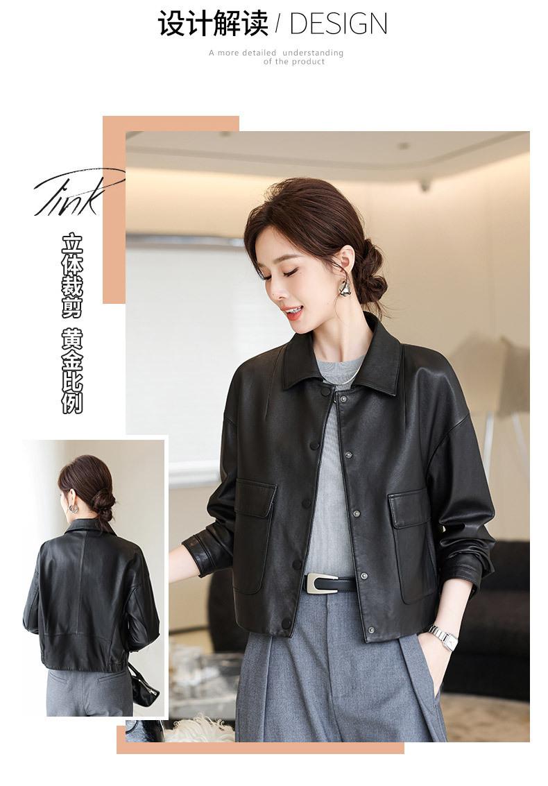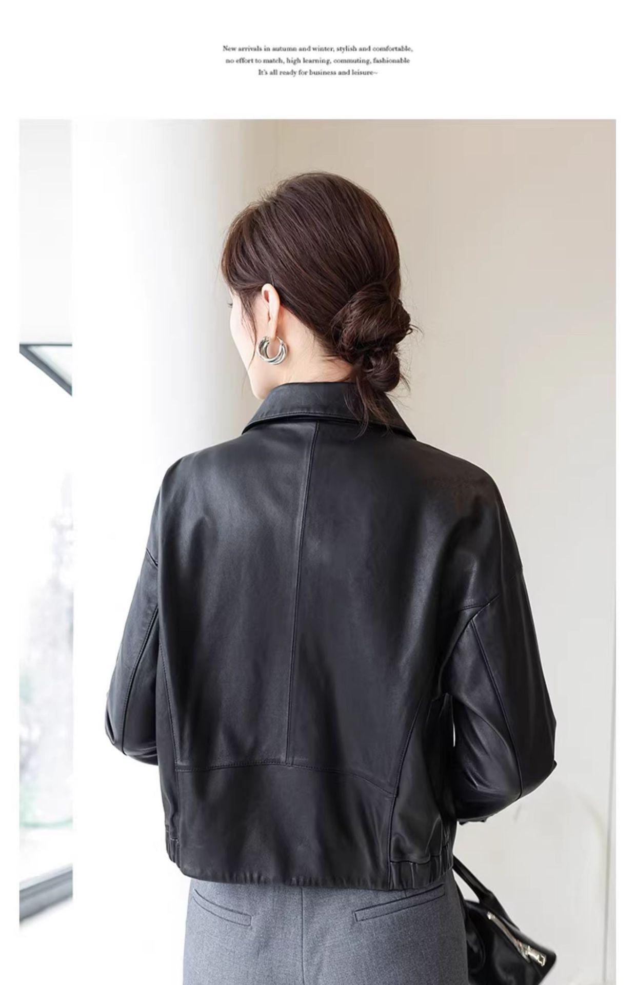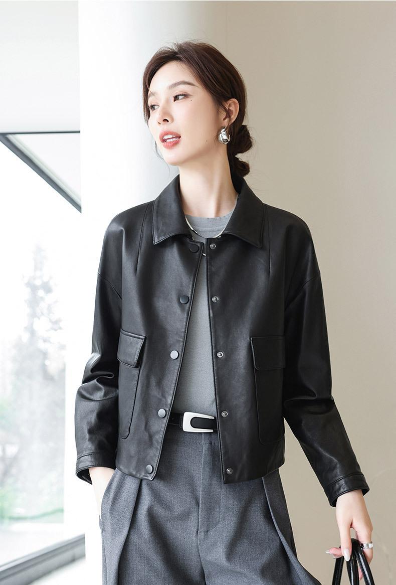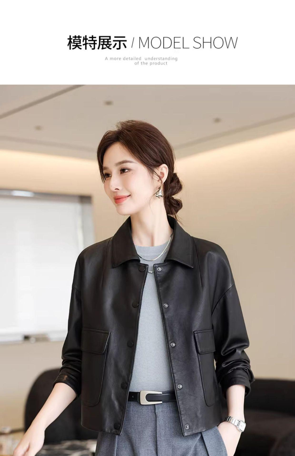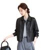 Chaqueta de Cuero Genuino para Mujer 2025 Primavera y Otoño Nuevo Estilo Solapa Elegante Haining Piel de Cabra Pura Chaqueta Pequeña Estilo Corto