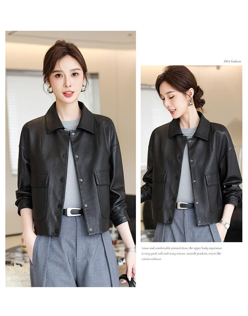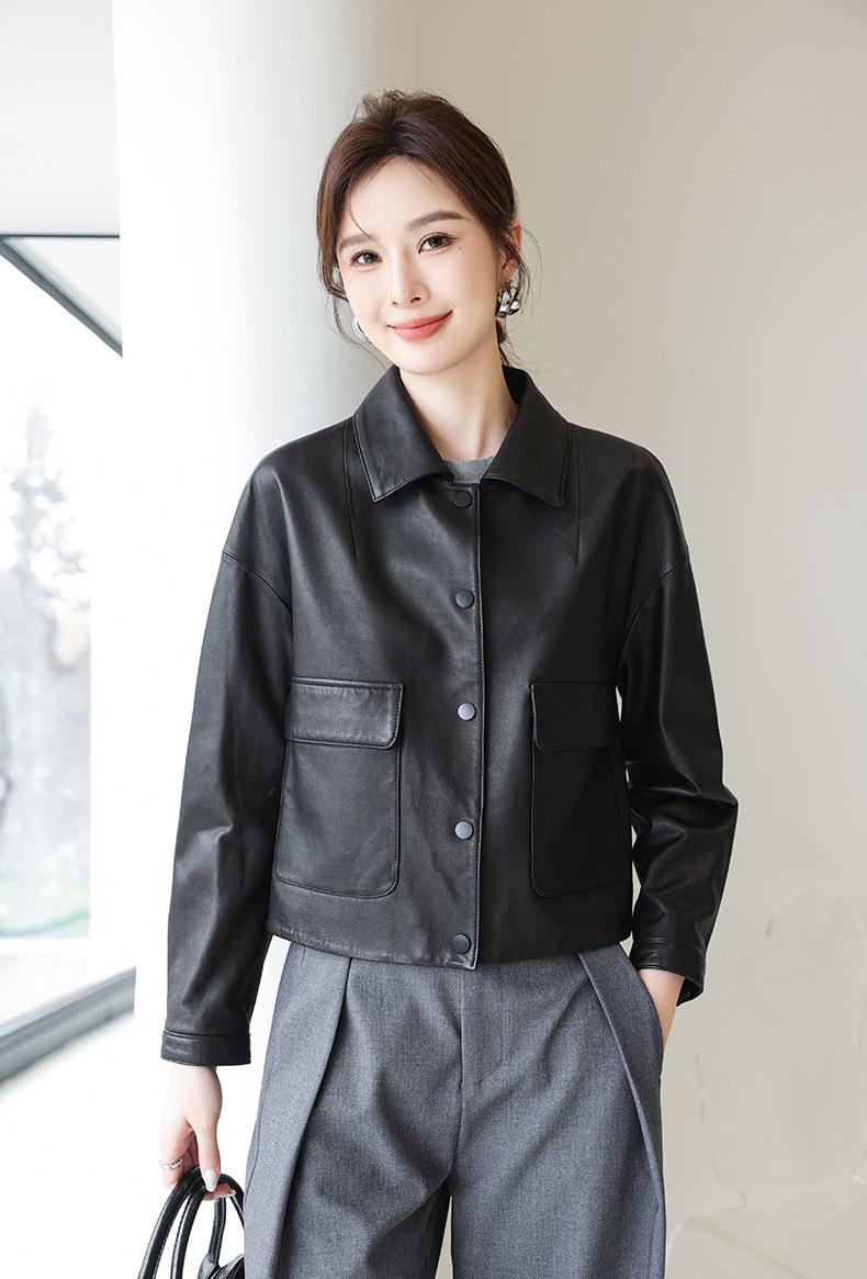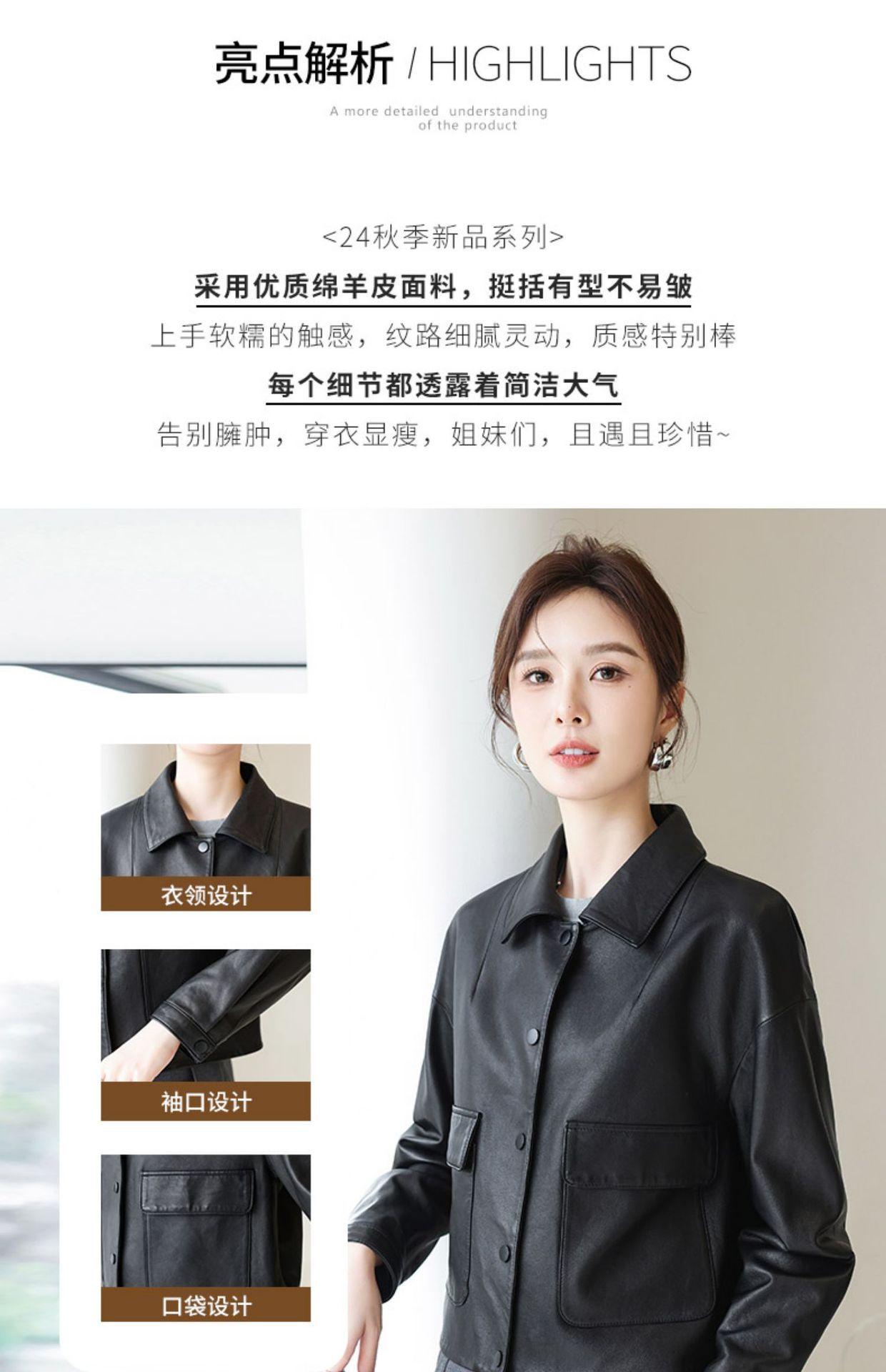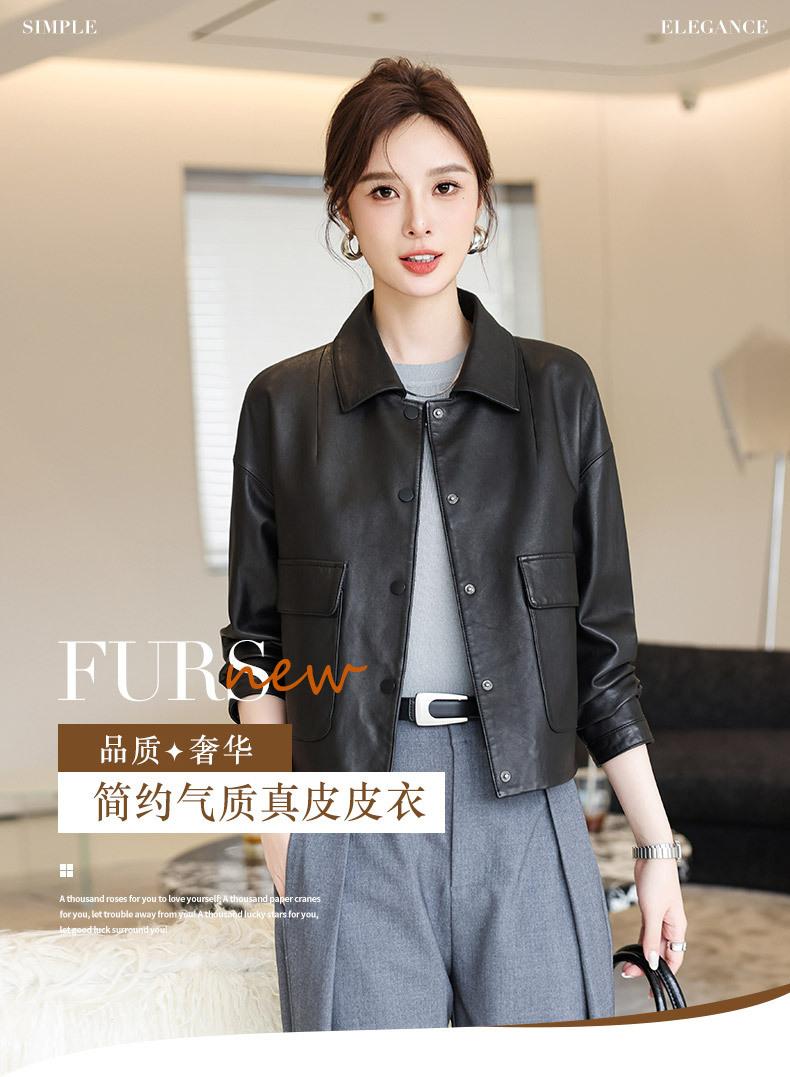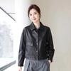 Chaqueta de Cuero Genuino para Mujer 2025 Primavera y Otoño Nuevo Estilo Solapa Elegante Haining Piel de Cabra Pura Chaqueta Pequeña Estilo Corto