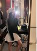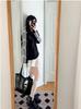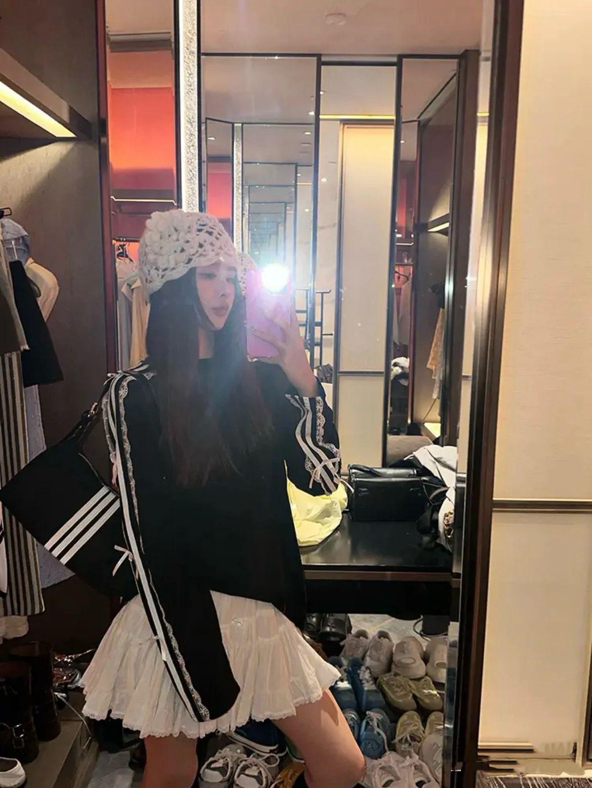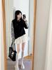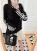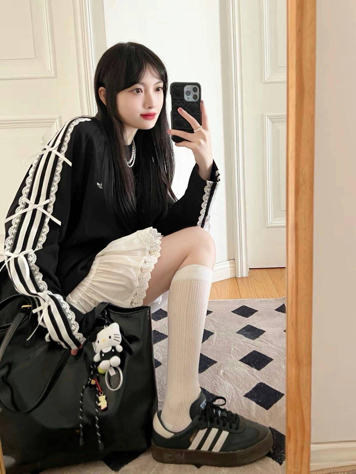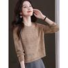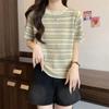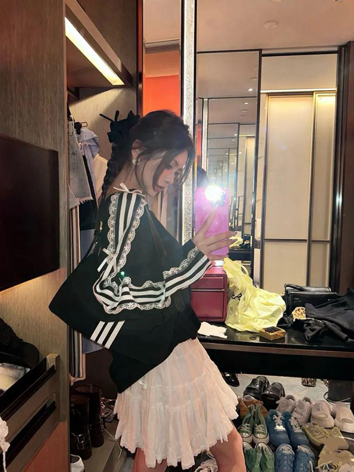 Camiseta holgada de manga larga estilo retro casual americano con sentido del diseño de lazo. Top de encaje a rayas de largo medio para mujer.