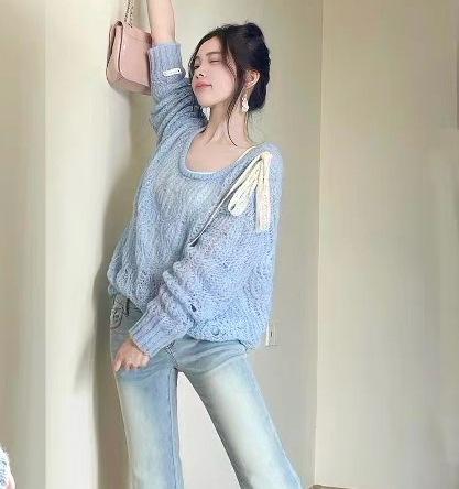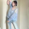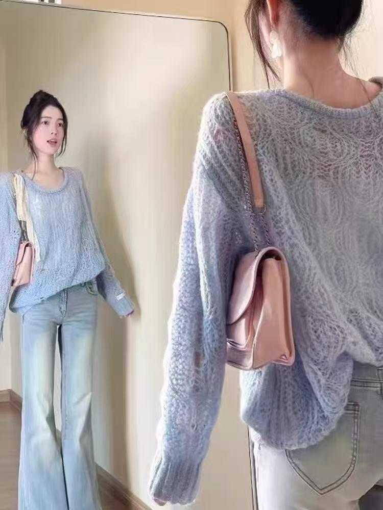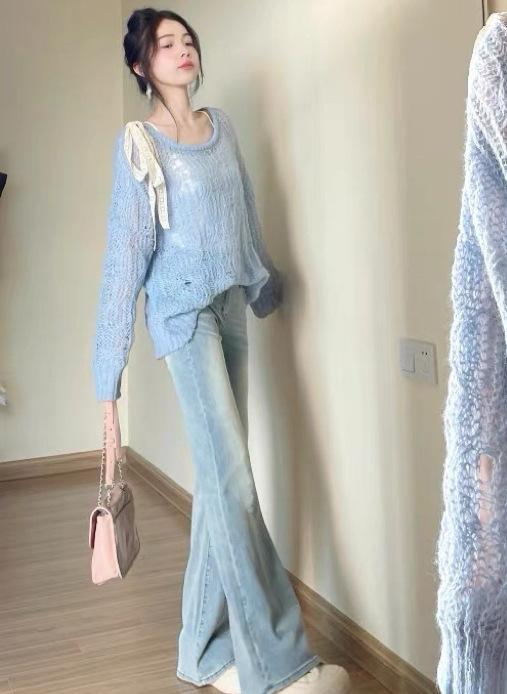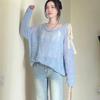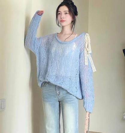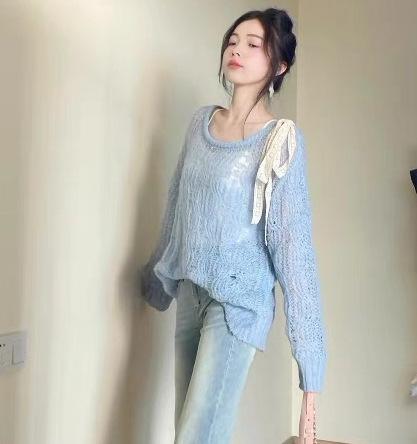 Suéter hueco de un hombro con lazo, suéter delgado para verano, blusa de estilo suelto y holgazán, top de protección solar