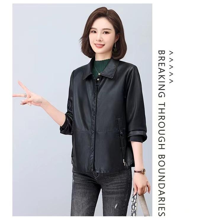 Abrigo de cuero para mujer Haining personalizado, nuevo abrigo de primavera y otoño para mujer, abrigo corto de cuero, chaqueta pequeña holgada para mujer