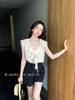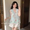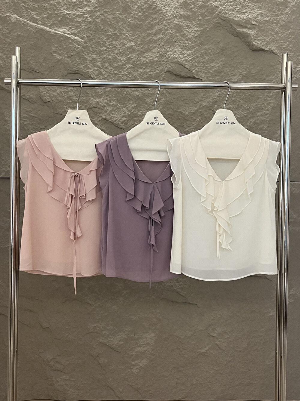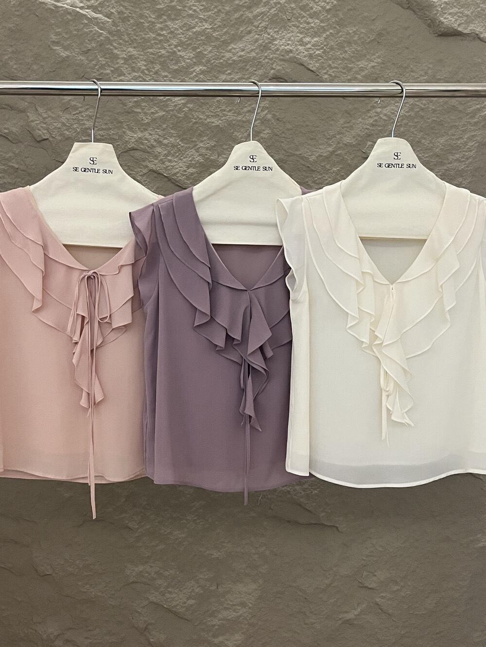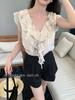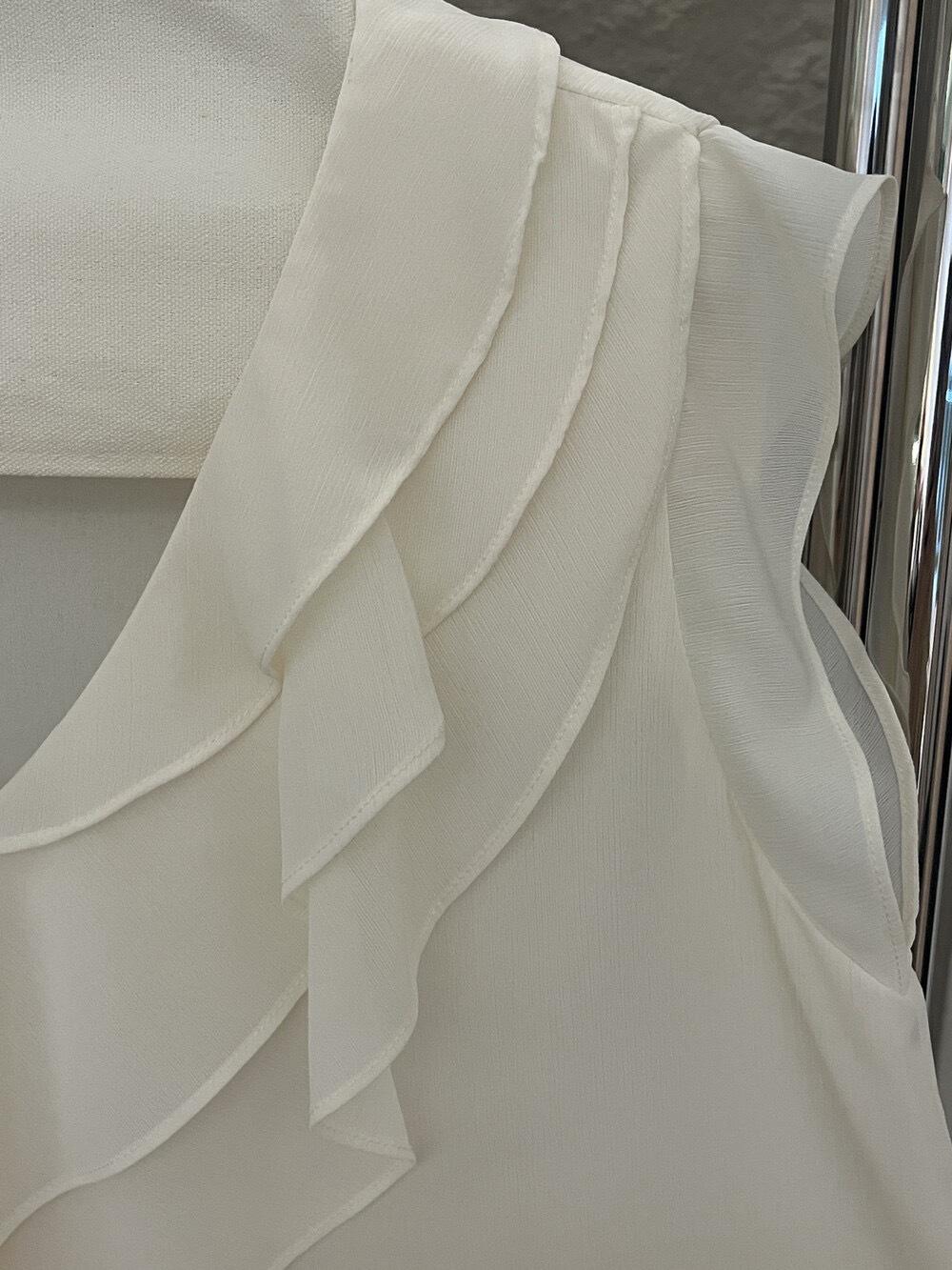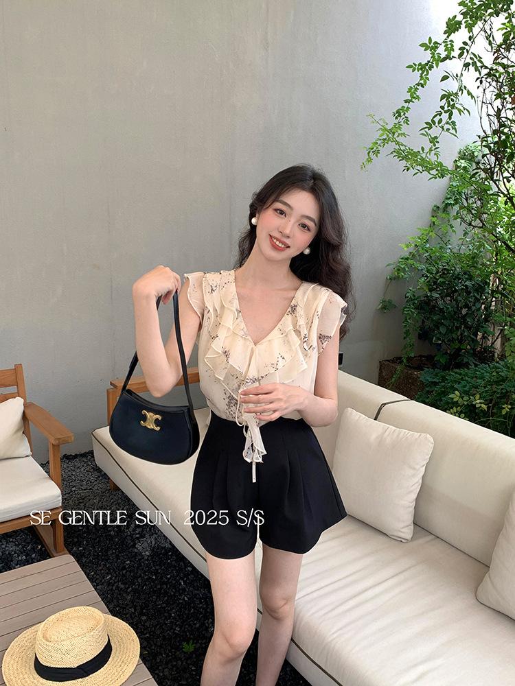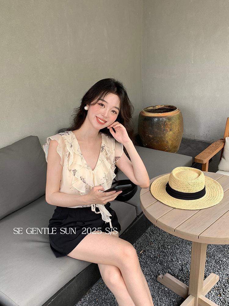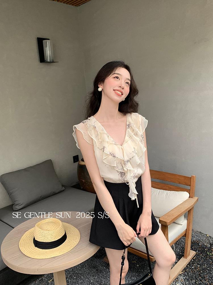 Xiuxi 2025 Verano Nuevo Adelgazante Elegante Combinable Hoja de Loto Cuello en V Chifón Top Camisa de Manga Corta para Mujer 89431