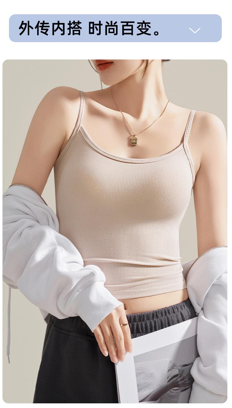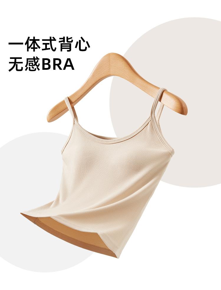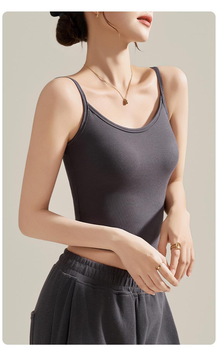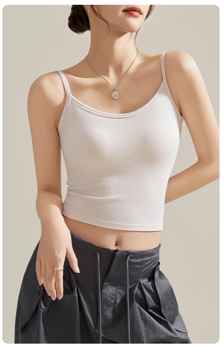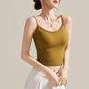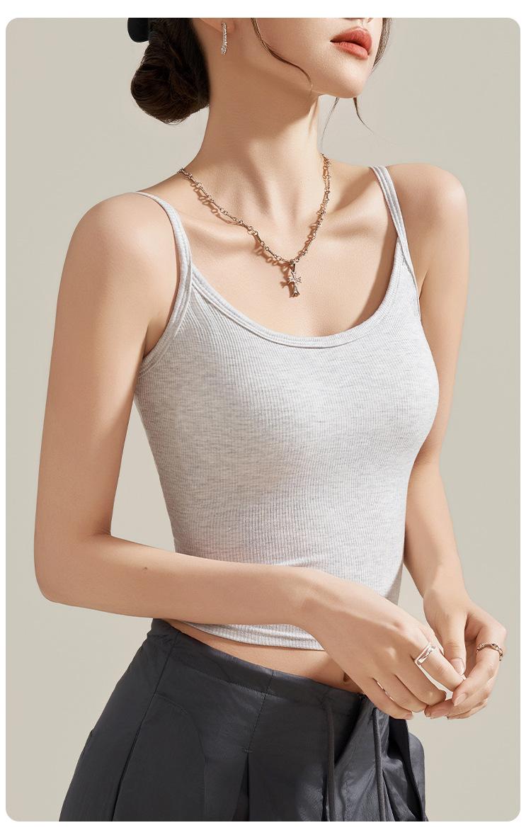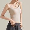 Camisola de Mujer con Almohadilla en el Pecho para Verano Hermoso Sujetador de Espalda Una Pieza sin Mangas Cuello Redondo Base Top de Color Sólido