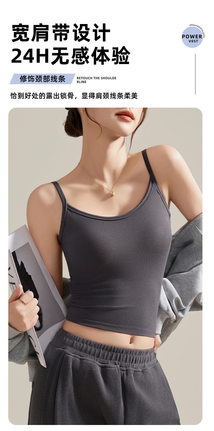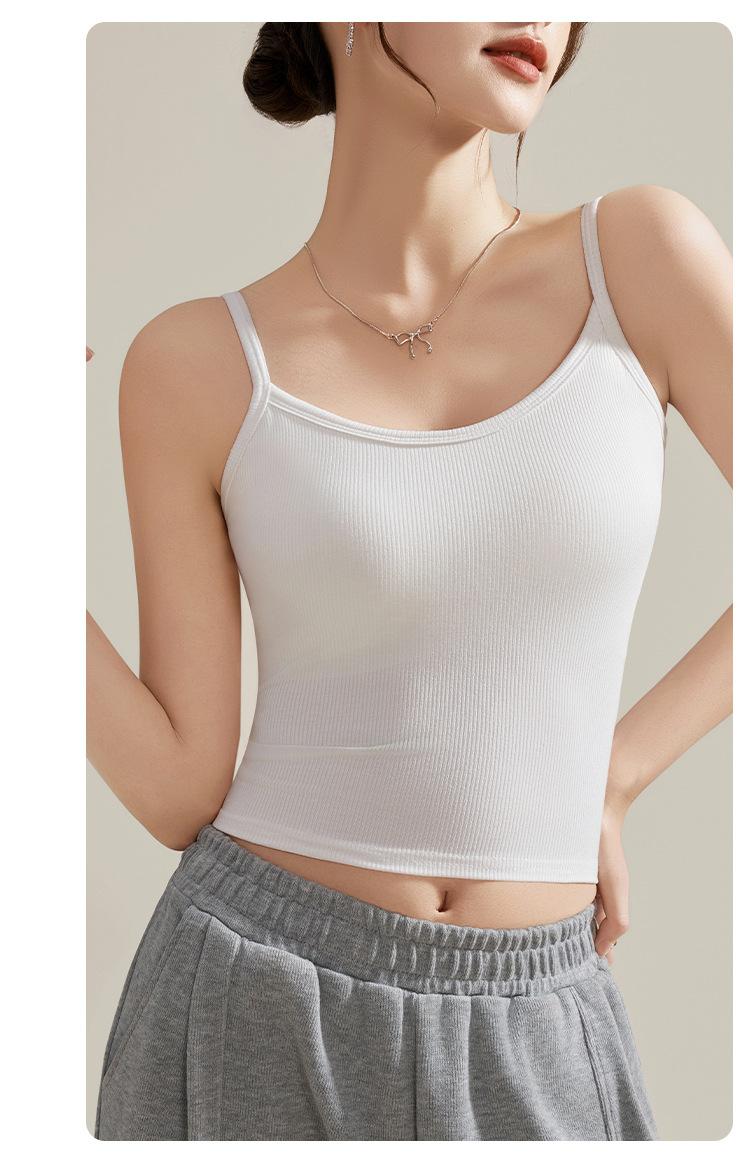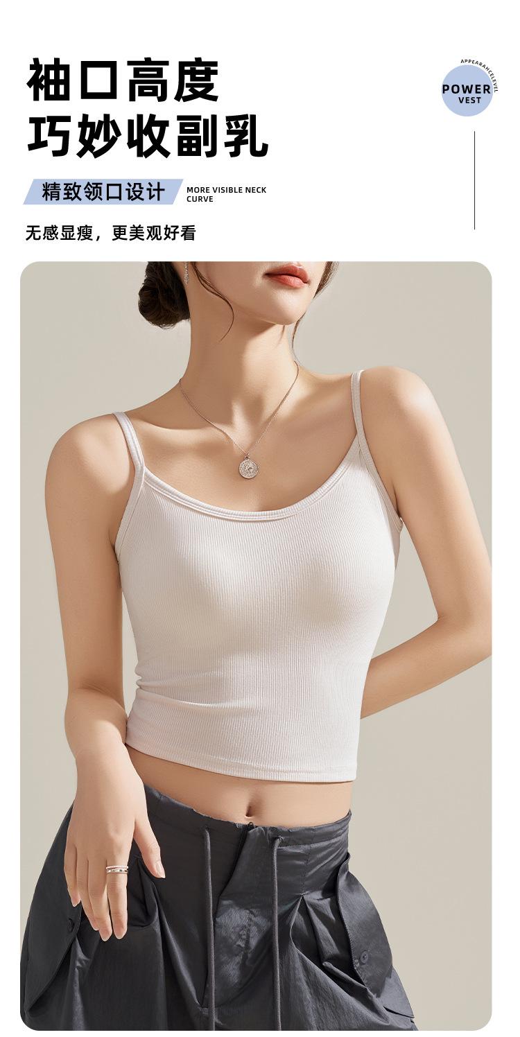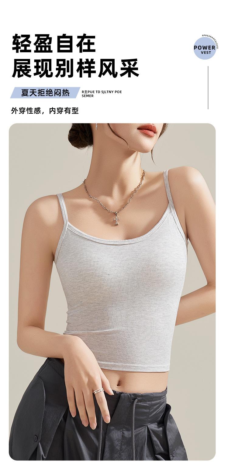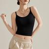 Camisola de Mujer con Almohadilla en el Pecho para Verano Hermoso Sujetador de Espalda Una Pieza sin Mangas Cuello Redondo Base Top de Color Sólido