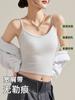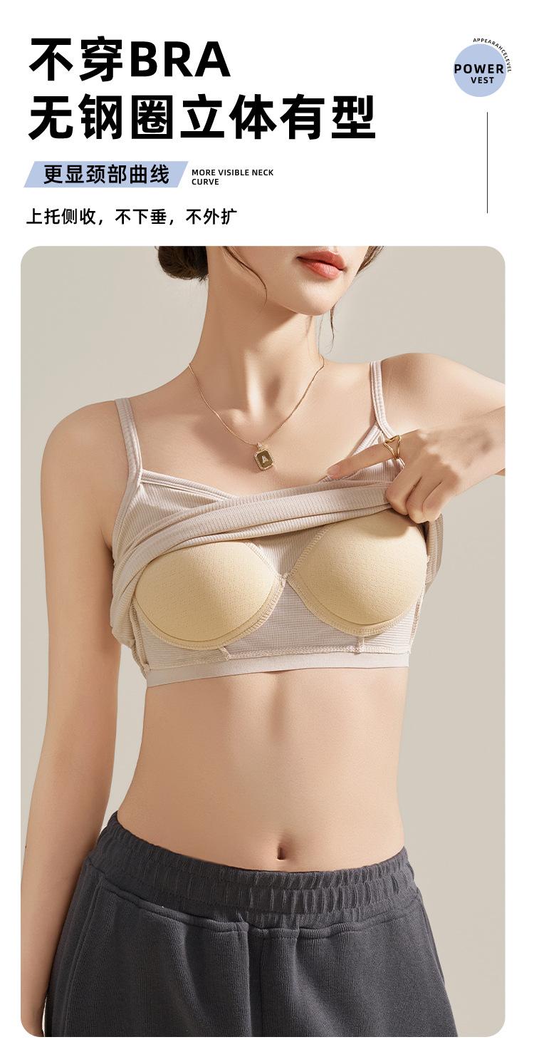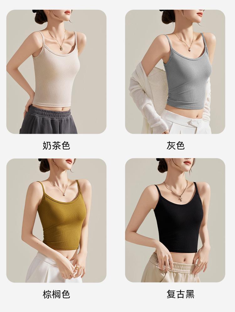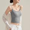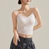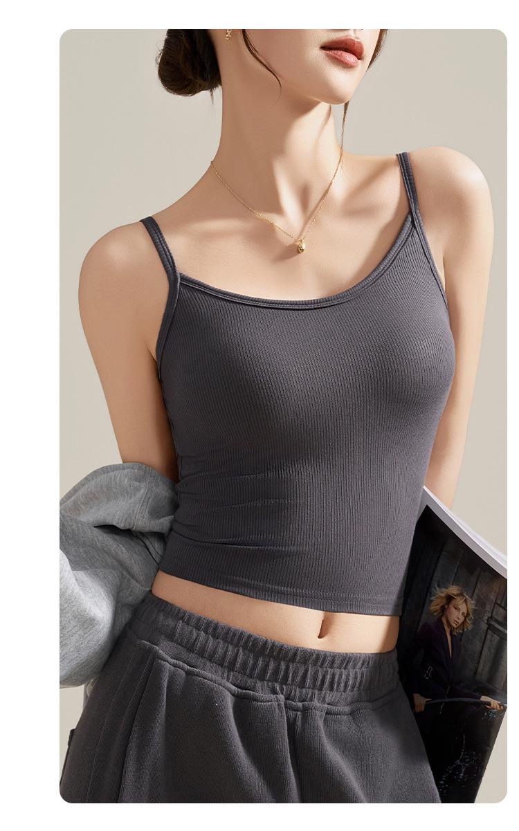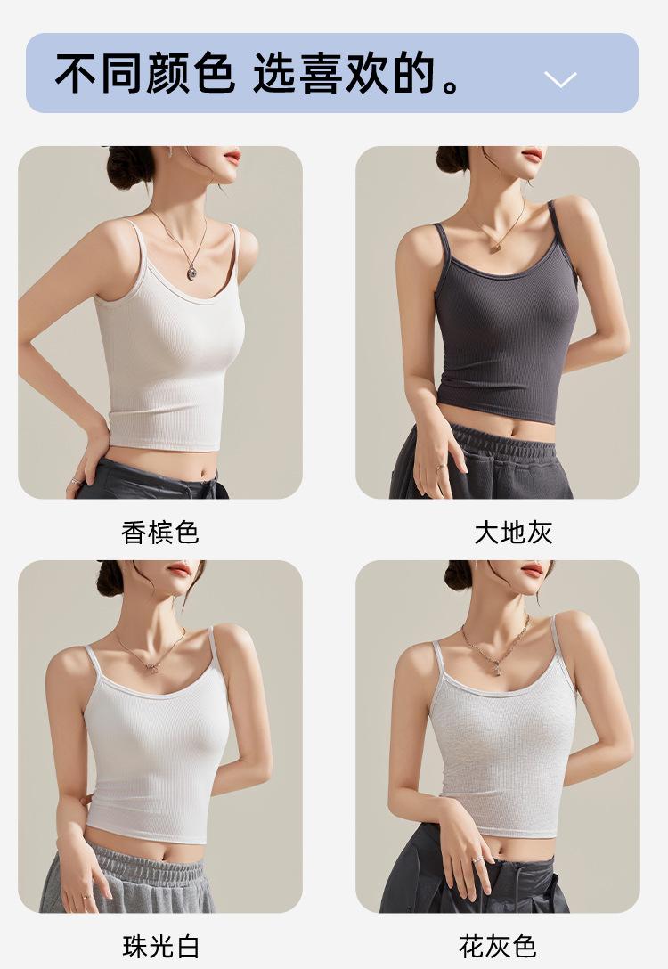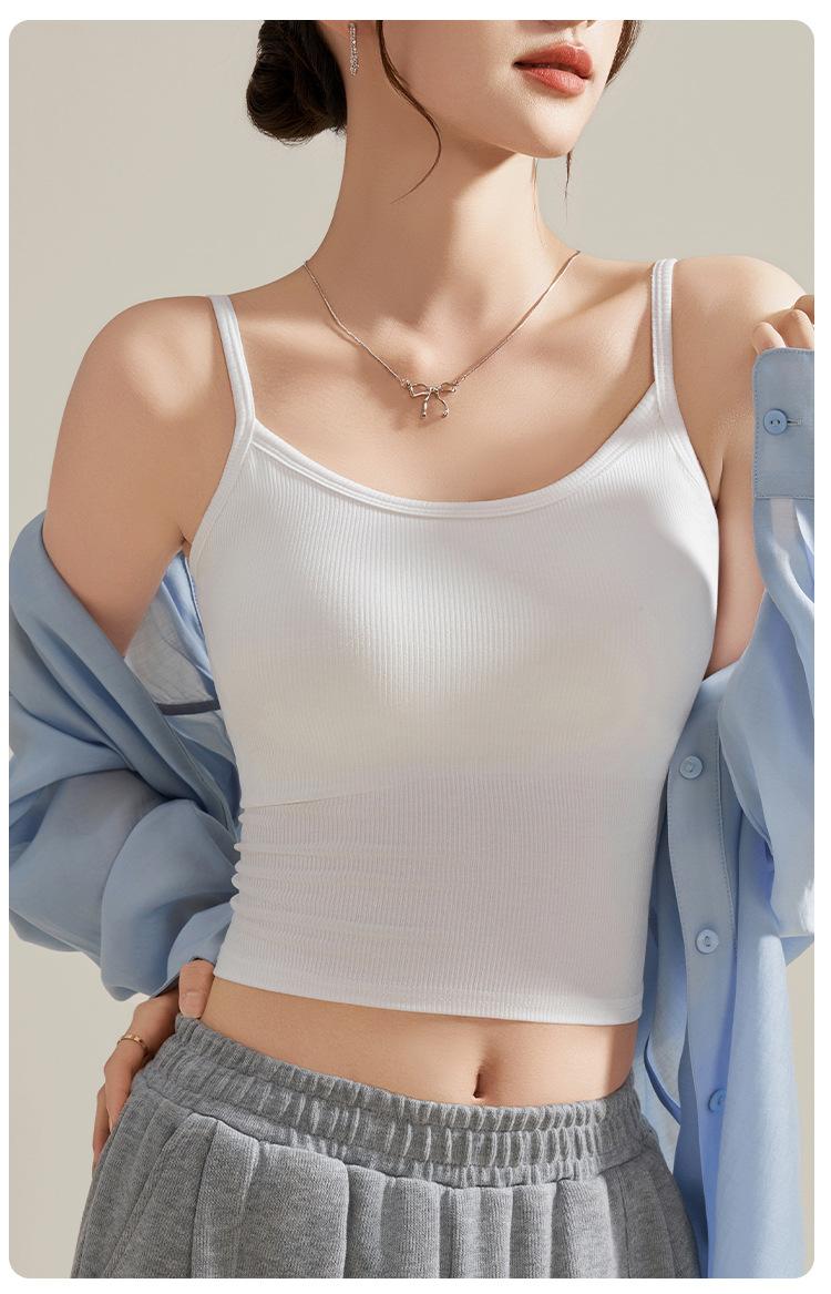 Camisola de Mujer con Almohadilla en el Pecho para Verano Hermoso Sujetador de Espalda Una Pieza sin Mangas Cuello Redondo Base Top de Color Sólido