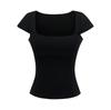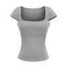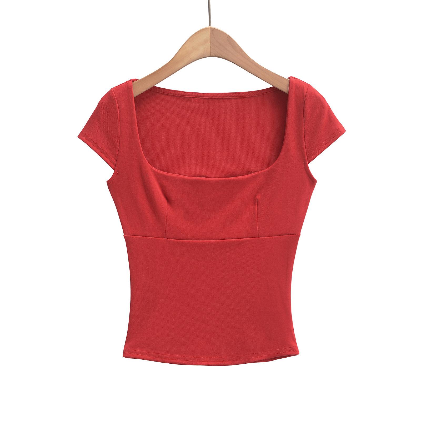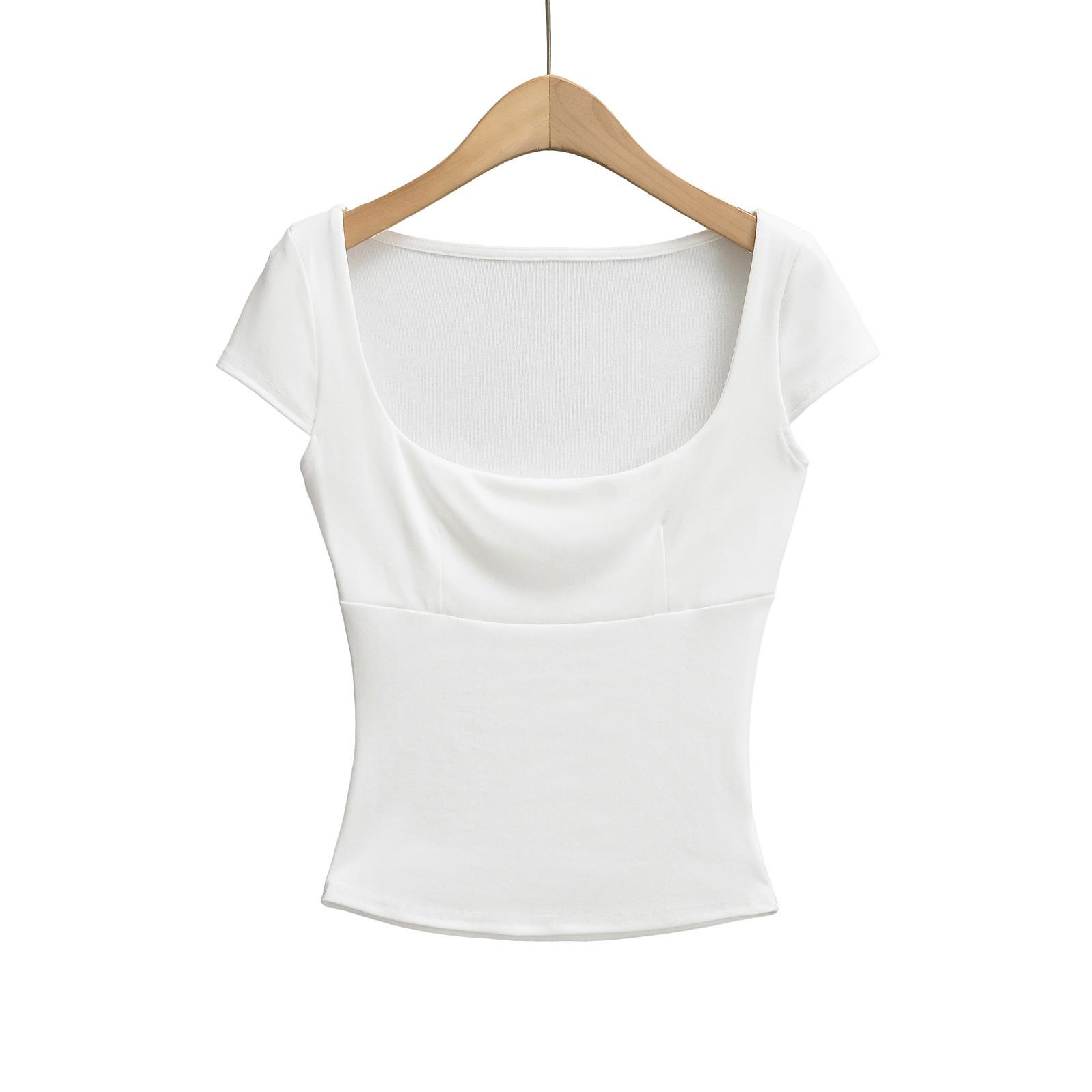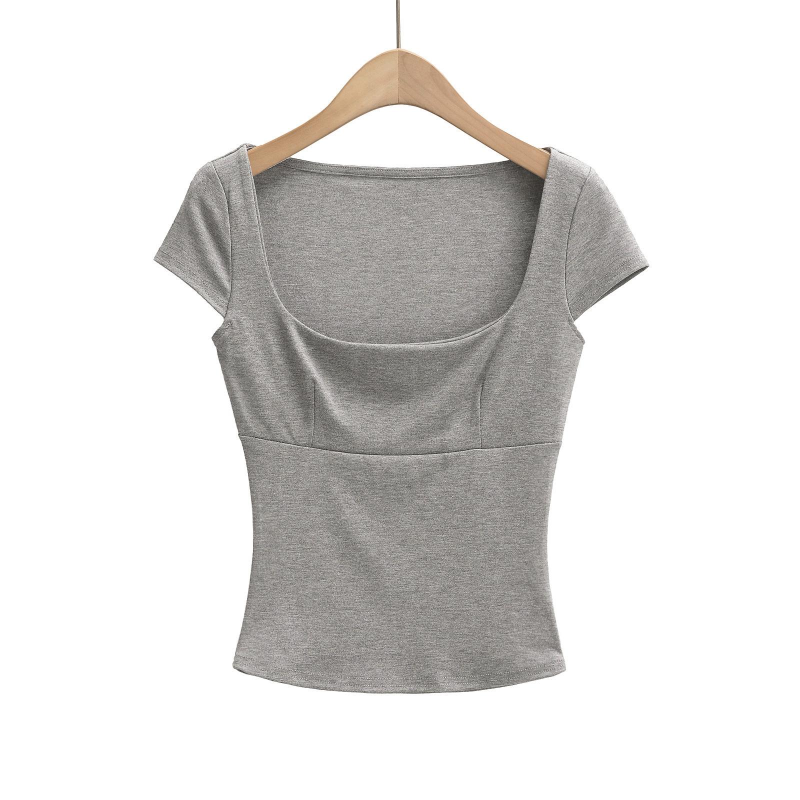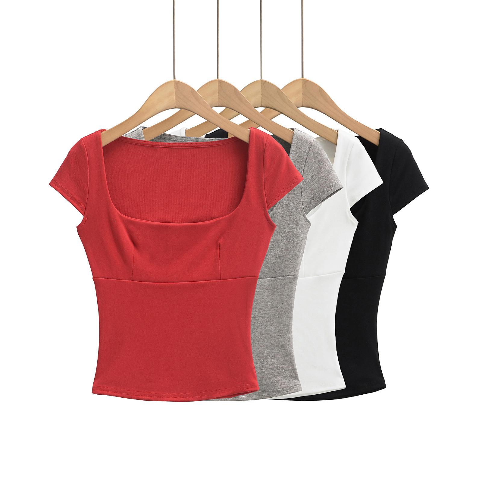 25068-2025 Nuevo Estilo Deseo Puro Casual Top Cuello Cuadrado para Mujer Europeo y Americano Sexy Slim Manga Corta Camiseta Camiseta Básica