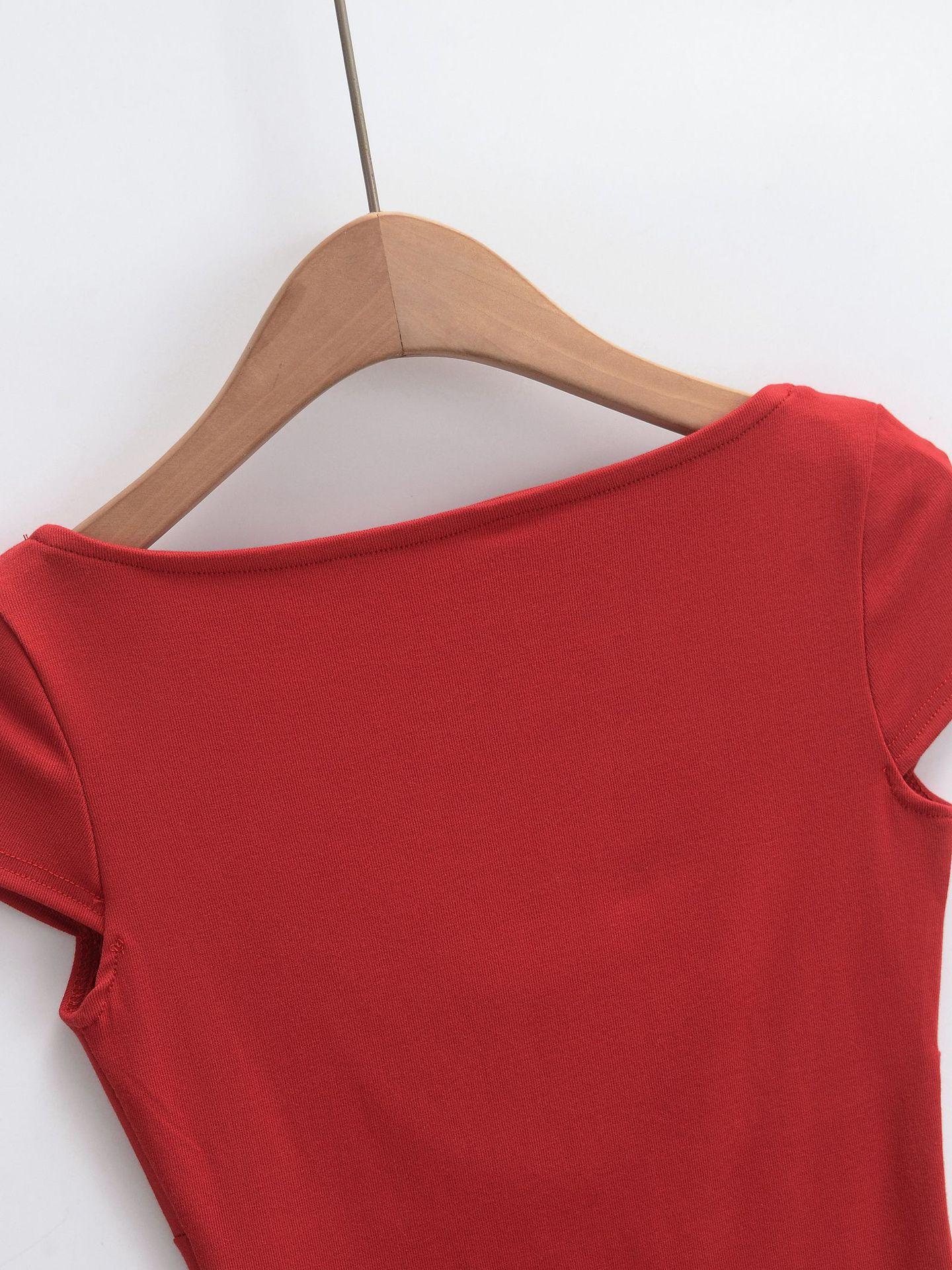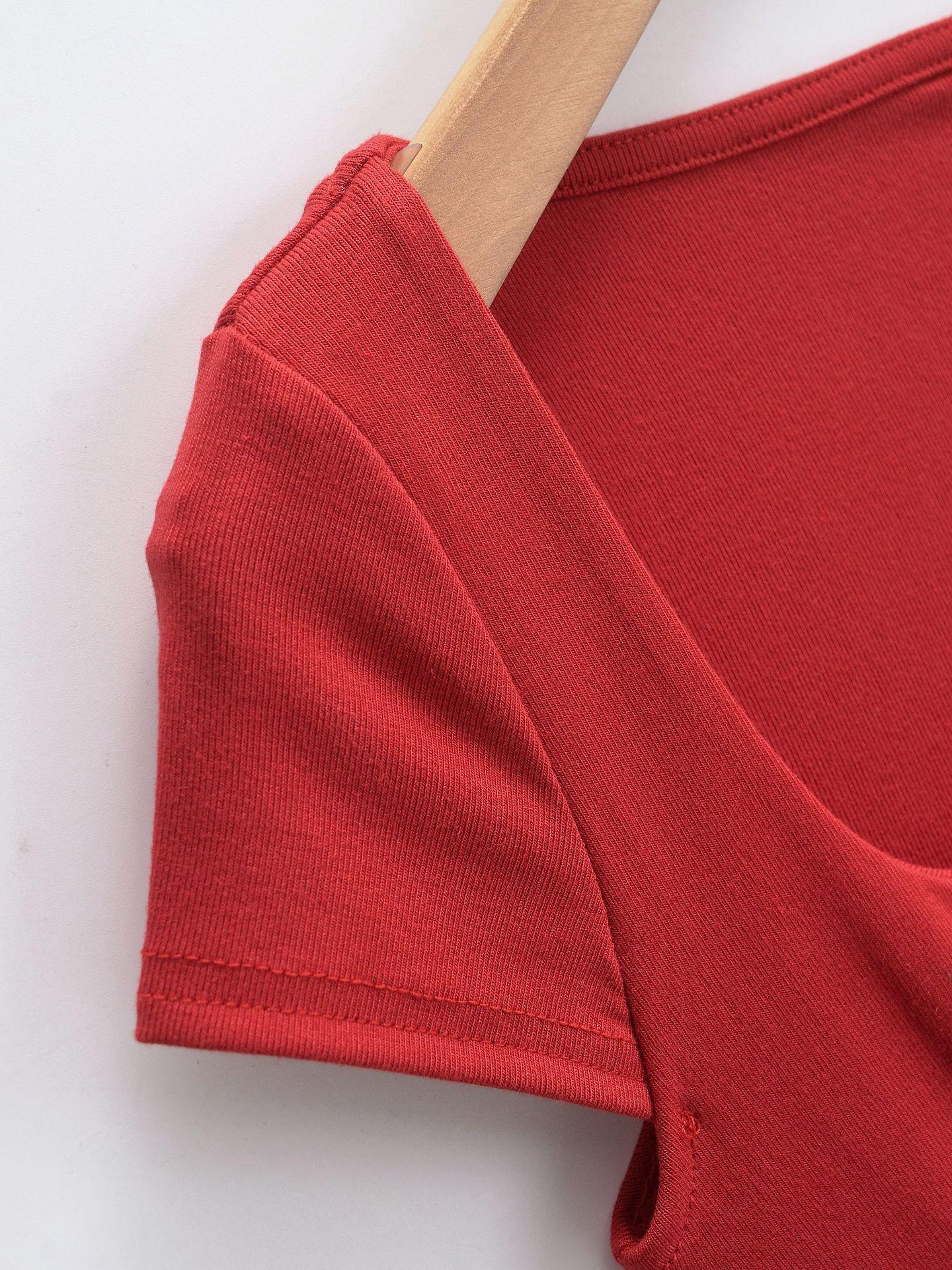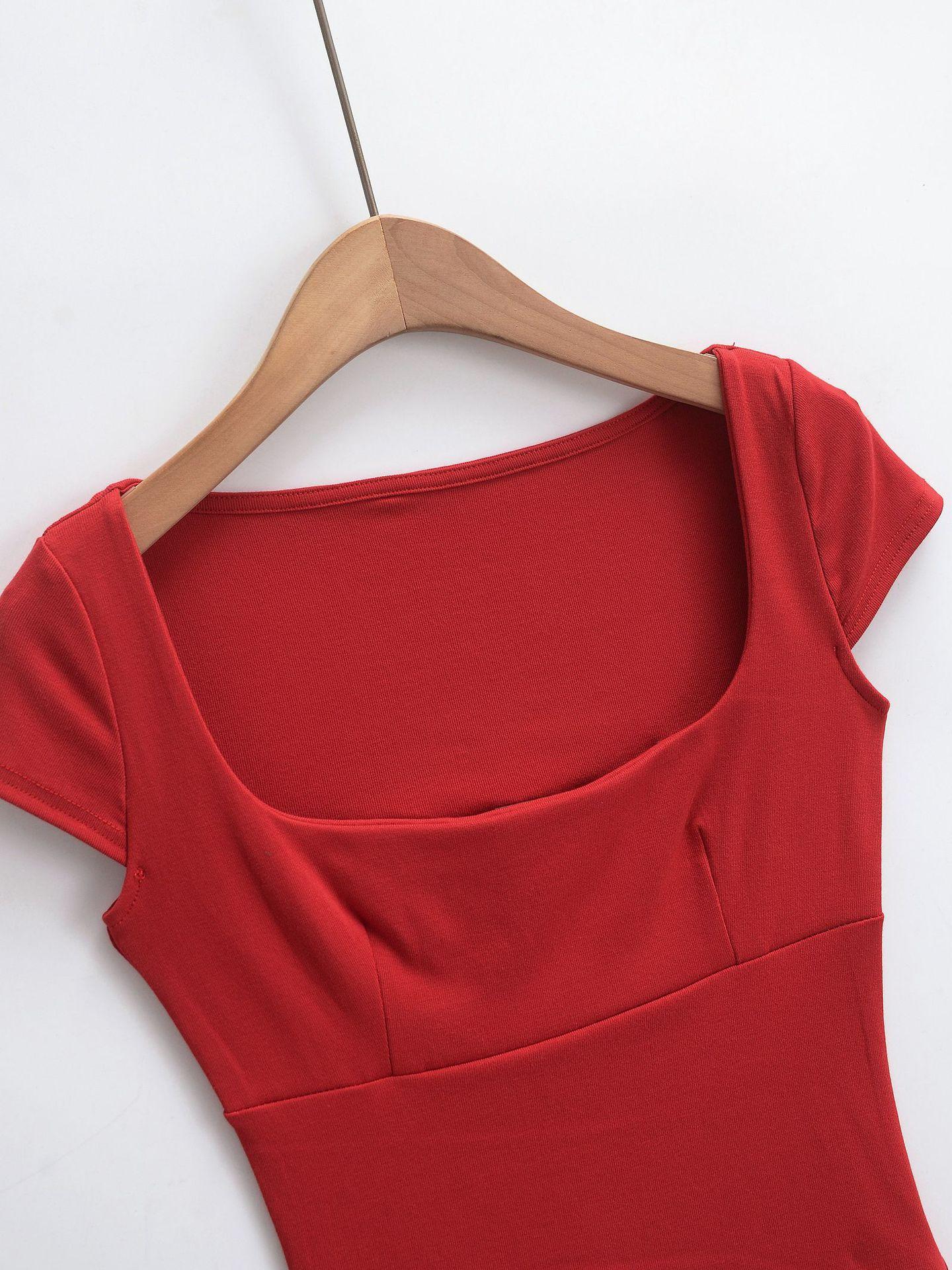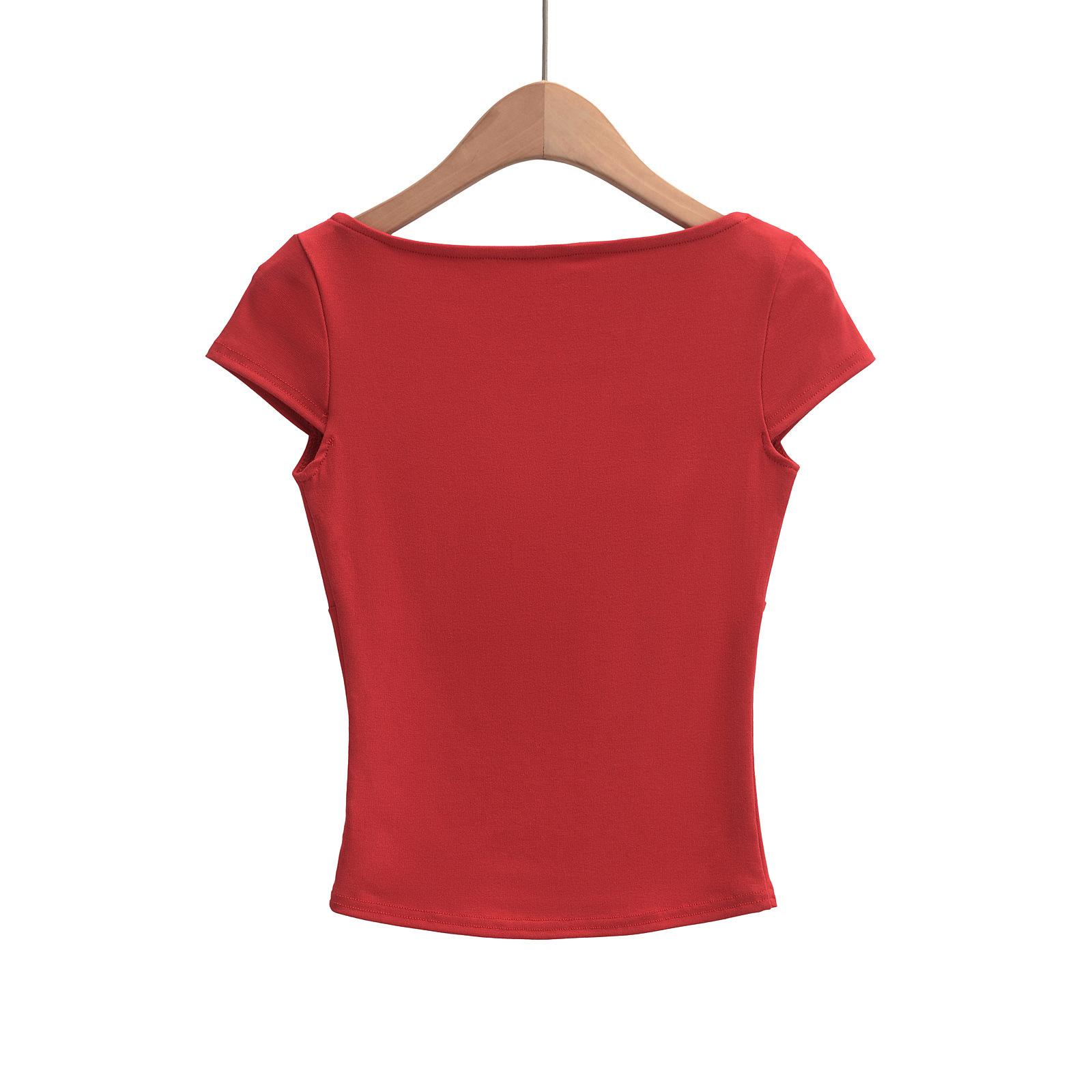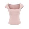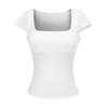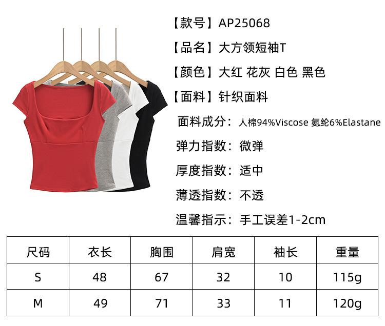 25068-2025 Nuevo Estilo Deseo Puro Casual Top Cuello Cuadrado para Mujer Europeo y Americano Sexy Slim Manga Corta Camiseta Camiseta Básica