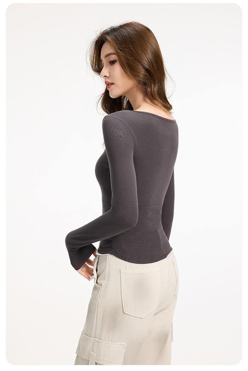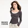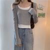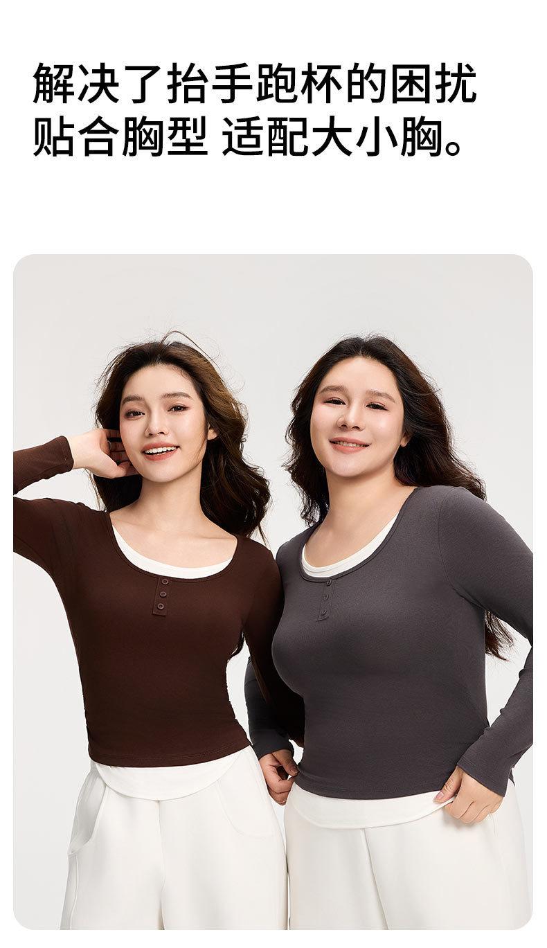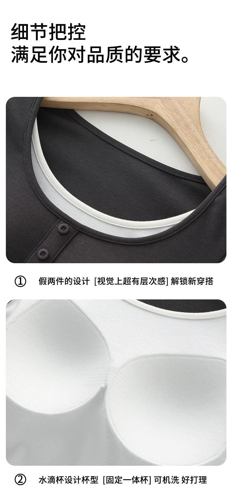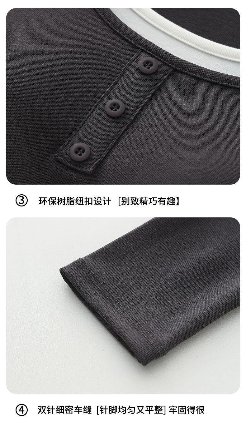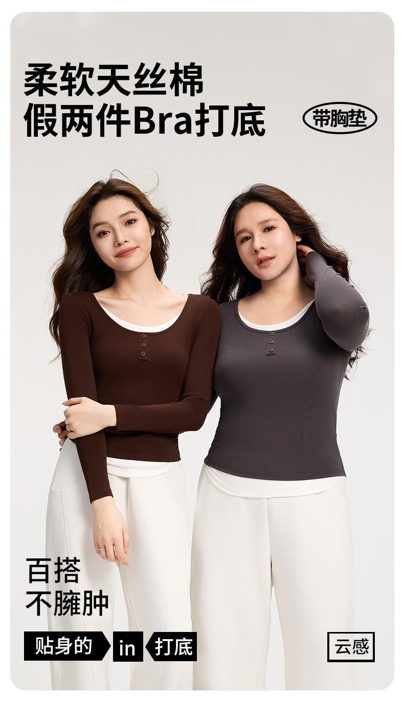 Primavera y Verano Nuevo para Mujer Falso de Dos Piezas Color de Contraste Manga Larga Camiseta Sentido del Diseño Nicho Ajustado Ajustado Top Básico