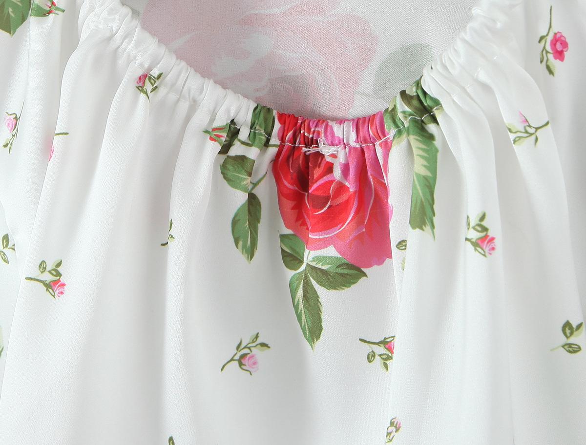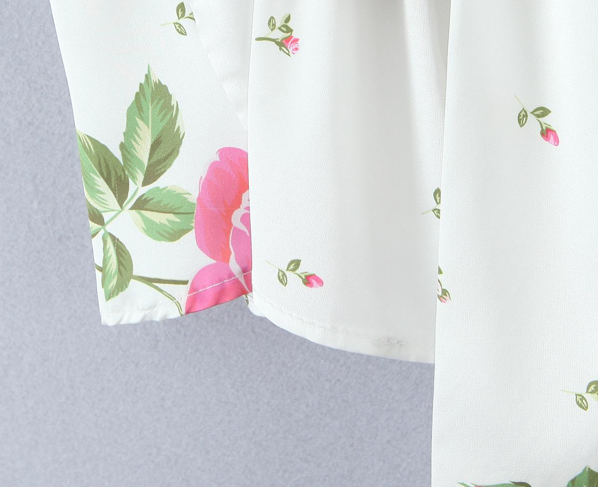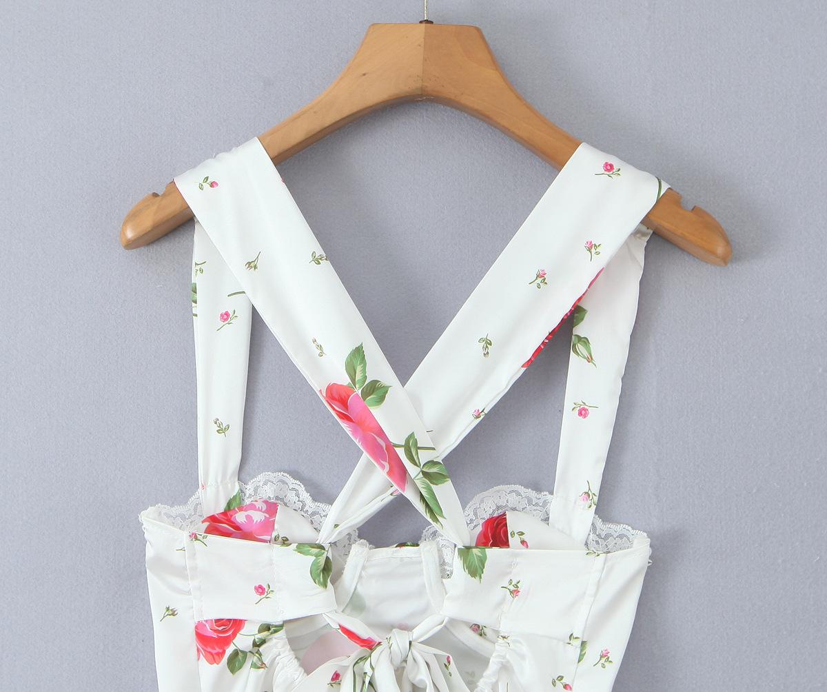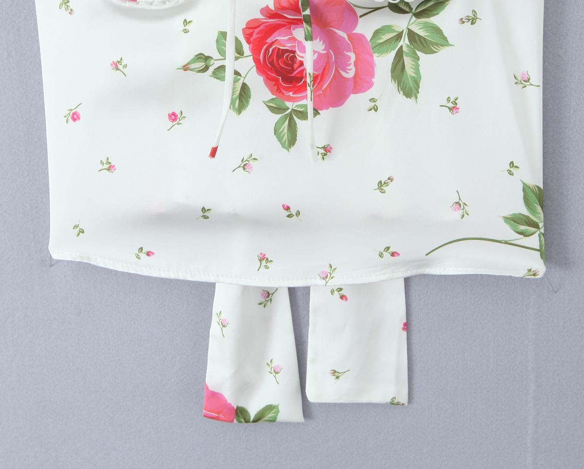 7524-25 Primavera Nuevo Estilo Europeo y Americano Satén Estampado de Rosas Encaje Costuras Cuello Top Camisola Pequeña