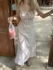 Gran Venta No Retornable Té Verde Limón Verano Diseño Francés Correa Cintura Bordado Vestido Elegante Falda Larga de Mujer