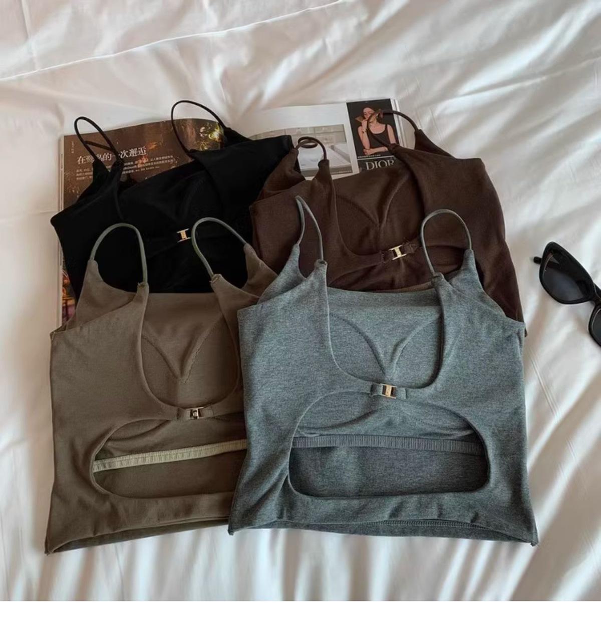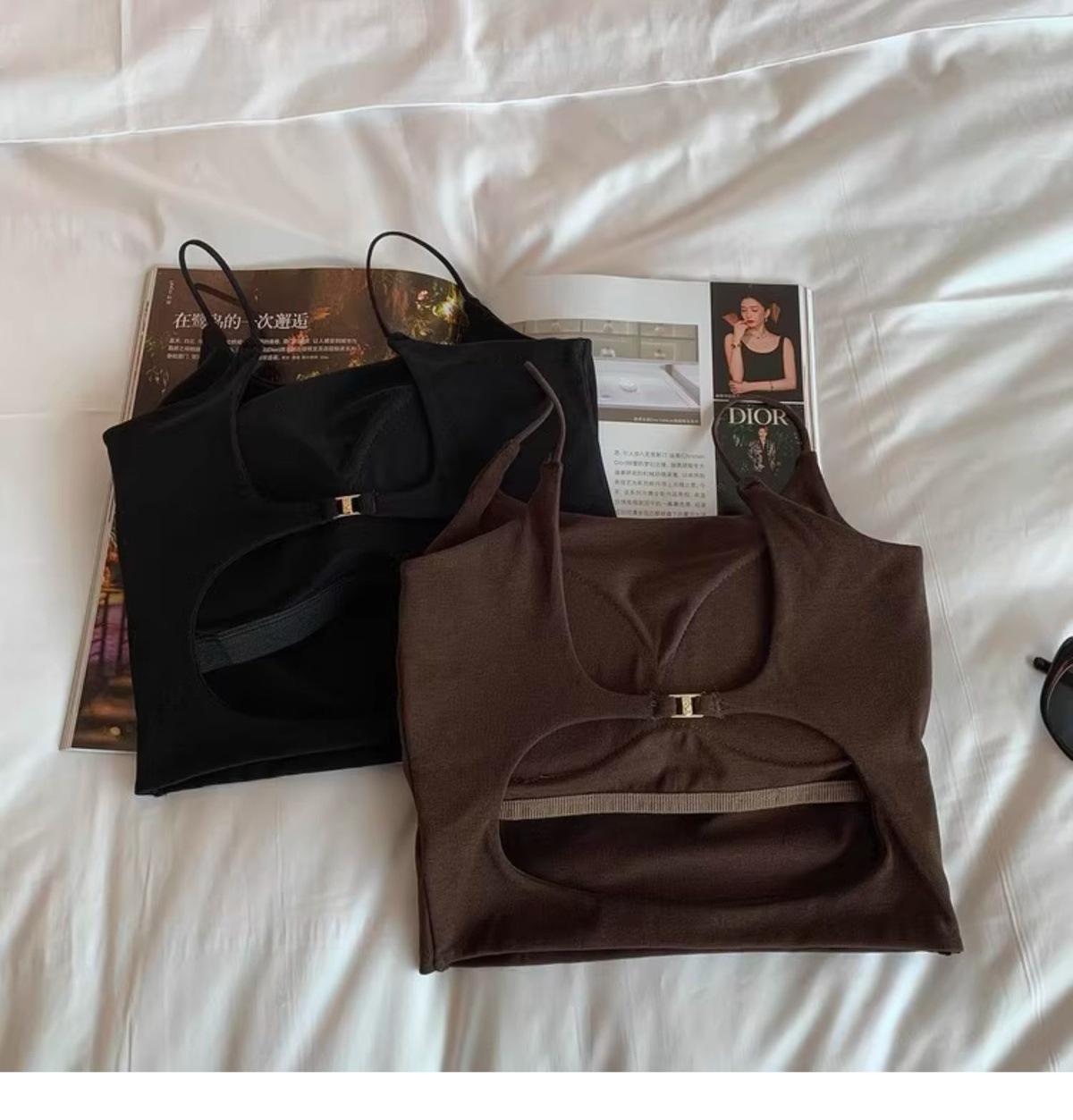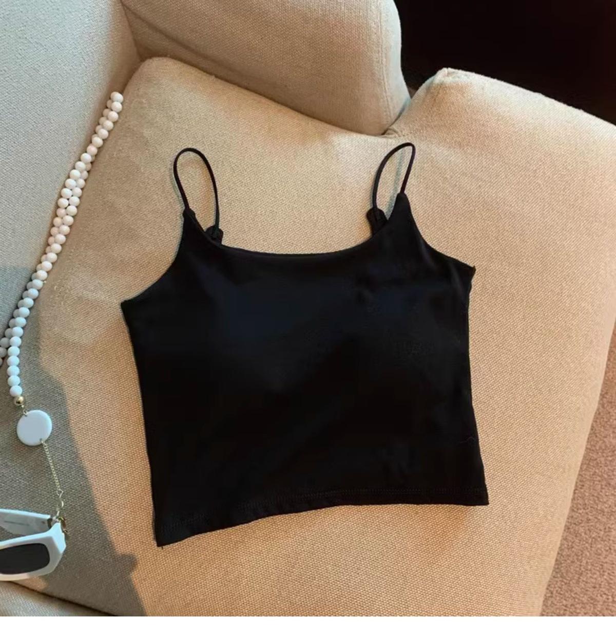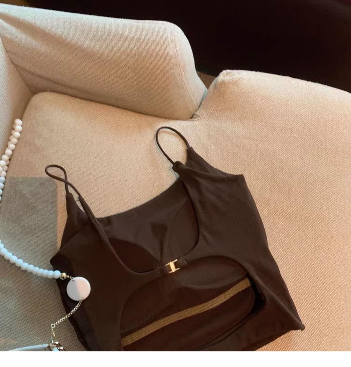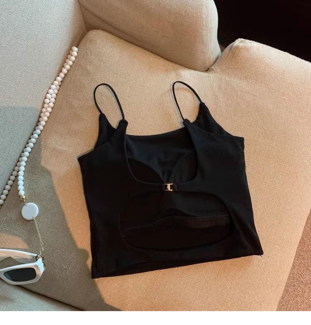 Hermoso Chaleco Camisola sin Espalda Puro Deseo para Mujer Verano Ropa Exterior con Brasier Almohadilla en el Pecho Una Pieza Único Exquisito Top Corto