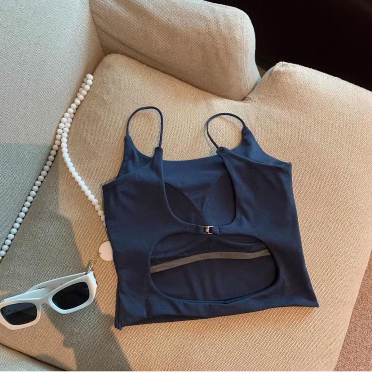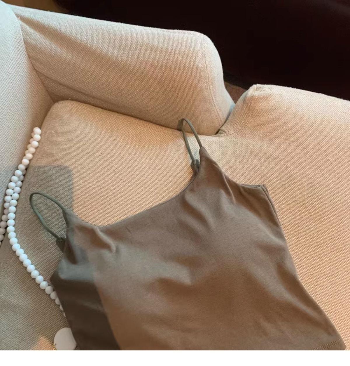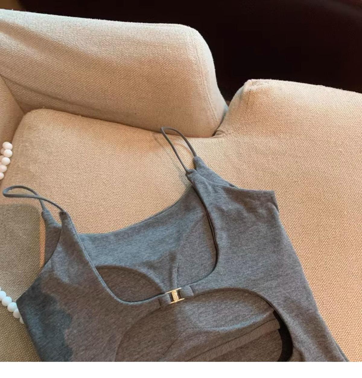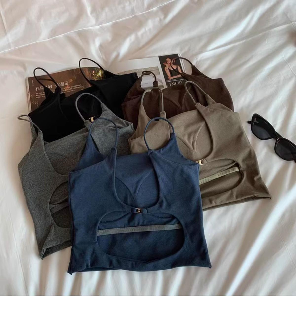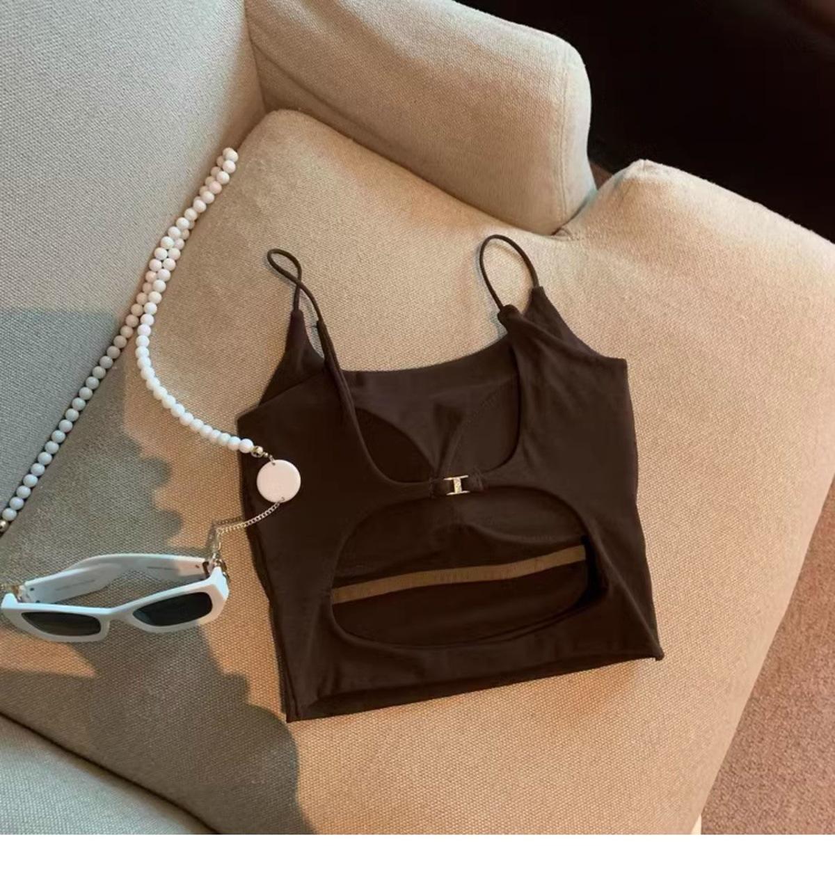 Hermoso Chaleco Camisola sin Espalda Puro Deseo para Mujer Verano Ropa Exterior con Brasier Almohadilla en el Pecho Una Pieza Único Exquisito Top Corto