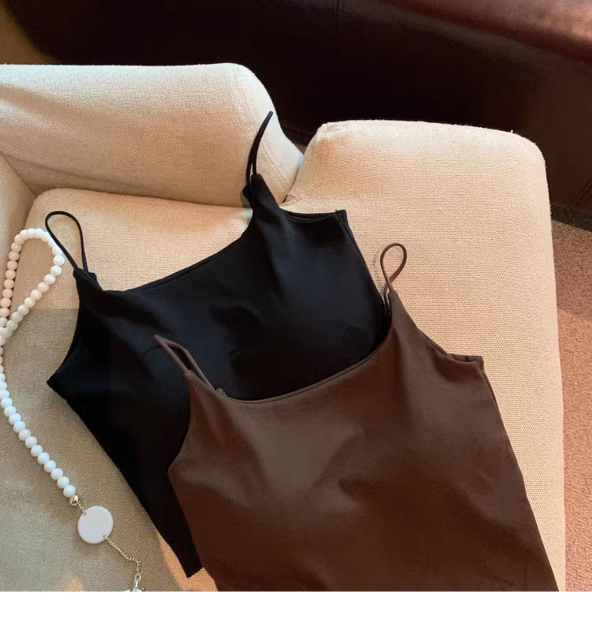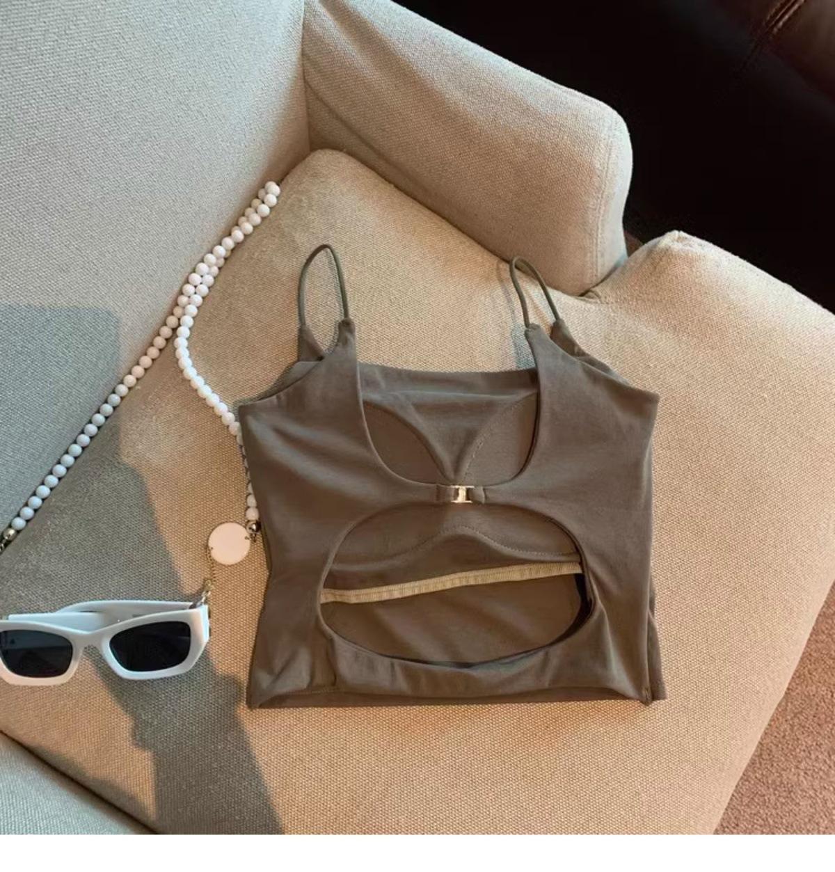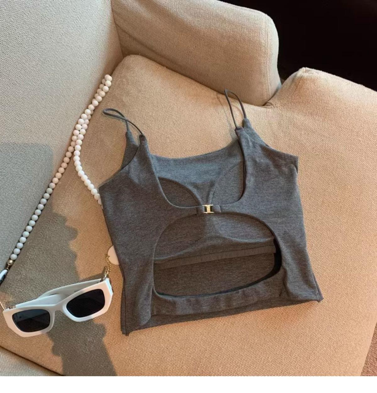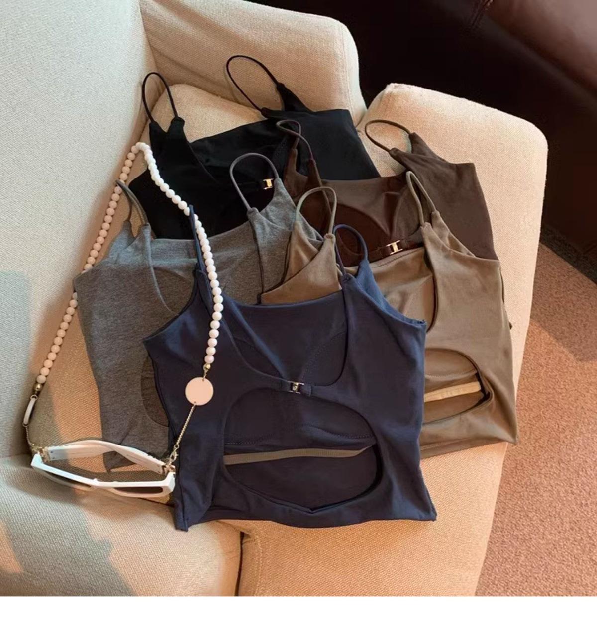 Hermoso Chaleco Camisola sin Espalda Puro Deseo para Mujer Verano Ropa Exterior con Brasier Almohadilla en el Pecho Una Pieza Único Exquisito Top Corto