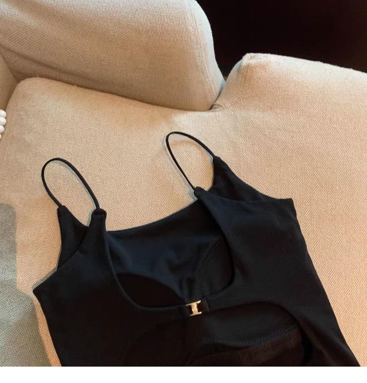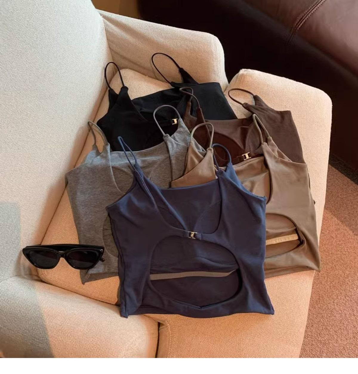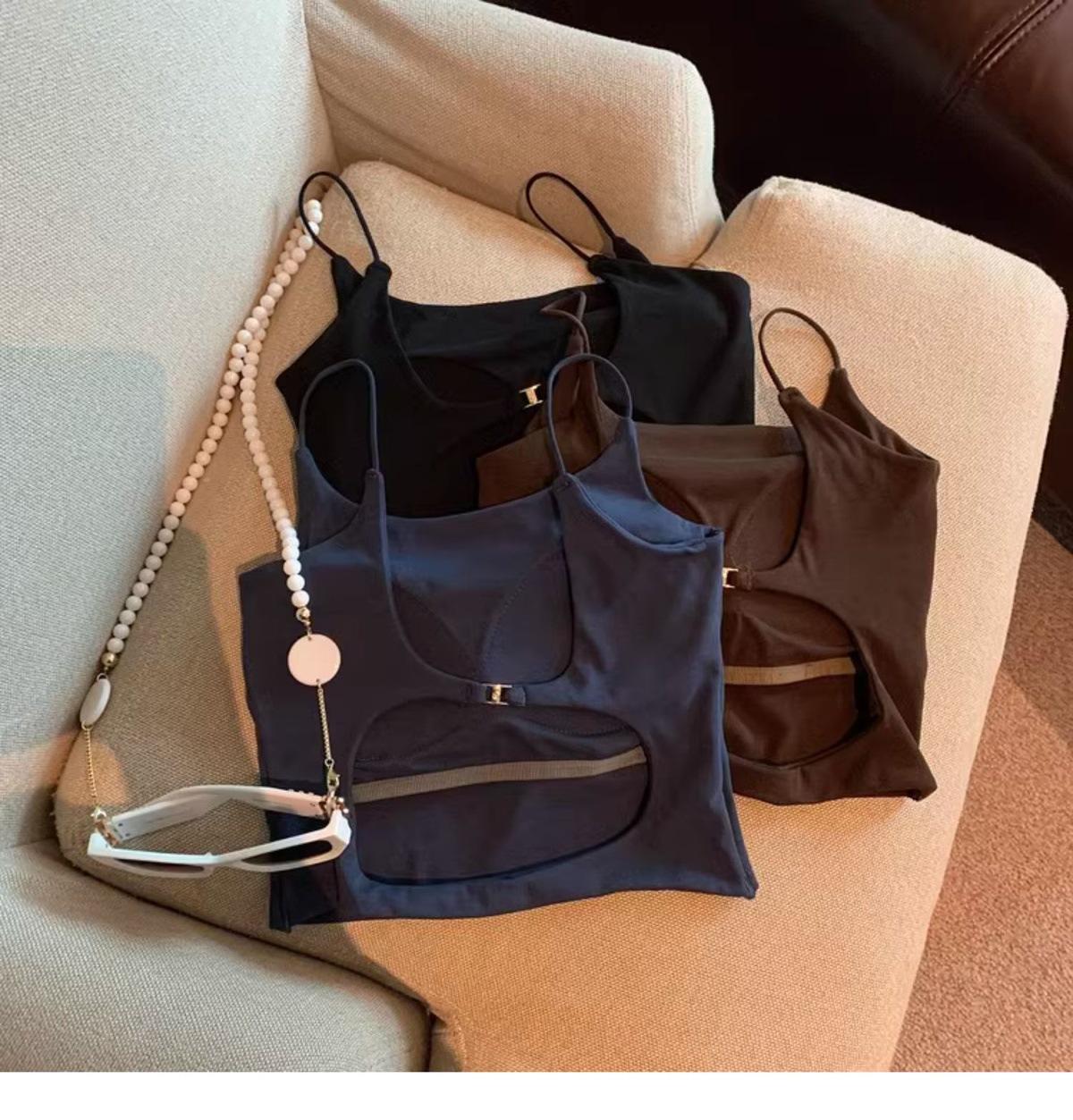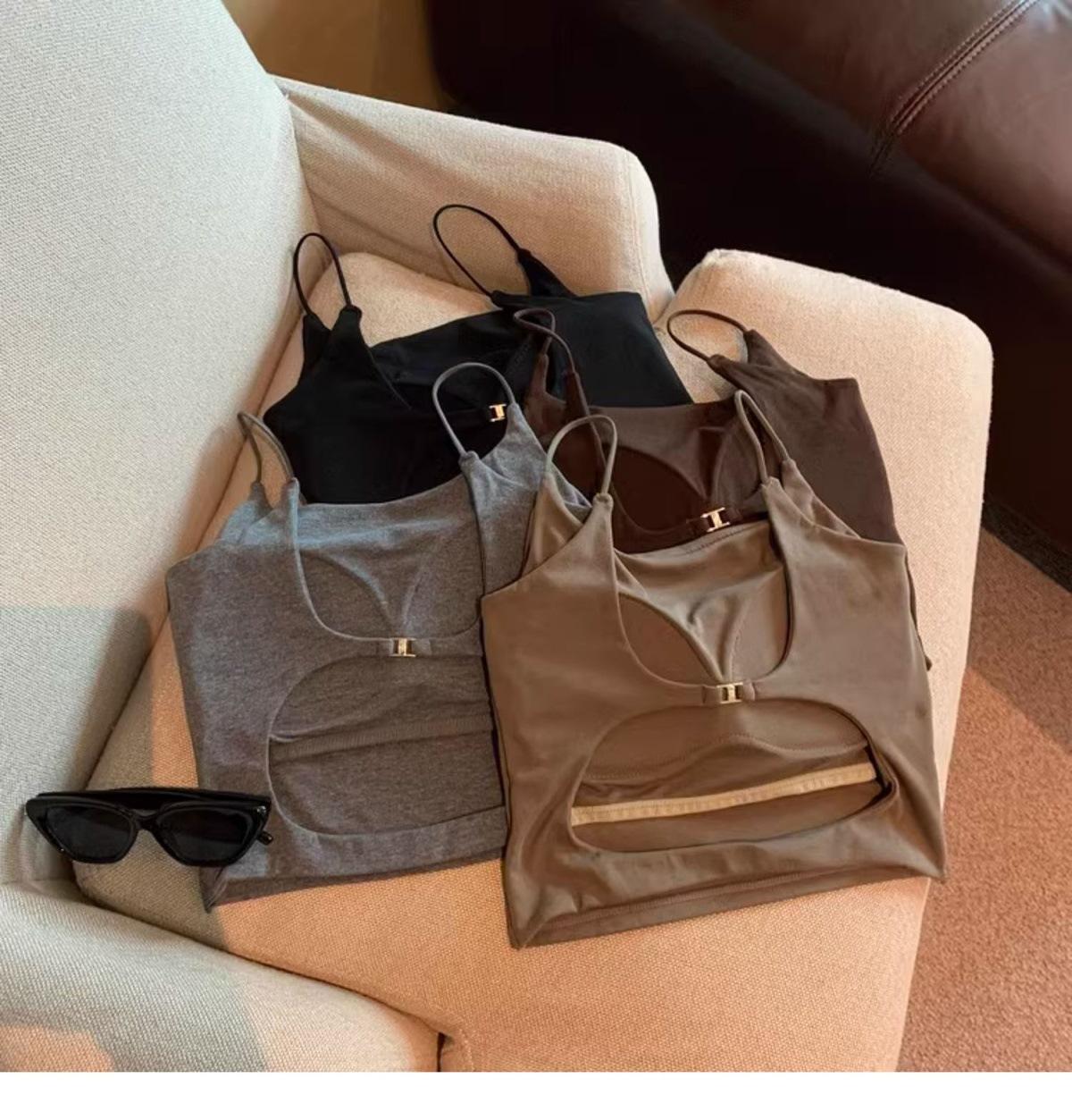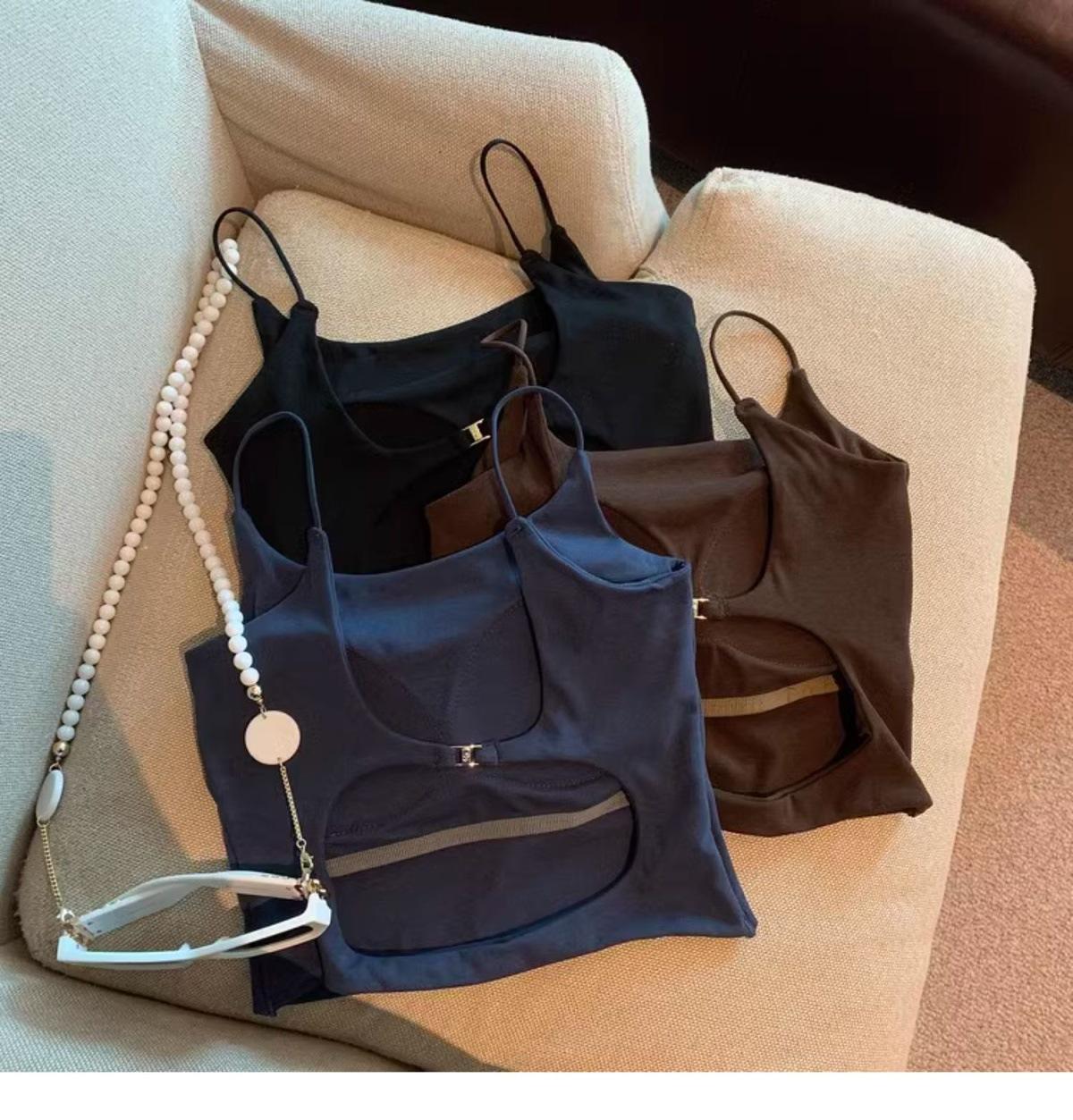 Hermoso Chaleco Camisola sin Espalda Puro Deseo para Mujer Verano Ropa Exterior con Brasier Almohadilla en el Pecho Una Pieza Único Exquisito Top Corto