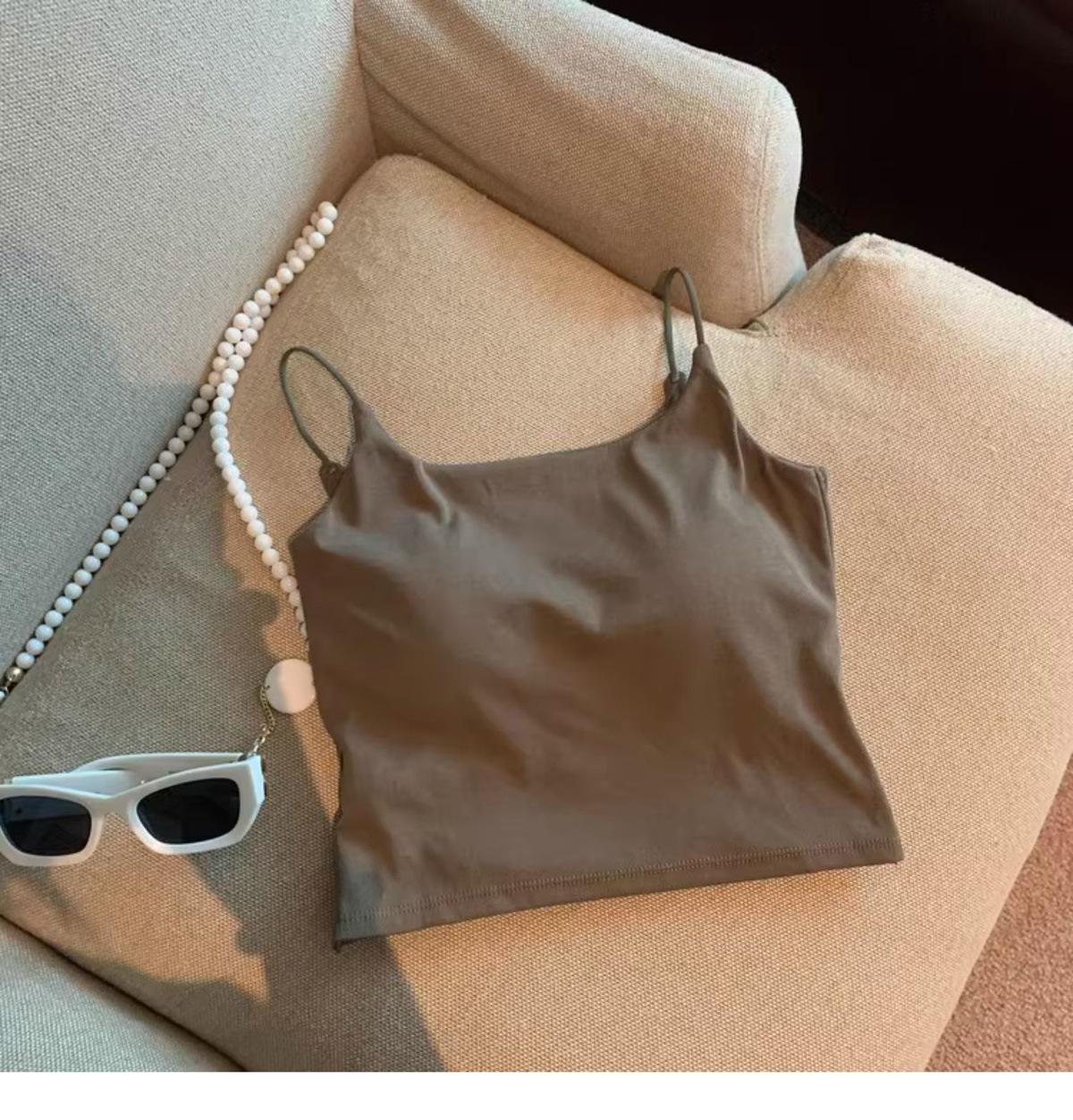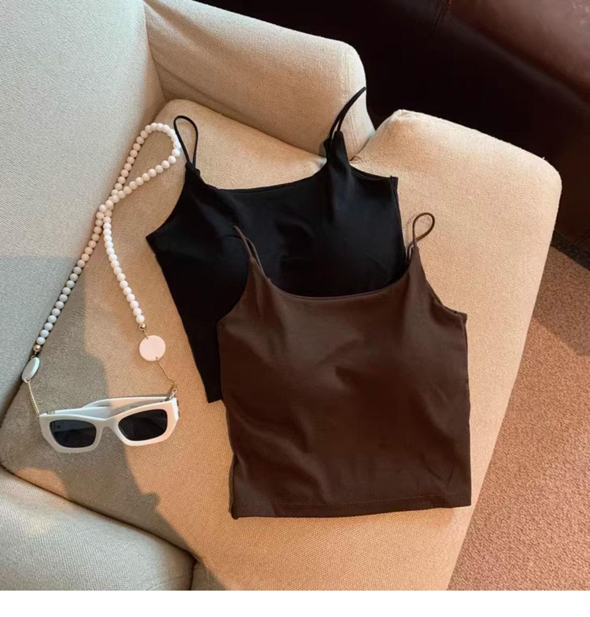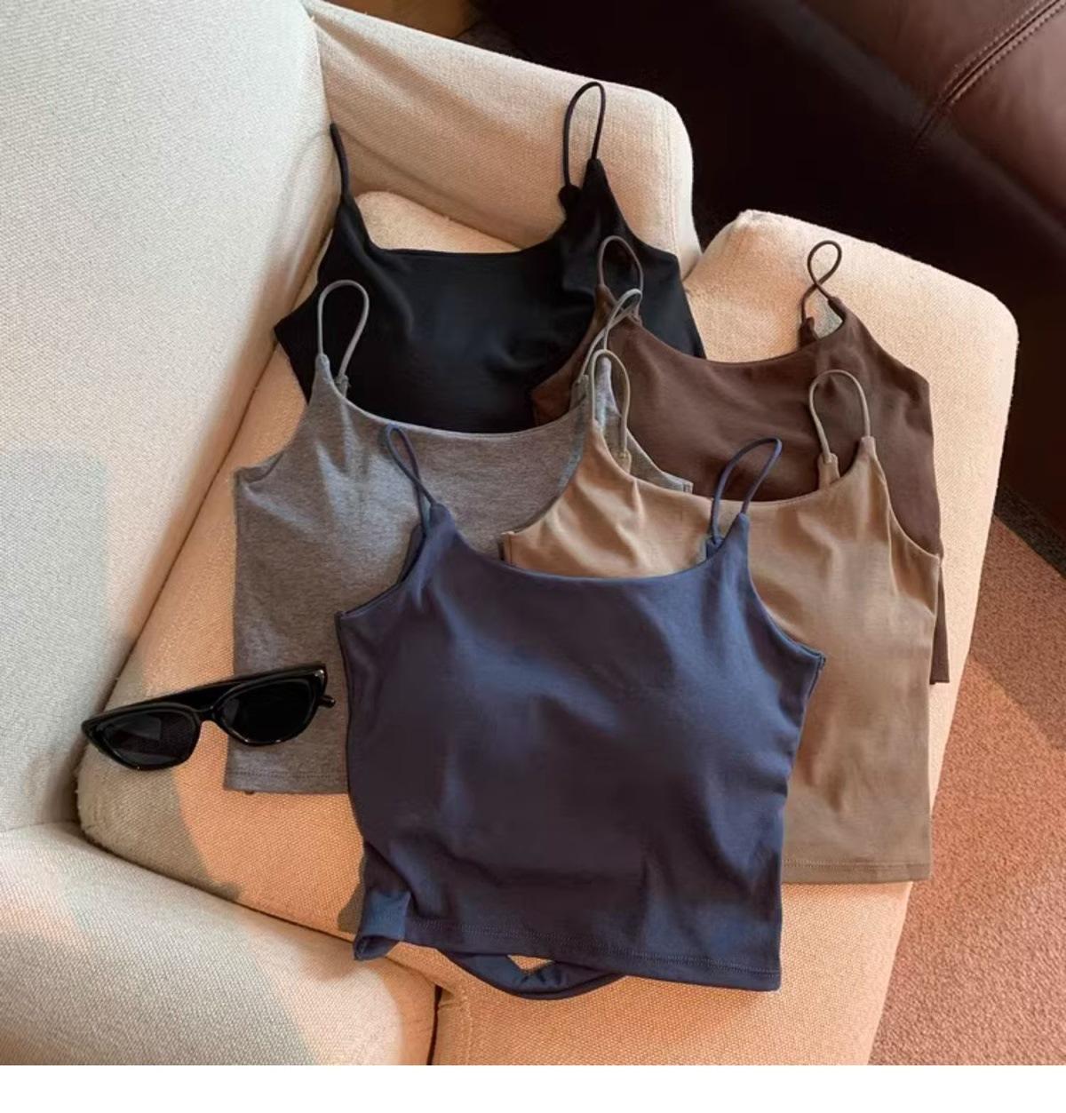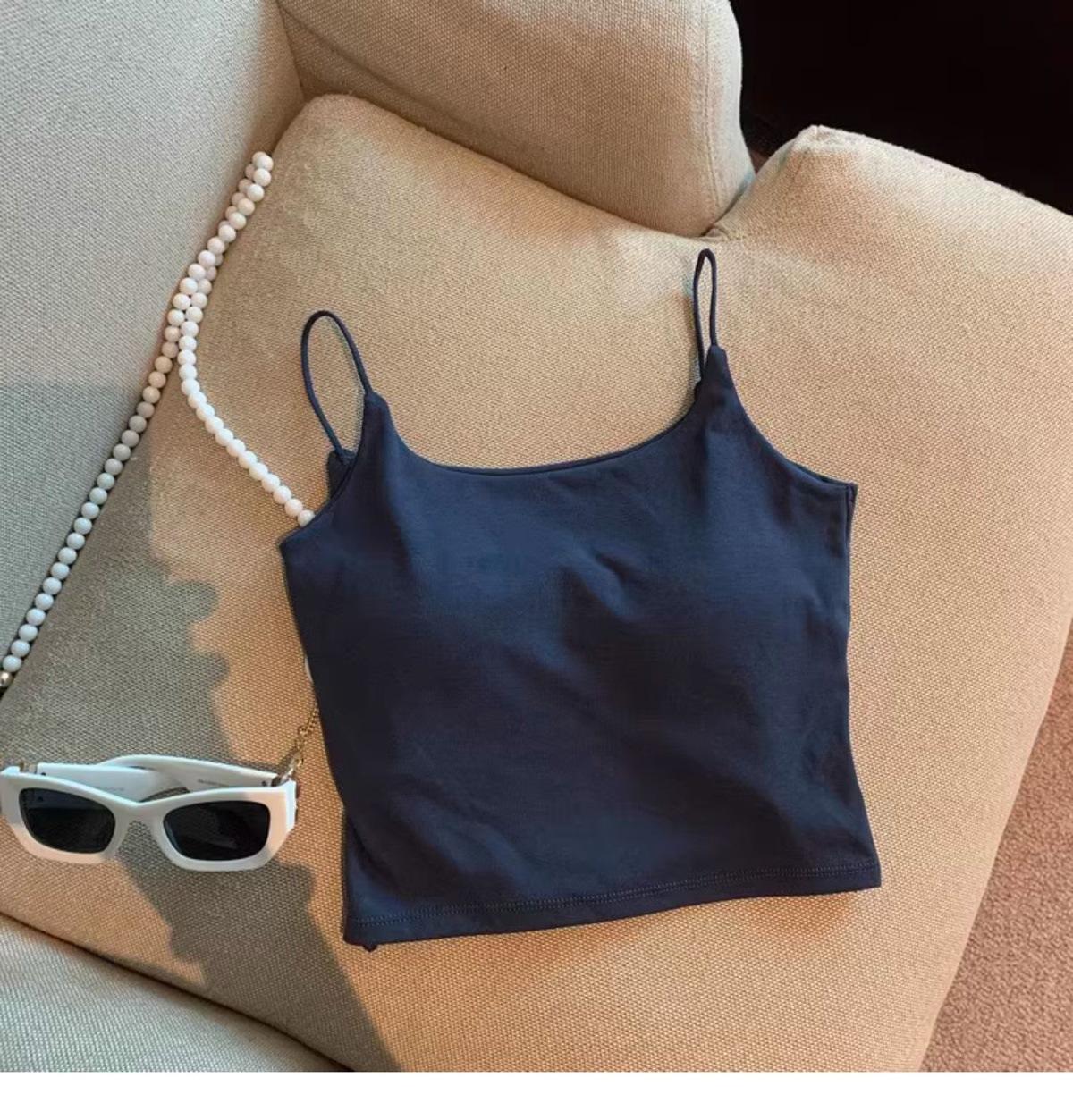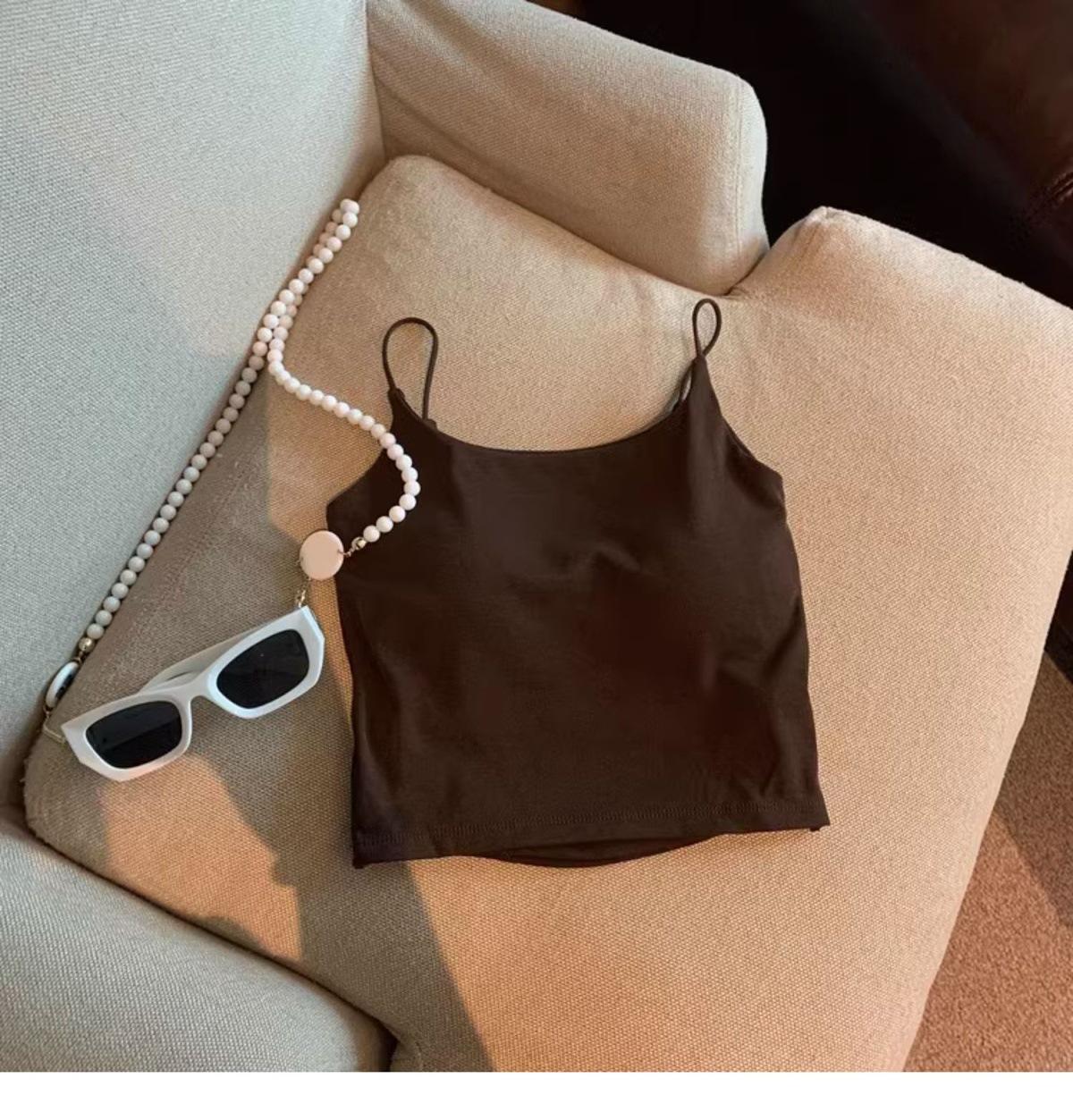 Hermoso Chaleco Camisola sin Espalda Puro Deseo para Mujer Verano Ropa Exterior con Brasier Almohadilla en el Pecho Una Pieza Único Exquisito Top Corto