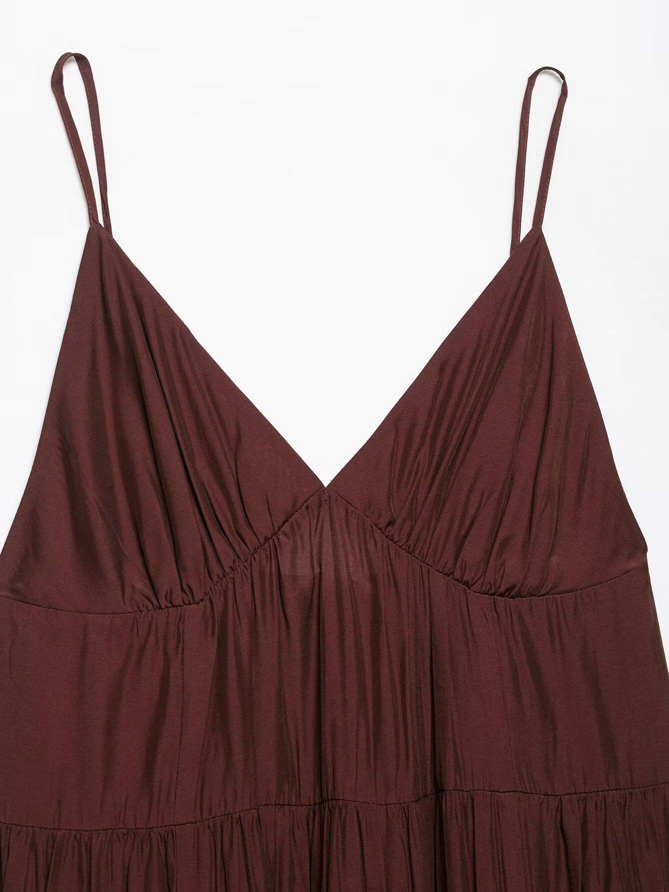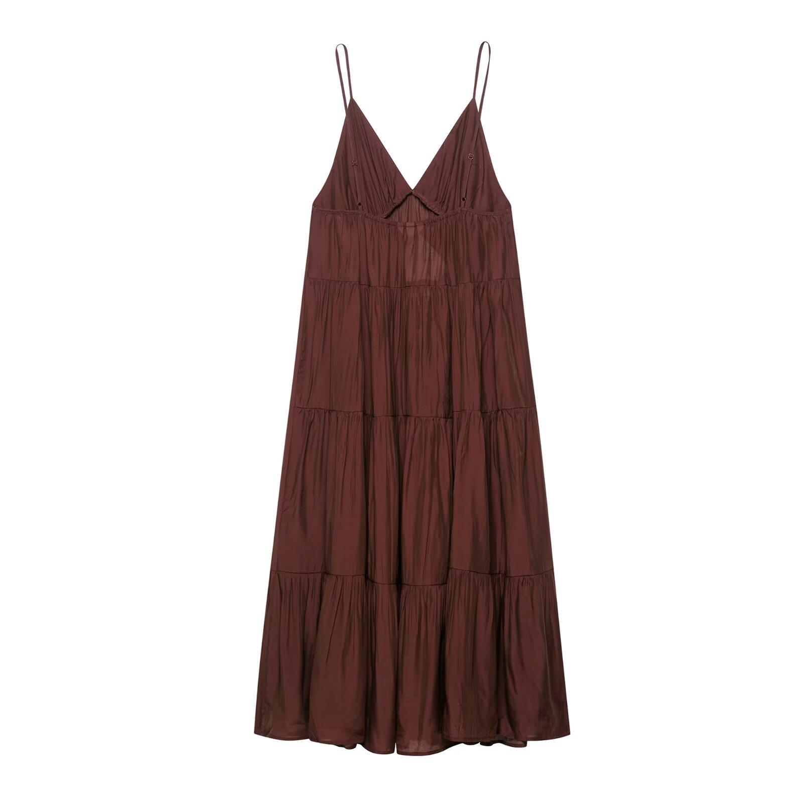 Ropa de Mujer Europea y Americana Transfronteriza 2025 Nuevo Estilo de Verano Diseño Moderno y Cómodo Sexy Vestido Largo de Tirantes con Capas