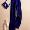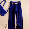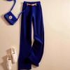Pantalones azul Klein con pequeño sentido del diseño nueva explosión 2024 pantalones de punto estrechos de pierna ancha de primavera para mujer muestran altura